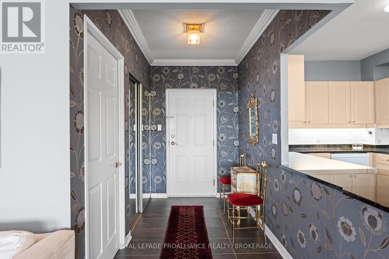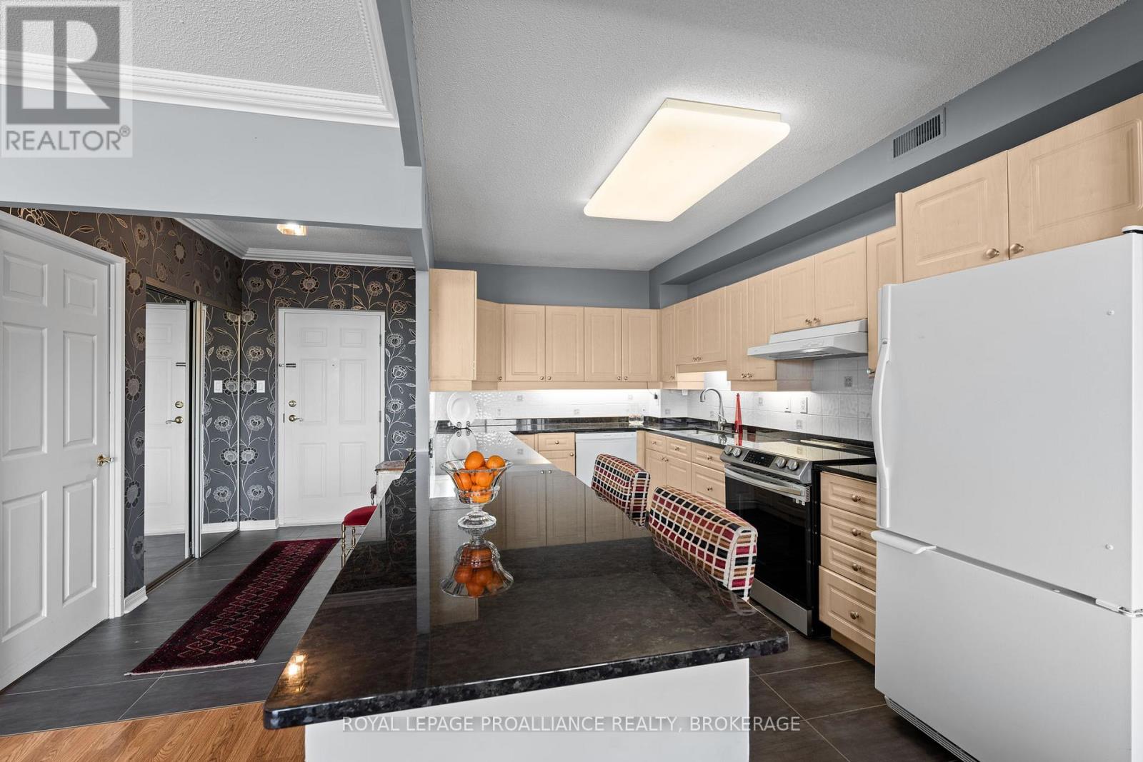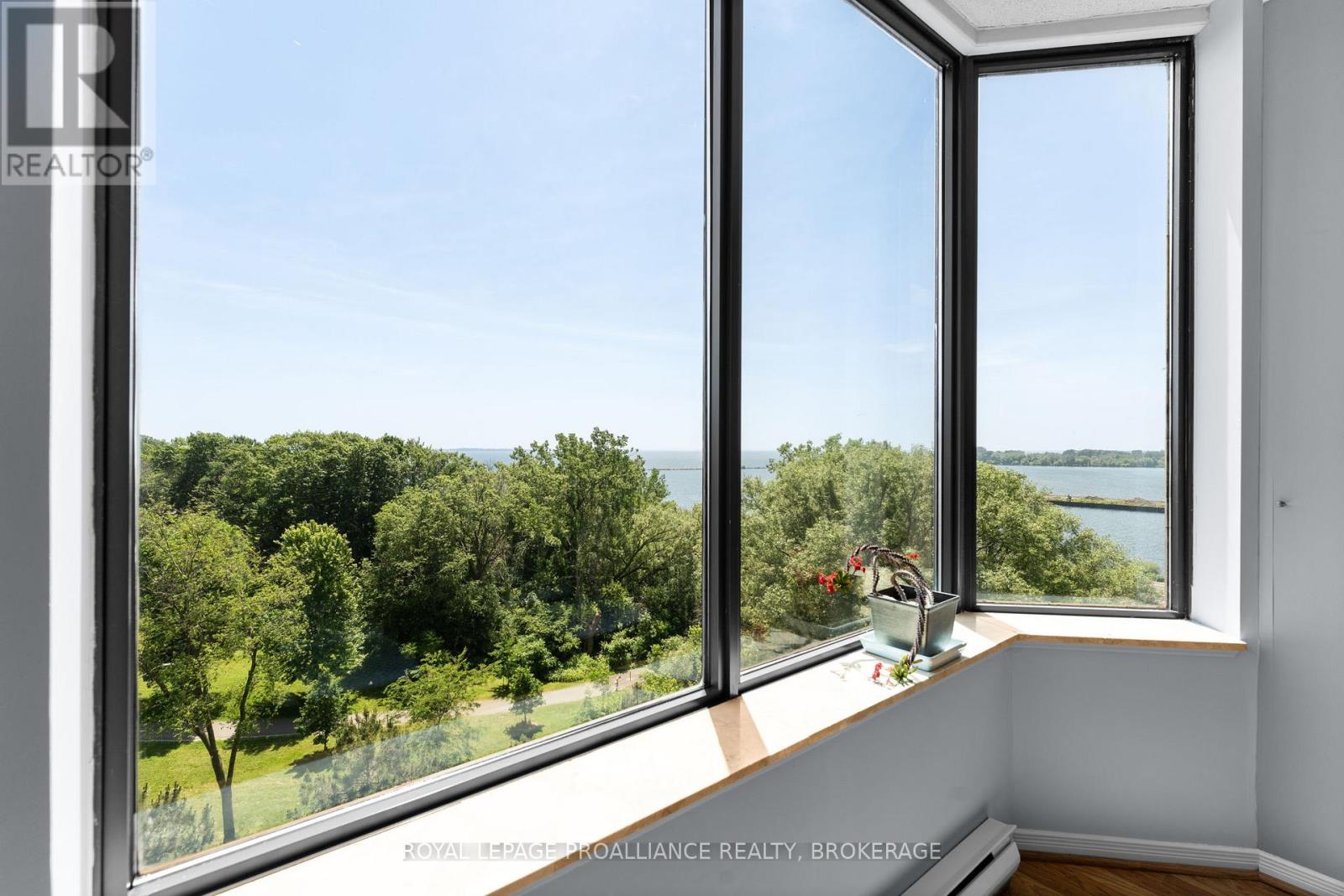 Welcome to this beautifully updated 7th floor condominium offering unobstructed views over Lake Ontario Park and the sparkling waters of Lake Ontario. Located in the heart of the city, this 2 bedroom and 2 bathroom suite features an open-concept living space filled with natural light and a balcony off the living room - perfect for enjoying morning coffee or evening sunsets by the lake. Inside, you'll find in-suite laundry and storage, and a thoughtfully designed layout that blends comfort and functionality. This unit also includes a prime underground parking space with additional storage. The well-managed building boasts impressive amenities including indoor pool, sauna, hot tub, fitness centre, tennis courts, workshop, party room, library, guest suite and a roof top terrace ideally situated across from the Cataraqui Golf and Country Club and steps from trails, parks, and transit, this waterfront condo delivers the best of city living with nature at your doorstep. (id:64974)