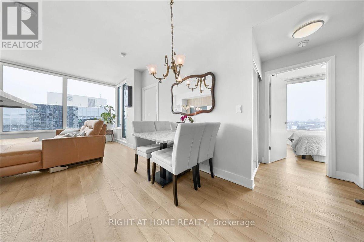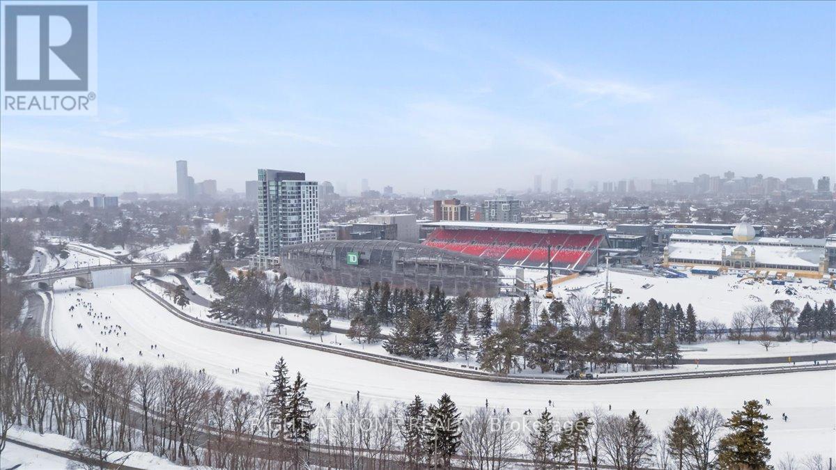 Lifestyle, location and elevated urban living - this one has it all. Welcome to 1035 Bank St #705, perfectly located in one of Ottawa's best neighbourhoods, the Glebe. Skate along the Rideau Canal, a UNESCO World Heritage site, drop into Lansdowne Farmer's Market for your weekly produce, or catch a Redblacks game - all within steps of your building. Completed in 2016, The Rideau at Lansdowne was designed by Barry Hobin & Associates and proudly holds LEED Gold certification, blending modern architecture with thoughtful design and sustainability. An expansive lobby with concierge service sets the tone - residents enjoy multiple party rooms, with stadium or canal views, a southwest-facing outdoor terrace, and a fully equipped fitness centre - amenities designed for an effortless urban lifestyle. Stepping inside, this bright corner unit is defined by floor-to-ceiling windows and clean, neutral finishes. The functional foyer flows into the kitchen/living space, equipped with stainless steel appliances, an island with prep space and breakfast bar, and stone countertops, all overlooking the versatile dining/flex space. Catch the game live, from your private balcony, or catch up on the highlights from your cozy living room. Both bedrooms also offer field views, the primary comfortably fitting a queen and two nightstands, and the secondary offering flex space for work-from-home or guest space. Additional features include no carpets throughout, on-demand hot water, in-unit laundry and one owned underground parking space. Monthly condo fees of $668 include building amenities and insurance, parking and water. Live in the heart of it all - and get in touch with me today to secure your front row seats! (id:64974)