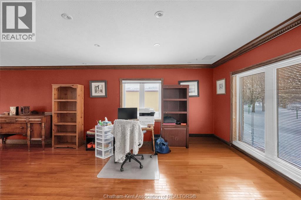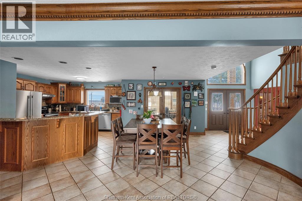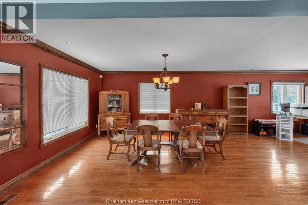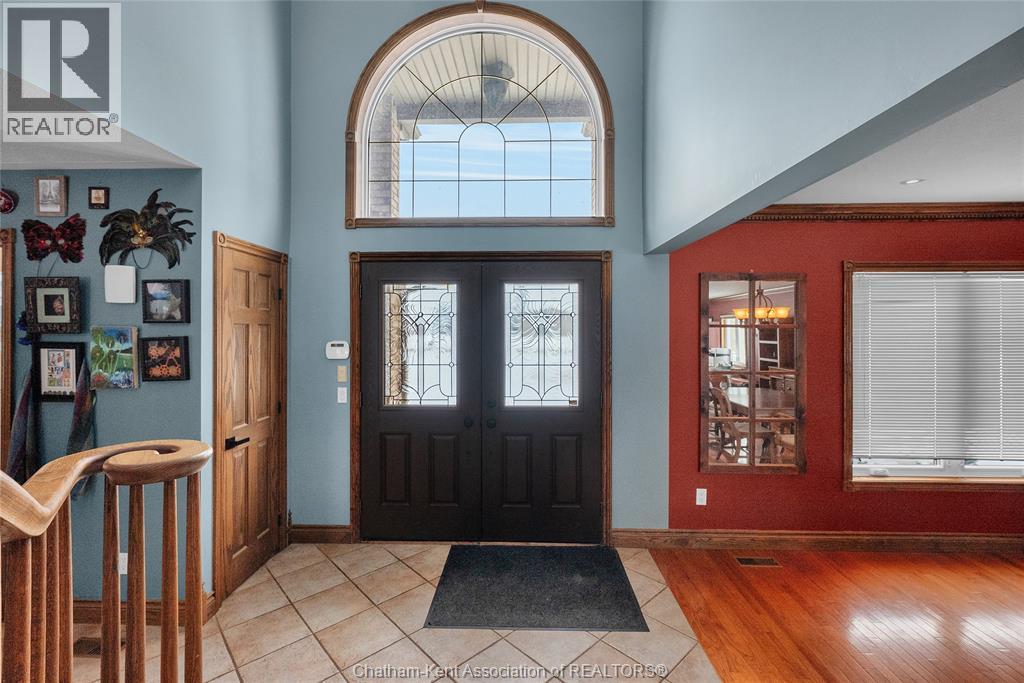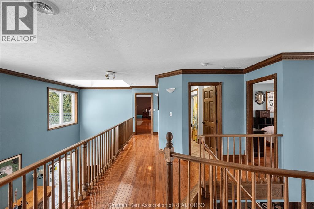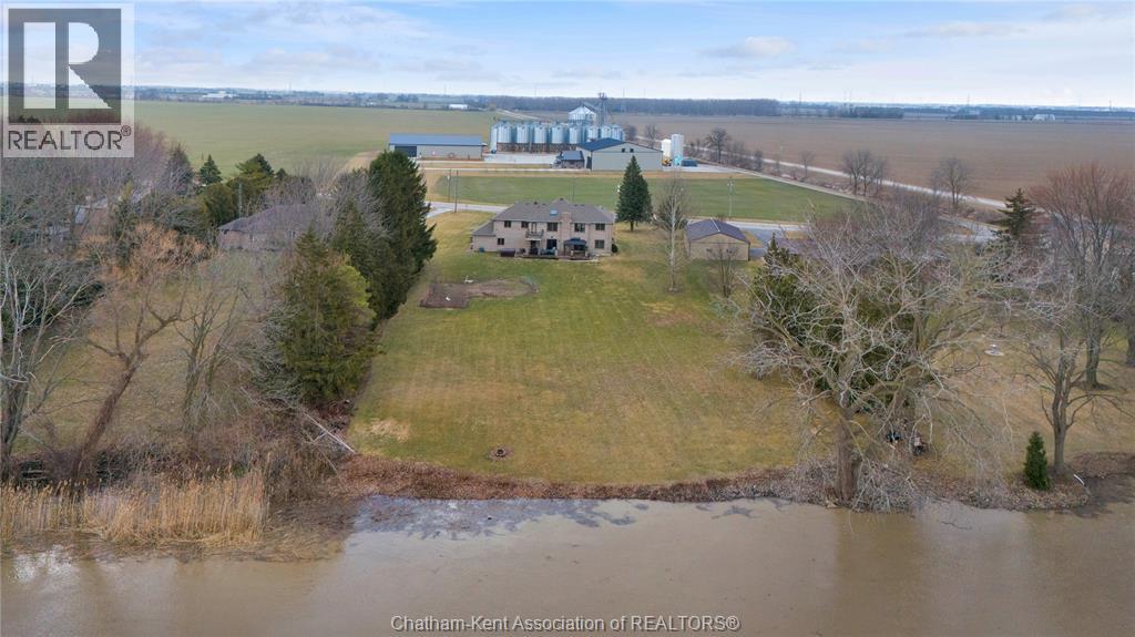 Create your family legacy on the river. Don't miss out on this 3500 sq ft all-brick home, sitting on a 1.45 acre lot with full view of the river. Riverfront properties are not created equally, but this property checks the boxes - it is square to the river, unobstructed views and is clean and simple with gentle sloping grass to the bank. Located just outside of Chatham with picturesque rural and waterfront views this executive property offers tremendous value. The massive floorplan has an open central staircase with second level mezzanine that sits above the two storey living room. Every room is oversized with endless opportunity to reconfigure living and dining areas. Solid oak trim and doors throughout the home lend themselves to current wood focused design themes. Main level laundry with mudroom to back deck. Full three bay garage with entrance to basement and kitchen/laundry hallway. The second floor has three large bedrooms sharing a 4 pc bath and a 625 sq ft primary bedroom. The primary has a walkout balcony overlooking the river, walk-in closet, 5 pc ensuite bathroom and jacuzzi tub. Absolutely no compromise or expense spared on square footage in this home. One would be shocked by the quote to have just the shell of this home built today! Partially finished full basement is ready for floors and ceiling finishing which would add another 1500 sq ft of living space to the home. Recent updates include: Windows 2020, Roof 2023, Garage Doors 2022, Water Heater 2024 (id:64974)