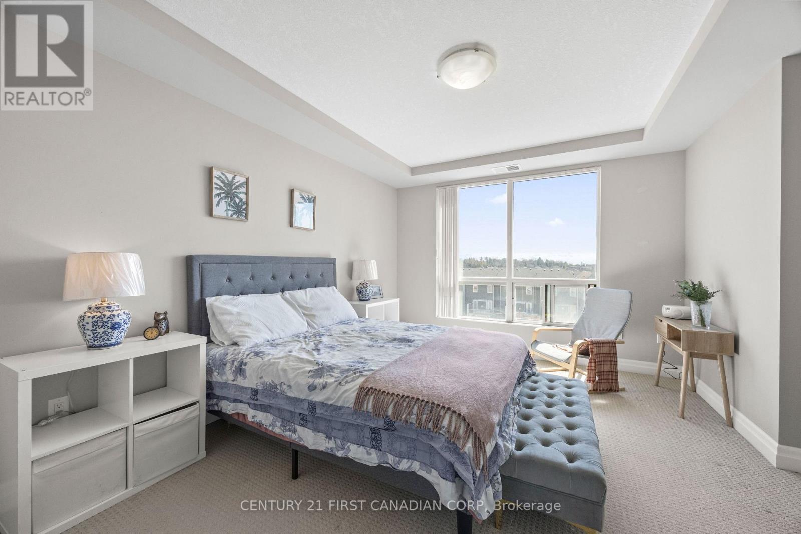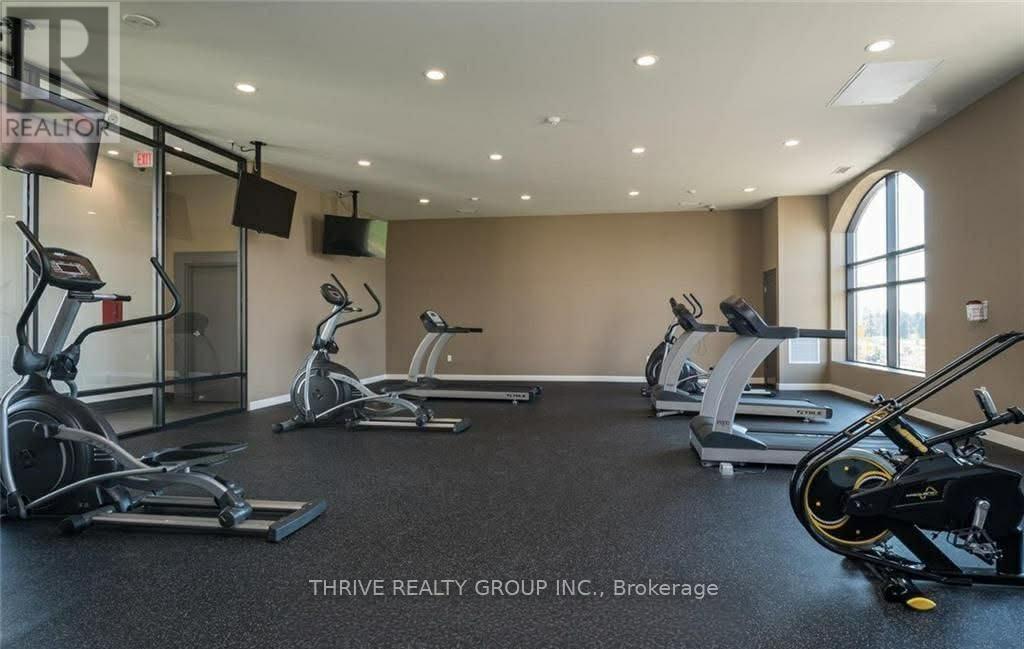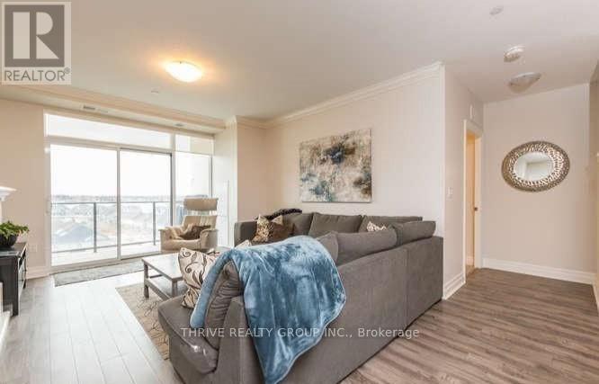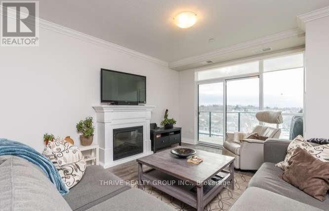 Welcome Home! Experience upscale living in this contemporary 2-bedroom + den, 2-bathroom condo located in one of North London's most sought-after buildings. This beautifully appointed unit features modern laminate and tile flooring, granite countertops, and stainless steel appliances, all complemented by an open-concept layout designed for both comfort and style. The spacious living room showcases an elegant electric fireplace, flowing seamlessly into the dining area and a stunning kitchen, perfect for entertaining. Step out onto your private south-facing balcony and enjoy plenty of natural light and scenic views. The primary bedroom offers a walk-in closet and a private ensuite, while the versatile den is ideal for a home office or additional living space. Additional highlights include in-suite laundry with stacked washer and dryer and one underground parking space (105). Residents enjoy exceptional building amenities, including: controlled entry, indoor pool, golf simulator, fitness centre, games and movie rooms, guest suite, and party kitchen. Ideally located just minutes from Sunningdale Golf & Country Club, scenic walking trails, Western University, and Masonville Place, this condo offers the perfect blend of luxury and convenience. (id:64974)