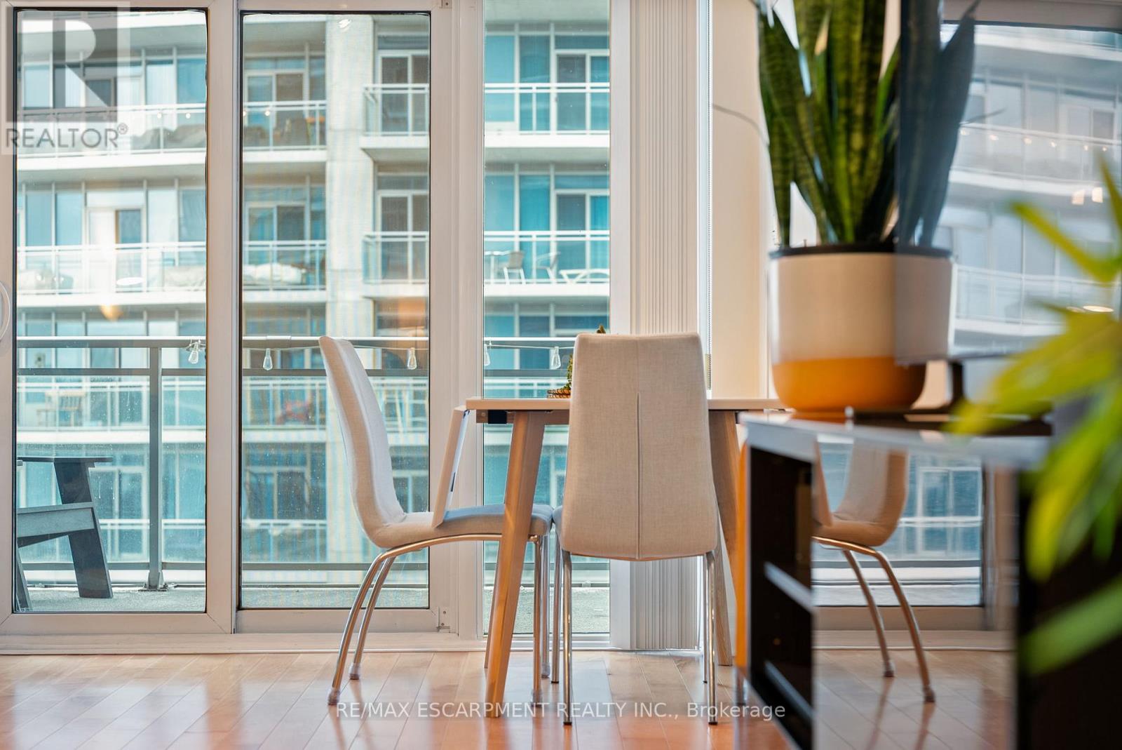 Experience elevated waterfront living in this sun-drenched one-bedroom, one-bathroom corner residence, where thoughtful design, privacy, and lifestyle come together seamlessly. Bathed in natural light from morning through golden hour, this condo features two private balconies with three separate walkouts from the kitchen, living room, and primary bedroom-creating a rare indoor-outdoor flow and offering multiple spaces to relax, entertain, or unwind while enjoying tranquil lake, courtyard, and fountain views. The layout is both functional and sophisticated, enhanced by high ceilings and a clear separation between all rooms. The spacious kitchen opens effortlessly to one of the balconies, while the oversized bathroom offers a spa-like retreat rarely found in one-bedroom suites. As a quiet corner unit with its own private section of the floor, this home provides exceptional peace and privacy with minimal neighbouring noise. Residents enjoy premium building amenities including 24-hour concierge, 2 Spacious Guest Suites, a large visitor parking lot, indoor pool & hot tub, saunas, gym, library, party room, business centre, movie theatre, sports lounge, and a car wash bay. . Whether you're a first-time buyer seeking a turnkey home, a downsizer looking for comfort without compromise, or an investor searching for a highly desirable, rentable location-this suite delivers on every level. Perfectly positioned across from Lake Ontario and the Martin Goodman Trail, the lifestyle offering is unmatched. Step outside to miles of waterfront paths, lush green spaces ideal for summer picnics, and an energetic neighbourhood filled with ground-level cafés, patios, and dining-many just steps from your door. Enjoy local favourites such as Blondies Pizza, Oakberry, Café Boho, Eden Trattoria, and La Vecchia. With two grocery stores within a 10-minute walk, effortless transit options to downtown, and quick access to the Gardiner, this is lakeside living with urban convenience at its finest. (id:64974)