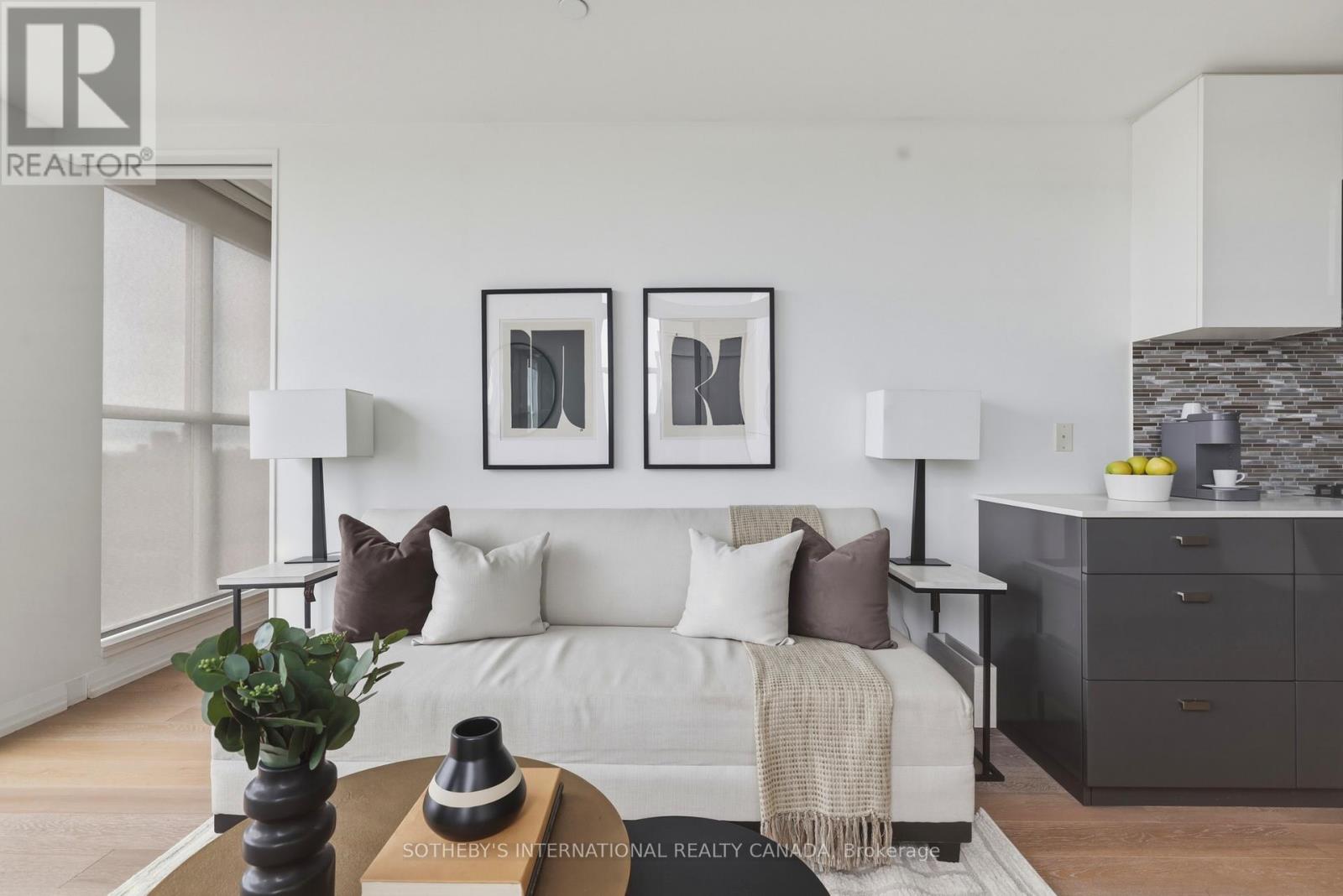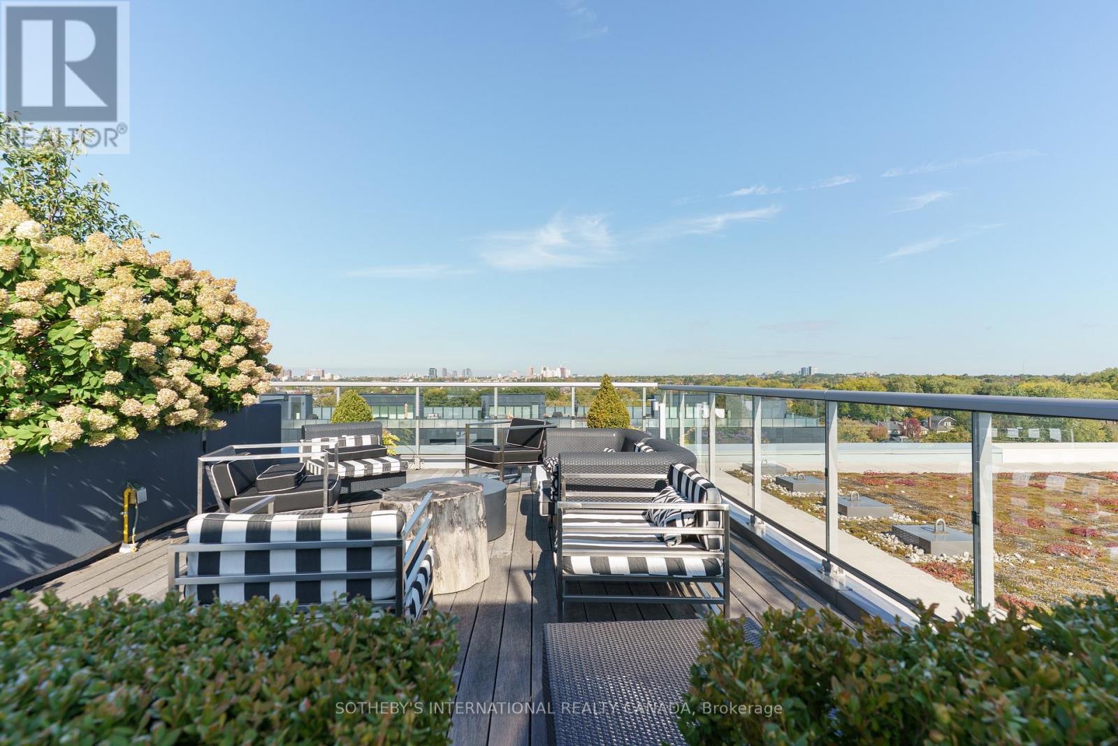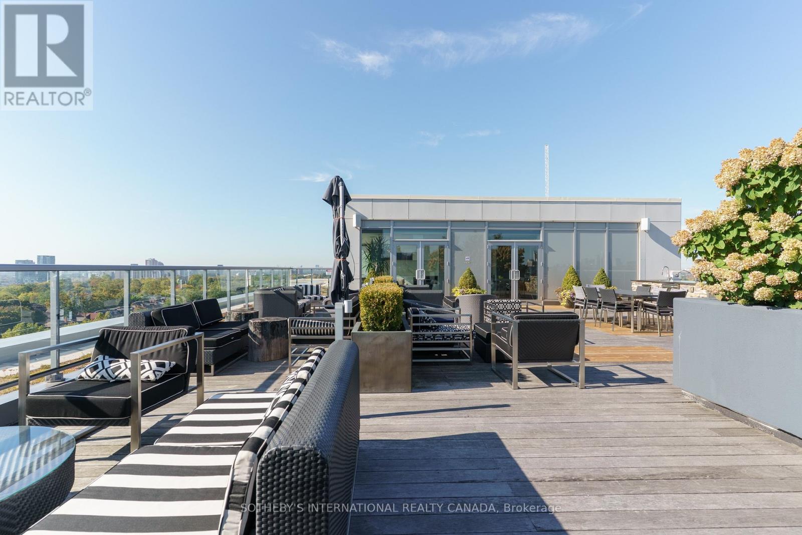 Welcome to NEST Condos, a sought-after boutique building in the heart of Wychwood, just steps to the best of St. Clair West. This immaculate 2 bedroom, 2 bathroom suite offers a thoughtfully designed, highly functional layout tailored for comfortable everyday living. Filled with natural light from its south-facing exposure, enjoy clear views of the CN Tower and city skyline from the living area and private 96 sq. ft. balcony.The sleek kitchen features built-in European appliances, quartz counters, an upgraded backsplash, and a gas cooktop. Generous built-in storage is found throughout. The balcony includes a gas BBQ hookup, ideal for outdoor dining. The primary bedroom offers a 3 piece ensuite and spectacular city-skyline views. The original den has been professionally enclosed to create a true second bedroom, while still offering flexibility as a private office if desired. A second full bathroom adds everyday convenience. Parking is located near the elevator, with a dedicated locker for extra storage. Residents enjoy excellent amenities, including a well-equipped gym, dog wash station, indoor/outdoor rooftop lounge with breathtaking skyline views stretching to Lake Ontario, and a main floor party room. With an outstanding Walk Score of 98, everything you need is just steps away-shops, cafés, restaurants, and the Wychwood Barns farmers' market, with Corso Italia nearby. Easy transit access-just 12 minutes to St. Clair West Station and 22 minutes to Yonge-St. Clair. Offering incredible value, this is a rare opportunity to own in a well-loved boutique building in one of Toronto's most vibrant communities. Maintenance fees include heating and high-speed internet (id:64974)