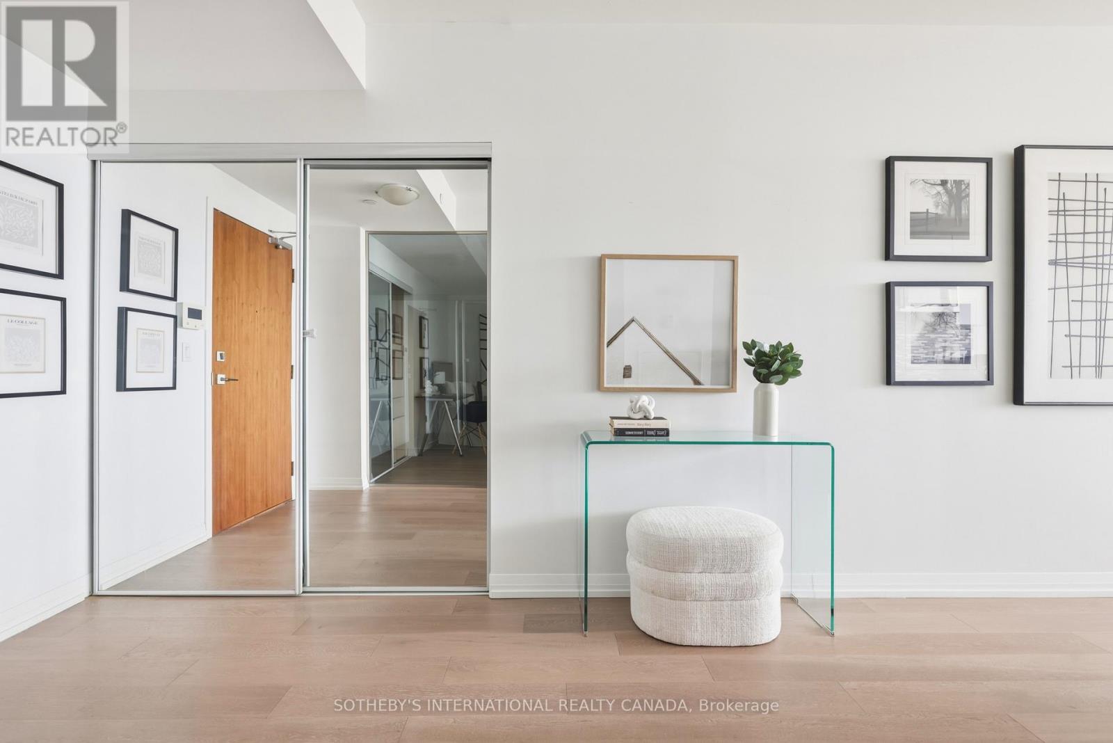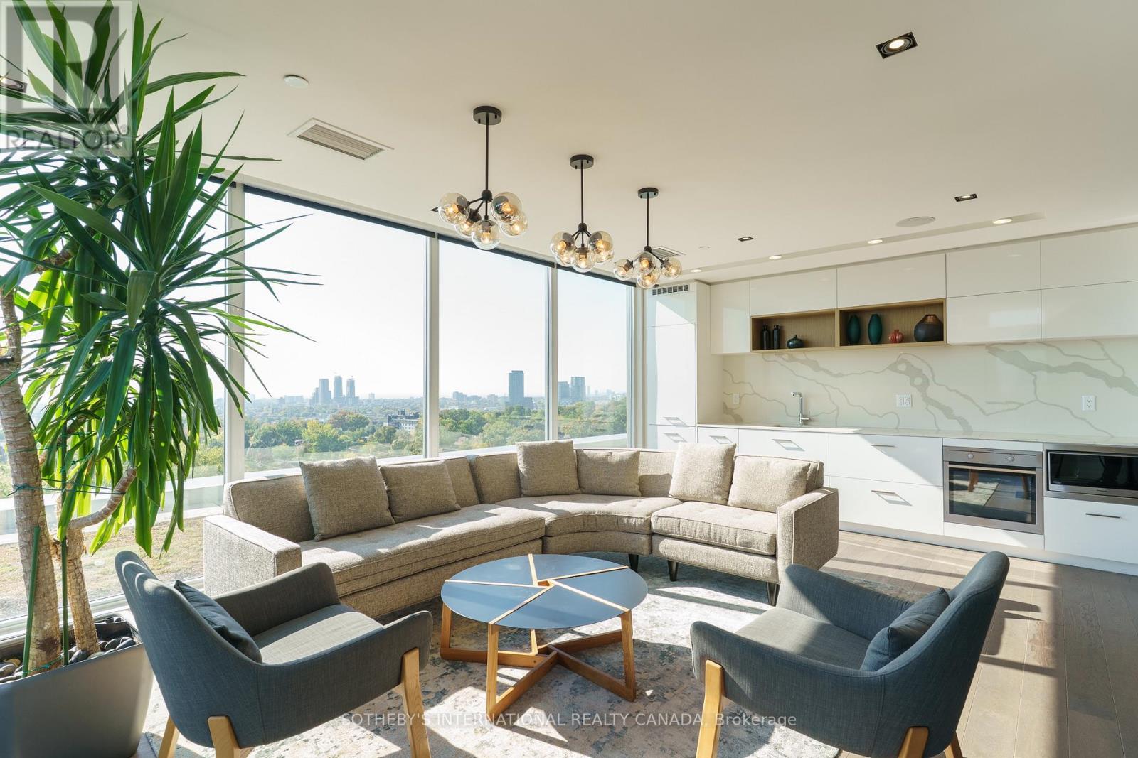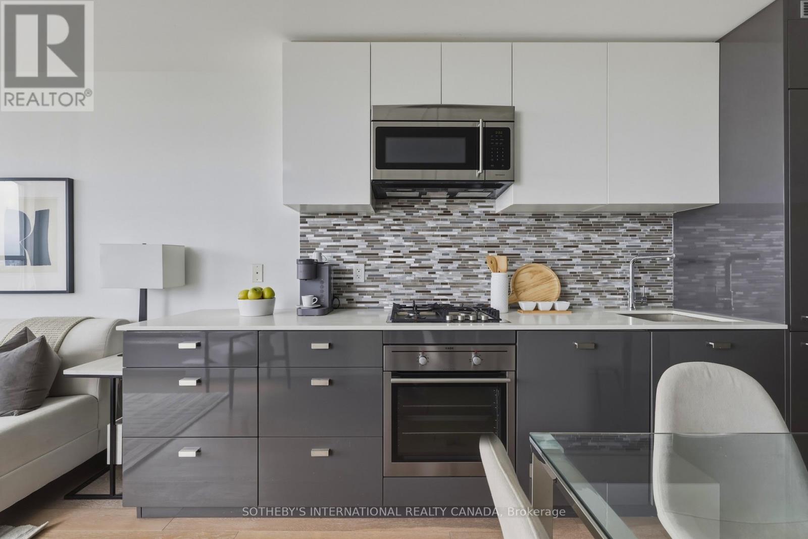 Welcome to NEST Condos, a sought-after boutique building in the heart of Wychwood, just steps to the best of St. Clair West. This immaculate 2 bedroom, 2 bathroom suite offers a thoughtfully designed, highly functional layout tailored for comfortable everyday living. Filled with natural light from its south-facing exposure, enjoy clear views of the CN Tower and city skyline from the living area and private 96 sq. ft. balcony.The sleek kitchen features built-in European appliances, quartz counters, an upgraded backsplash, and a gas cooktop. Generous built-in storage is found throughout. The balcony includes a gas BBQ hookup, ideal for outdoor dining. The primary bedroom offers a 3 piece ensuite and spectacular city-skyline views. The original den has been professionally enclosed to create a true second bedroom, while still offering flexibility as a private office if desired. A second full bathroom adds everyday convenience. Parking is located near the elevator, with a dedicated locker for extra storage. Residents enjoy excellent amenities, including a well-equipped gym, dog wash station, indoor/outdoor rooftop lounge with breathtaking skyline views stretching to Lake Ontario, and a main floor party room. With an outstanding Walk Score of 98, everything you need is just steps away-shops, cafés, restaurants, and the Wychwood Barns farmers' market, with Corso Italia nearby. Easy transit access-just 12 minutes to St. Clair West Station and 22 minutes to Yonge-St. Clair. Offering incredible value, this is a rare opportunity to own in a well-loved boutique building in one of Toronto's most vibrant communities. Maintenance fees include heating and high-speed internet (id:64974)