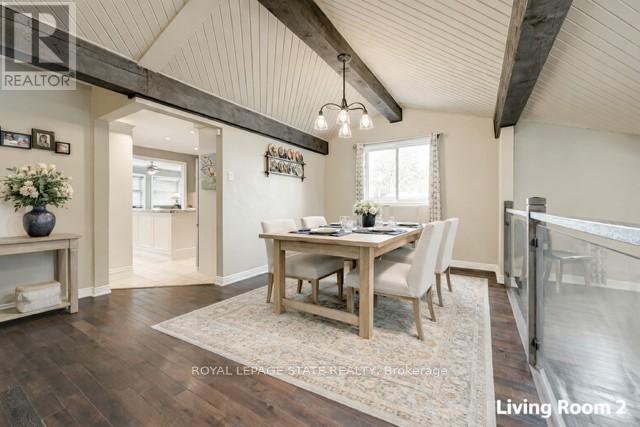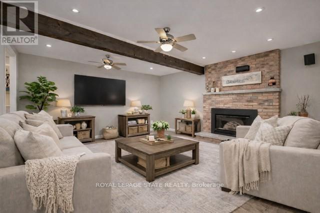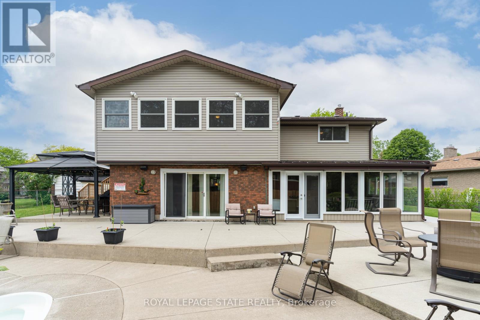 UNIQUE MULTI-LEVEL HOME ON A PIE-SHAPED LOT WITH HEATED INGROUND POOL - Welcome to this one-of-a-kind 4-bedroom, 2-bathroom multi-level home offering over 2,600 sq. ft. of above-grade living space and an exceptionally versatile layout. With the potential to create two separate units or an in-law suite, this property offers outstanding flexibility for multi-generational living or investment opportunities. From the moment you arrive, you'll be impressed by the strong curb appeal and concrete driveway with parking for up to six vehicles. Step inside to the main floor living room featuring a vaulted ceiling with exposed wood beams, setting the tone for the home's distinctive design. Glass railings highlight the open-concept connection between the upper and lower levels, creating a bright and spacious atmosphere. The lower level offers a large recreation/games room with fireplace, perfect for entertaining or relaxing. This level also includes an additional bedroom with a generous walk-in closet and direct access to the backyard, a 3-piece bathroom, laundry room, multiple storage areas, access to the double garage, and a large sunroom with an electric fireplace-an ideal year-round retreat. The upper level features a spacious dining area overlooking the main floor, a well-appointed kitchen with abundant cabinetry, granite countertops, and stainless steel appliances, and a sun-filled family room with multiple windows and walkout to a side porch providing backyard access. This level also offers a primary bedroom with ensuite privilege to a 4-piece bathroom, a step-up walk-in closet, and two additional bedrooms. The backyard is truly an entertainer's dream, featuring a beautiful heated inground pool, a separate pool house, and multiple outdoor entertaining areas-all set on a private, pie-shaped lot. An excellent opportunity to own a distinctive home in a desirable Niagara Falls neighbourhood-this property must be seen to be fully appreciated. (id:64974)