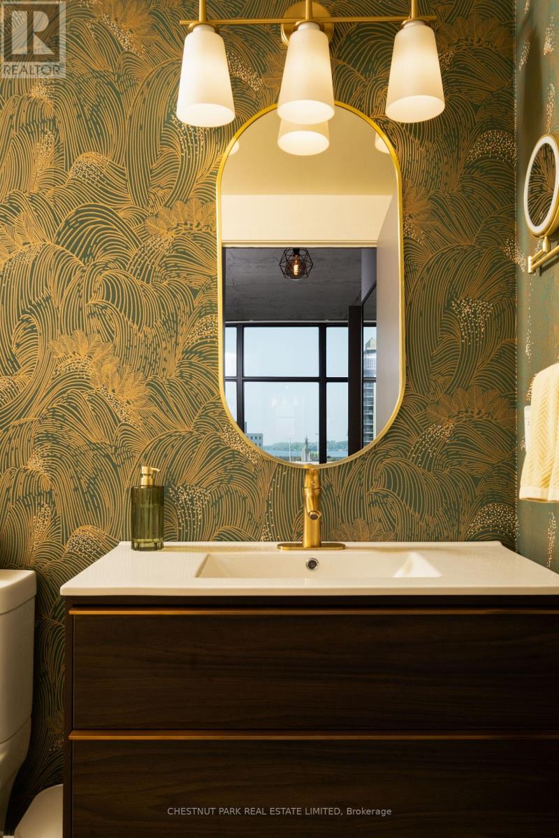 Whether you're downsizing without compromise or upgrading your lifestyle, Suite 709 offers a rare opportunity to own a designer corner residence in the heart of downtown Toronto - located in one of the city's most connected and vibrant neighbourhoods. Meticulously reimagined, this one-of-a-kind suite blends striking design with serious functionality. At its centre is a true chef's kitchen, professionally equipped with a 36" Bluestar gas range (six open burners), ultra-quiet Ventahood, hammered copper sink, and a bar sink that doubles as a champagne bucket. Custom cabinetry with integrated storage maximizes every inch. Behind a discreet sliding door, a fully separate walk-in pantry adds exceptional versatility, complete with a wall oven, brass shelving, pan-cooling racks, and a beverage fridge, an entertainer's dream and a cook's command centre - a rare luxury in condo living. This coveted corner layout features floor-to-ceiling windows in every principal room, filling the space with natural light from the east and south while framing the city skyline and partial lake views. The private terrace offers a front-row seat to the skyline and nearby Billy Bishop Airport. Chevron oak flooring, exposed concrete ceilings, curated designer finishes, and top-tier appliances create a sophisticated yet warm aesthetic. This is not a cosmetic update - it's a thoughtful transformation. Includes parking, locker, and access to the renowned 30,000 sq. ft. Super Club with gym, pool, tennis courts, and extensive amenities. Steps to the waterfront, The Well, Rogers Centre, and downtown's best dining, transit, and entertainment. Suite 709 delivers a rare combination of design, light, and location - ideal for buyers who want downtown luxury living without compromise. A standout residence for buyers who refuse to settle for the ordinary. (id:64974)