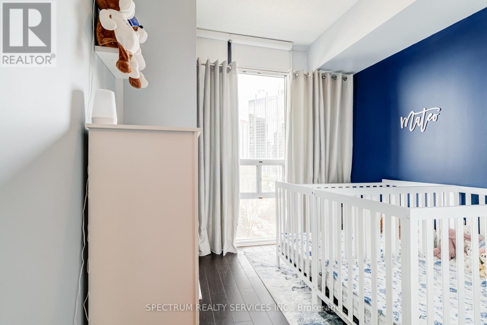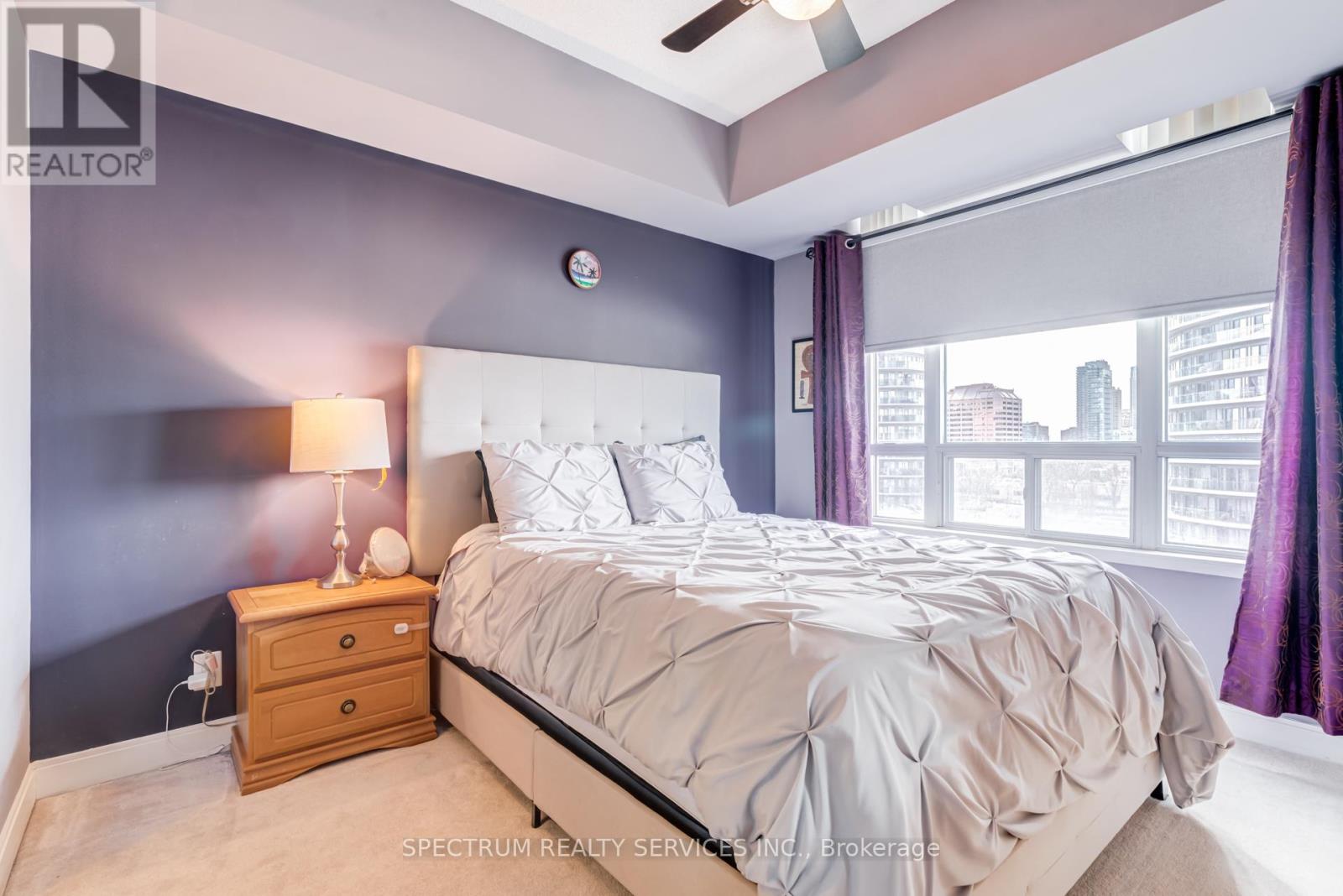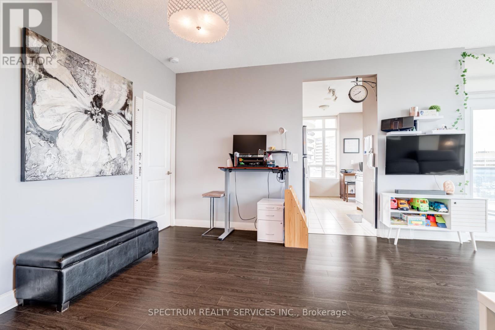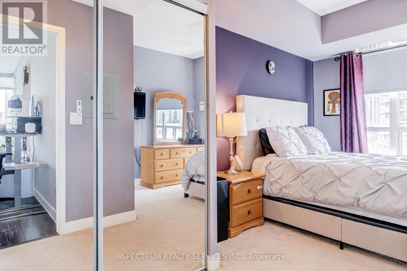 Welcome to Unit 709 at Absolute World Towers, located at 80 Absolute Avenue in the heart of Mississauga's vibrant City Centre. This beautifully maintained 2-bedroom, 2-bathroom suite offers 870 sq. ft. of thoughtfully designed living space and includes 1 parking space and 1 locker for added convenience. The unit features 9-foot ceilings, elegant hardwood flooring, and expansive floor-to-ceiling windows that fill the space with natural light while showcasing clear, unobstructed city views. The functional open-concept layout provides seamless flow between the living, dining, and kitchen areas-ideal for both everyday living and entertaining. The modern kitchen is equipped with stainless steel appliances, ample cabinetry, and generous counter space. The bright living and dining area leads to a private open balcony, perfect for relaxing and enjoying panoramic city views. The primary bedroom features a private ensuite bathroom and generous closet space while the second bedroom offers flexibility for guests or family members. With its efficient layout stylish finishes, this suite is ideal for professionals, couples, first-time buyers, or investors. Residents enjoy access to resort-style amenities at the renowned Absolute Club, offering over 30,000 sq. ft. of recreational facilities, including indoor and outdoor swimming pools, a fully equipped fitness centre, indoor running track, basketball court, squash courts, party and meeting rooms, theatre room, guest suites, 24-hour concierge, and security. Ideally situated just minutes from Square One Shopping Centre, Celebration Square, restaurants, parks, and transit, with quick access to Highway 403, Highway401, and Highway 407. Experience vibrant urban living in one of Mississauga's most iconic condominium communities. (id:64974)