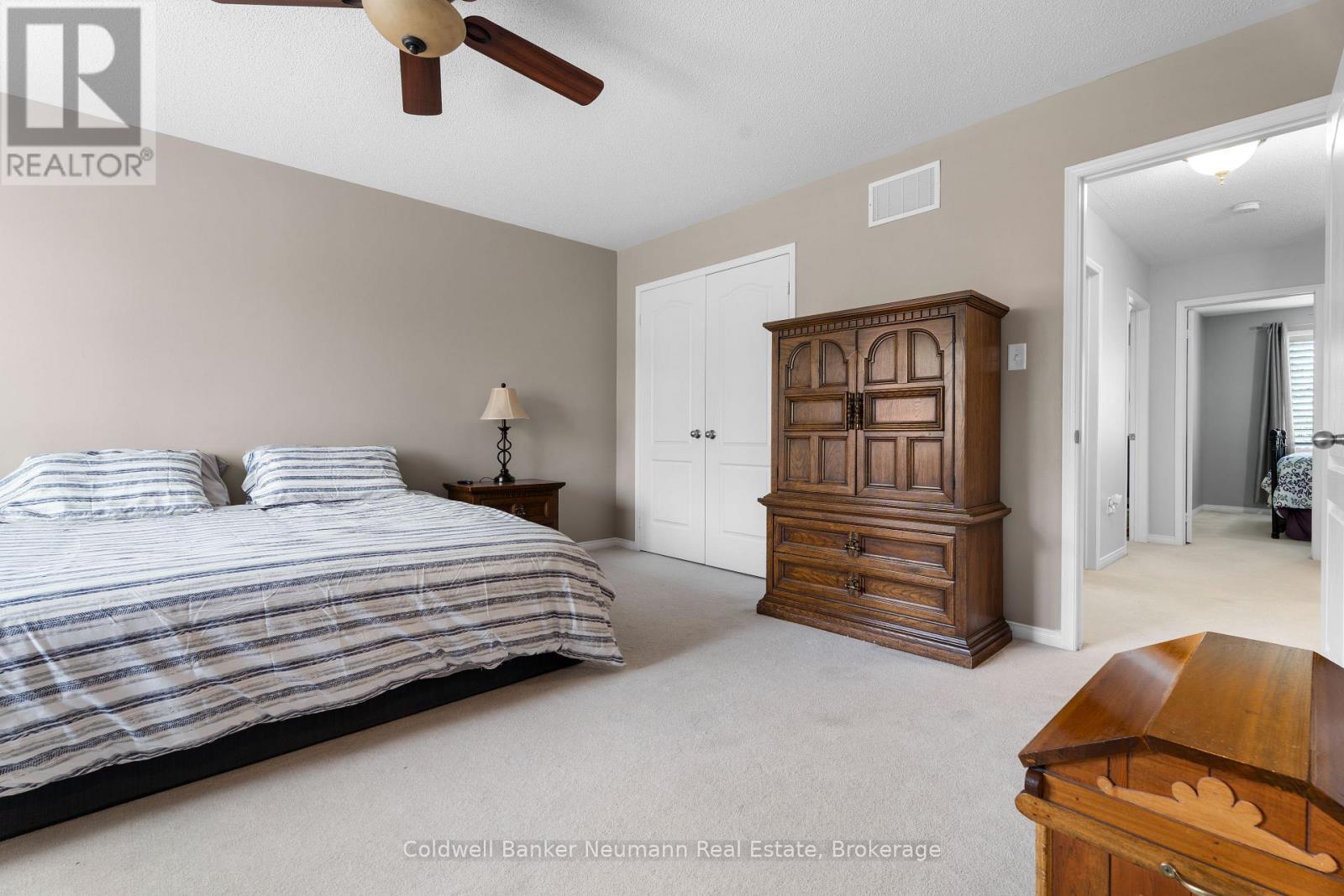 Care-free living with no yard maintenance required, this well-managed, quiet complex with low fees, near everything in Guelph's sought-after south end doesn't always have units available for sale. A wonderful opportunity for young families, downsizers, or even those looking to get into the market and start building some equity - this owner-occupied 1300+ sqft (PLUS finished basement) townhome is clean, cozy, and has been nicely maintained over the years, with a new roof and new water heater, just in 2025. Offering 3 bedrooms, it features an open-concept main floor living area, brightly lit by the westerly-exposed rear window and sliding door. There is a cozy yard, which is open to the playground amenity of the complex, a lovely feature for young families with little ones, or grandparents who frequently host their grandkids! Have peace of mind as you watch your kids play within eyesight of the your home, while the path behind also helps create a spacious separation/buffer space between other units in the complex, enhancing its feeling of privacy. Upstairs are three spacious bedrooms, with a large primary bedroom with two closets, plus a large 4pc ensuite bath with tiled shower and soaker tub. There is also a main 4pc bath on the second floor. The basement is fully finished and has been freshly painted in neutral decor, with a rec room, office nook, storage/utility room, laundry closet (with stackable machines and laundry sink), and more storage. Rough-in for another bath as well. Parking for TWO cars with the attached garage and driveway, plenty of visitor spaces that are steps from this home, and a bus stop literally steps outside of the front door as well! Situated within a very family-friendly complex, near the University of Guelph, the trails at the Arboretum, great schools (including the future secondary school), Victoria Park East Golf Club, shopping, and easy access to the 401. This one checks all the boxes! (id:64974)
