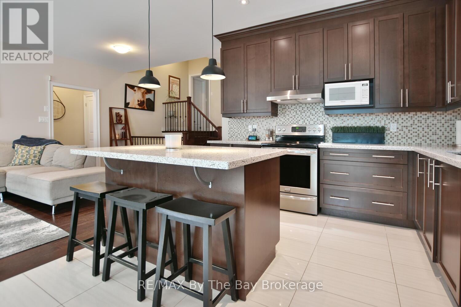 This all-brick, well-built home in Wasaga Beach's west end offers excellent in-law potential. Boasting four bedrooms, it's located just minutes from sandy beaches, shopping, restaurants, and the skiing opportunities at Blue Mountain. The open-concept main level features 9-foot ceilings and an upgraded kitchen with stainless steel appliances, a center island, and quartz countertops. Step out onto the deck with privacy louvers that overlook a fully fenced backyard. The spacious primary bedroom includes walk-in closets, vaulted ceilings, and a full ensuite bath. A second bedroom also has its own 3-piece ensuite. The home includes a double garage with inside entry to the main level, and the unspoiled basement offers high ceilings, large windows, and roughed-in plumbing for a fourth bathroom perfect for creating an income-generating suite. Situated on a quiet street, this home offers both comfort and convenience. (id:64974)