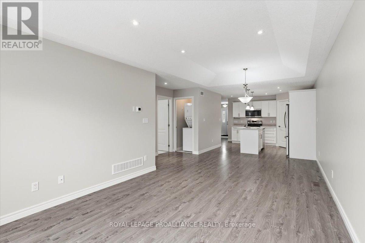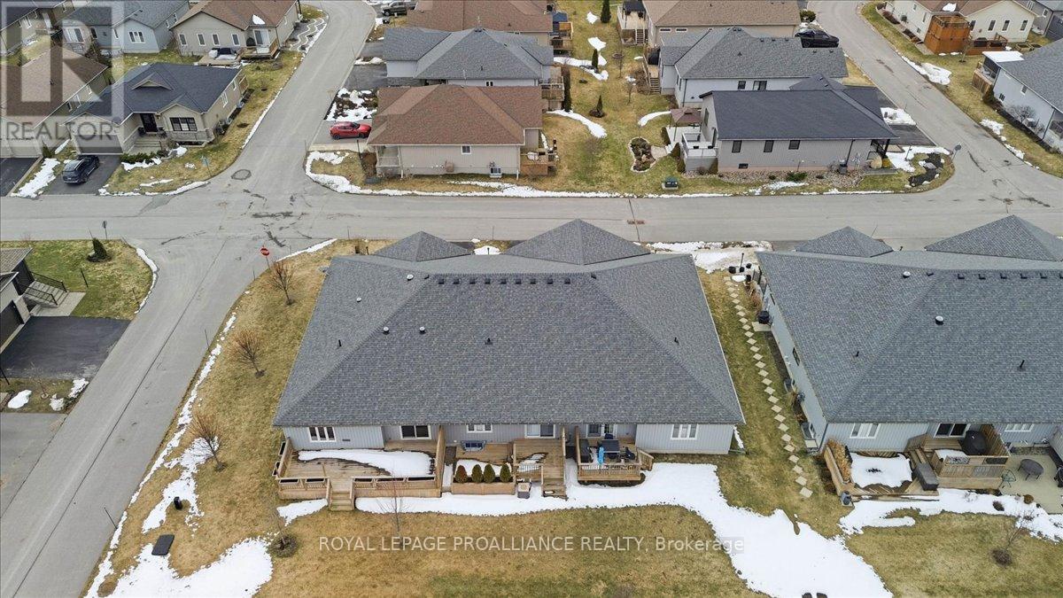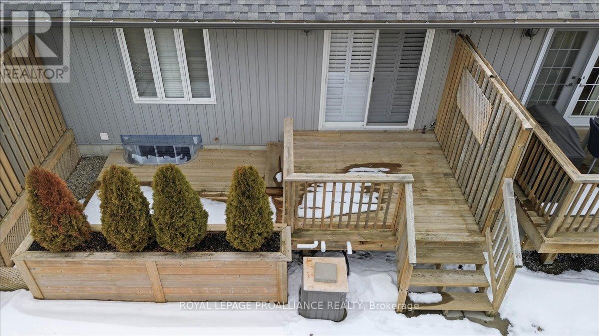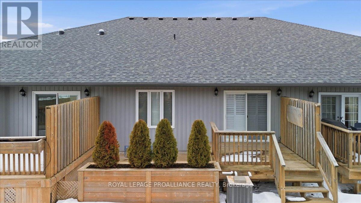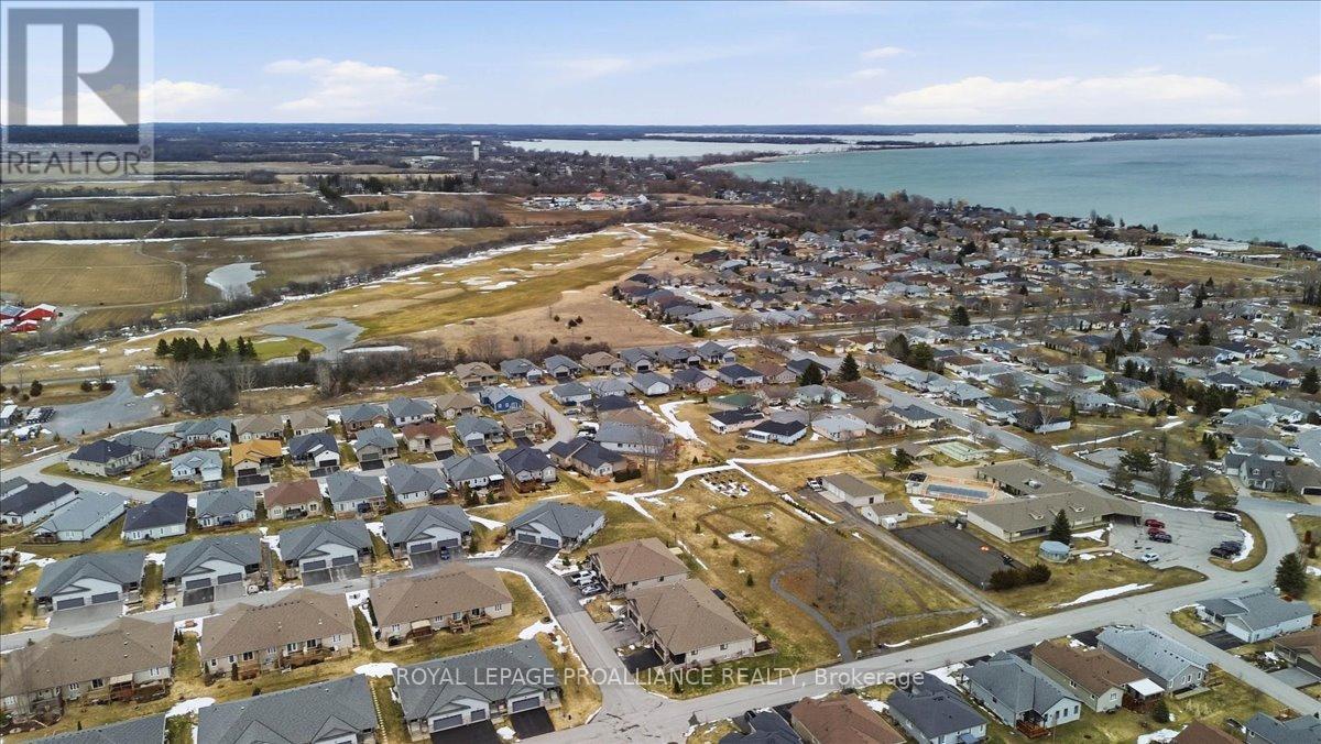 Well maintained Villa at Wellington on the Lake featuring 1375 finished area with 2 bedrooms, 2 bathrooms and a partially finished basement. This home offers new front steps in 2025, a 2 tier back deck offering privacy, freshly painted, new microwave in 2025, upgraded LVP flooring in 2025, upgraded shower heads, Danze kitchen pulldown faucet, LR California Shutters and stainless steel appliances. Move in ready for you to enjoy the lifestyle that this active adult community offers. Featuring a community rec centre, in-ground pool, tennis and pickle ball court, gym, wood working shop, billards, a gym and soo much more. Located only minutes away from downtown Wellington featuring a beach, park, the Millennium Trail, shopping, fine dining just to name a few. Short drive to numerous wineries, breweries and only 20+ minutes to Belleville. Don't miss out on this beautiful home. Common fee is $357.77 including HST paid monthly and includes garbage removal, snow removal on roads and common areas, recycling, grass cutting, rec centre and more. (id:64974)