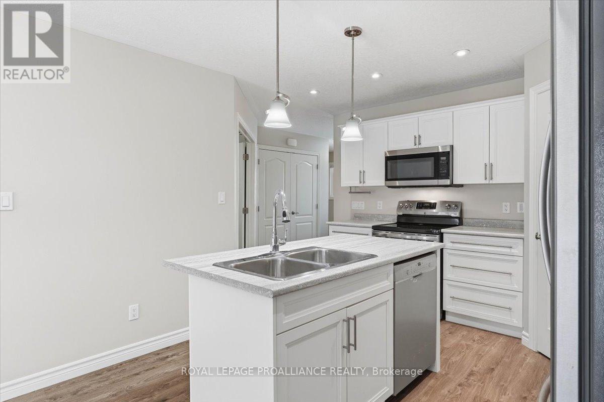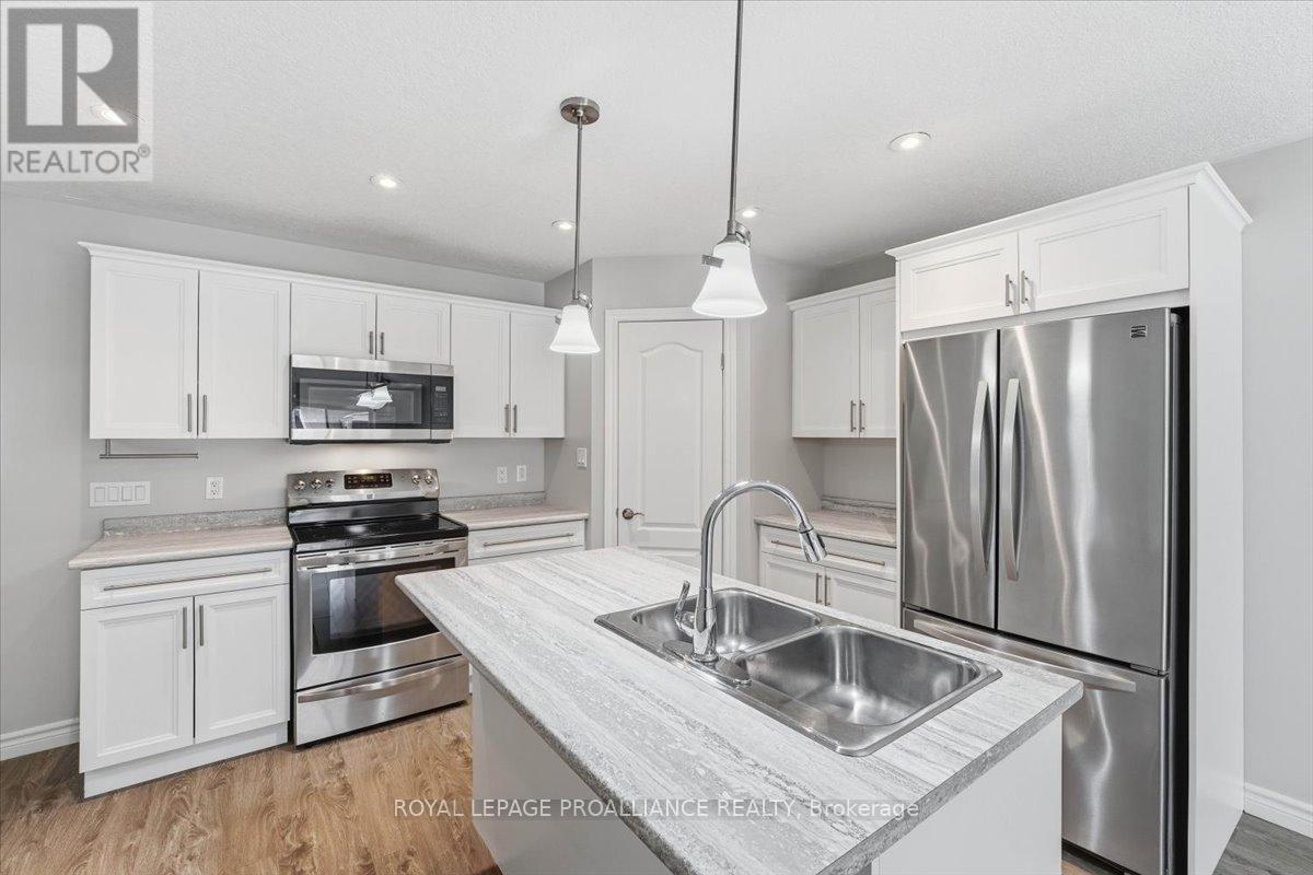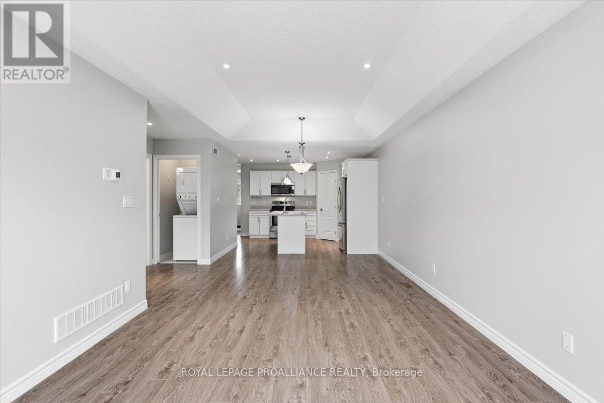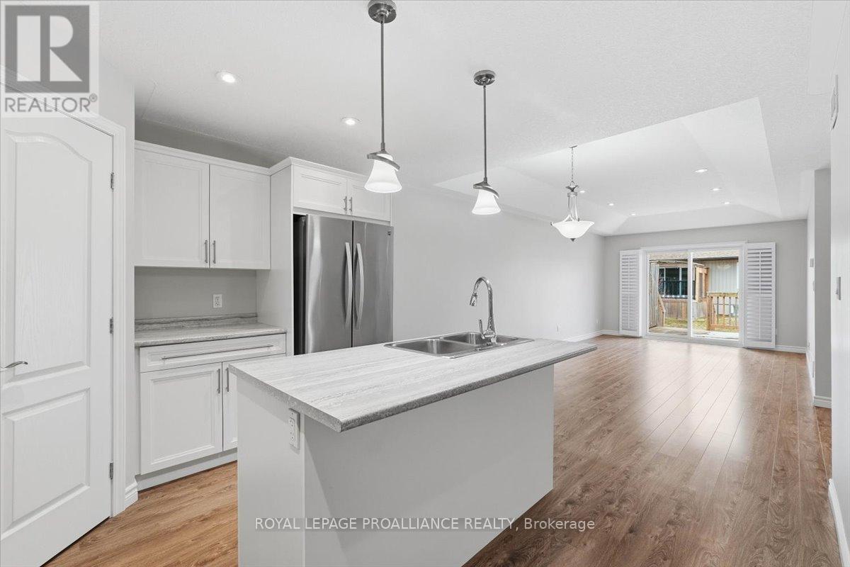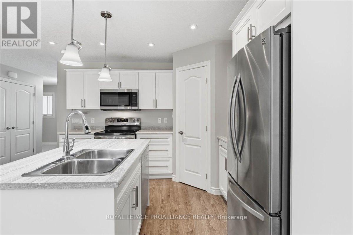 Well maintained Villa at Wellington on the Lake featuring 1375 finished area with 2 bedrooms, 2 bathrooms and a partially finished basement. This home offers new front steps in 2025, a 2 tier back deck offering privacy, freshly painted, new microwave in 2025, upgraded LVP flooring in 2025, upgraded shower heads, Danze kitchen pulldown faucet, LR California Shutters and stainless steel appliances. Move in ready for you to enjoy the lifestyle that this active adult community offers. Featuring a community rec centre, in-ground pool, tennis and pickle ball court, gym, wood working shop, billards, a gym and soo much more. Located only minutes away from downtown Wellington featuring a beach, park, the Millennium Trail, shopping, fine dining just to name a few. Short drive to numerous wineries, breweries and only 20+ minutes to Belleville. Don't miss out on this beautiful home. Common fee is $357.77 including HST paid monthly and includes garbage removal, snow removal on roads and common areas, recycling, grass cutting, rec centre and more. (id:64974)