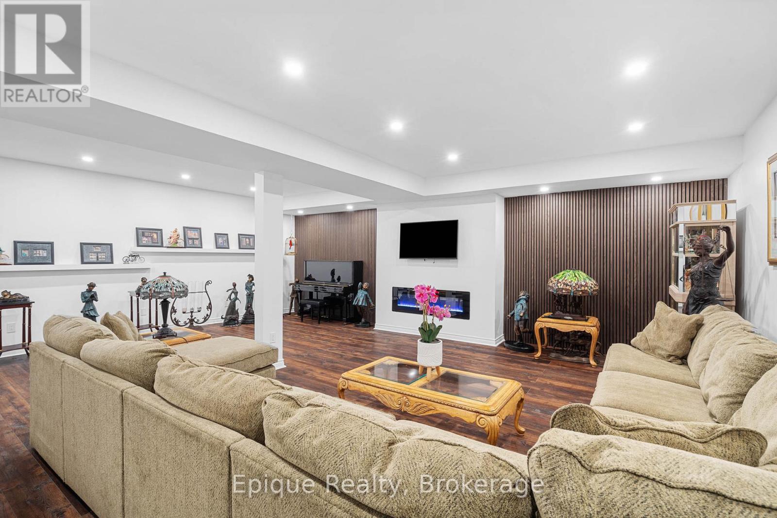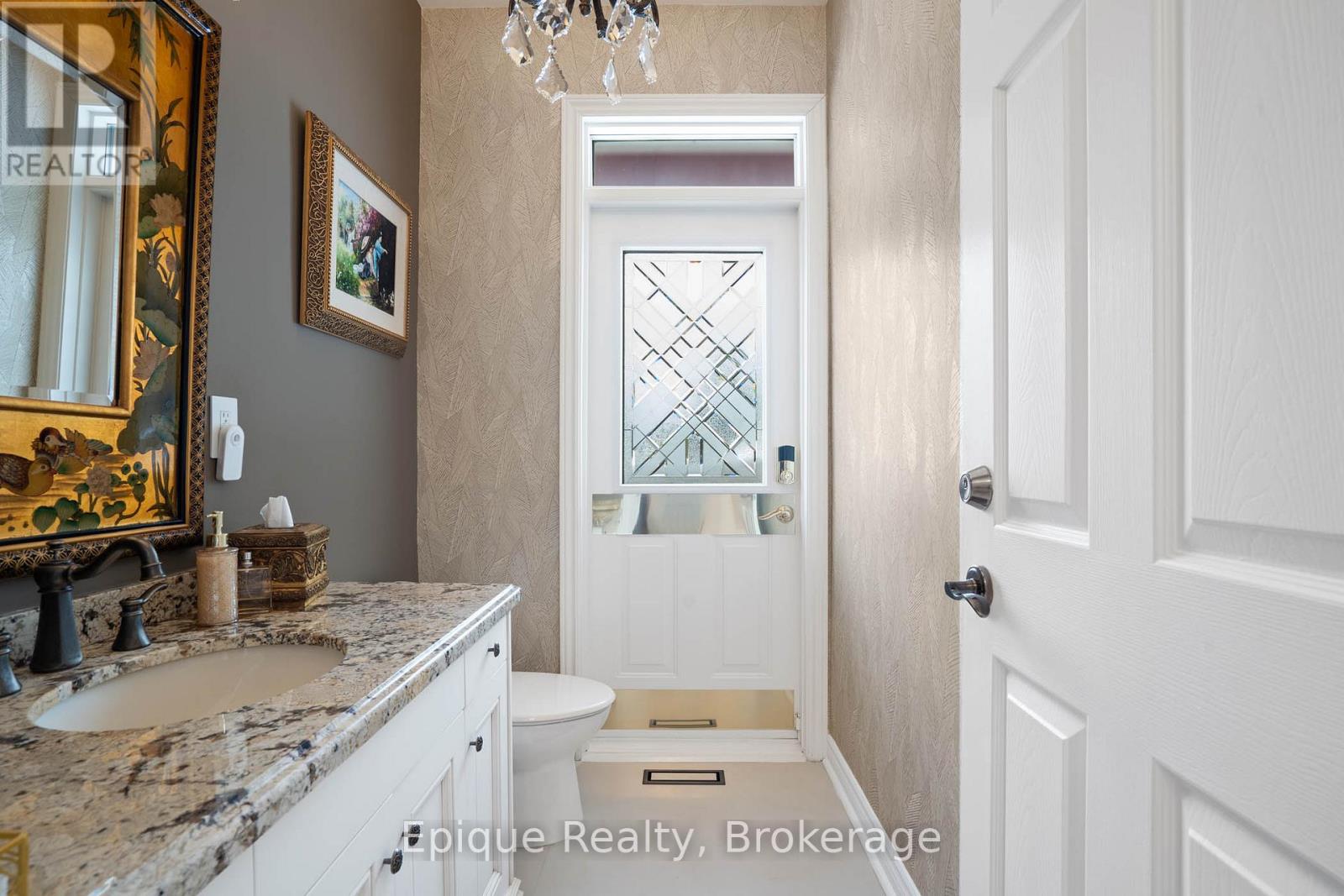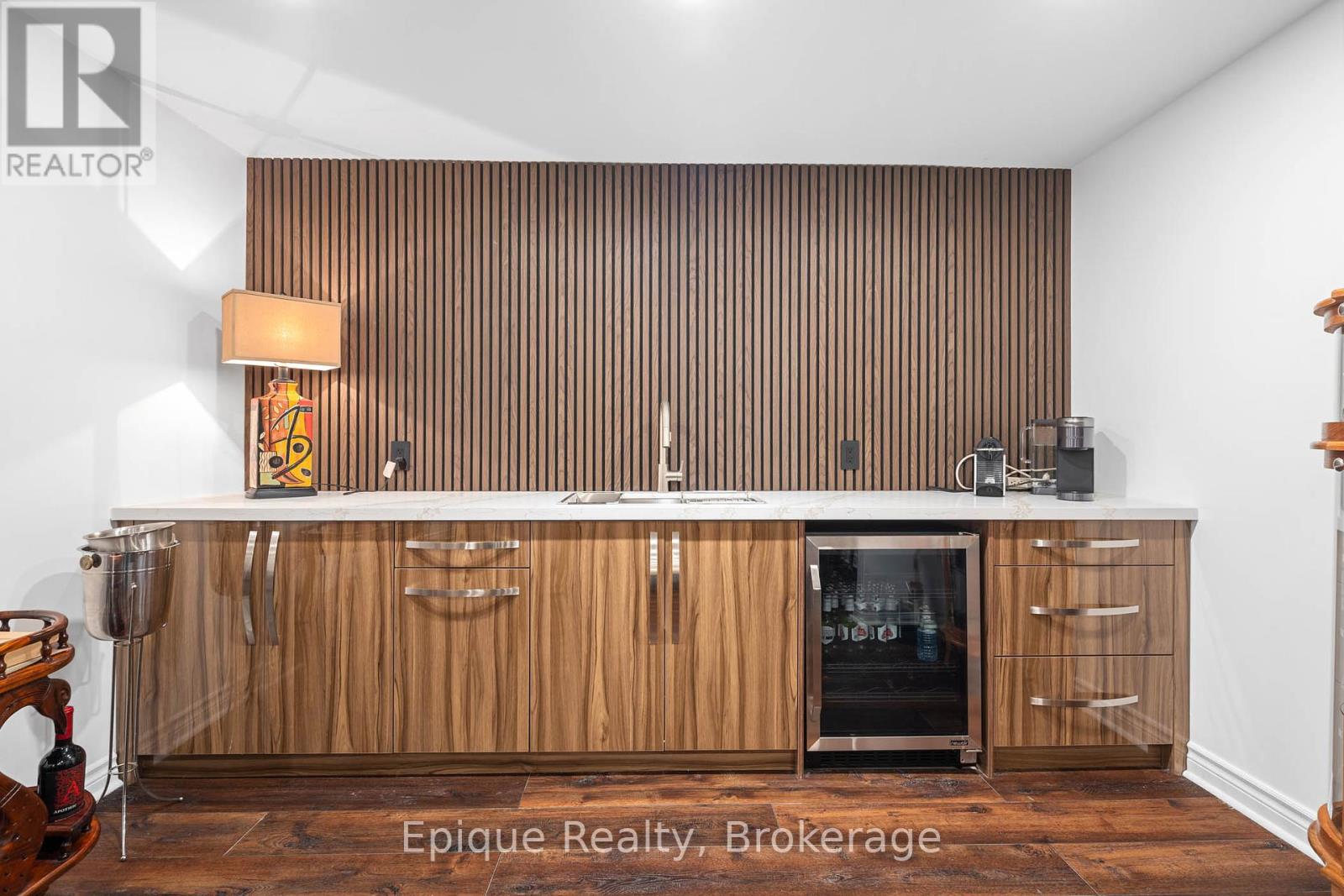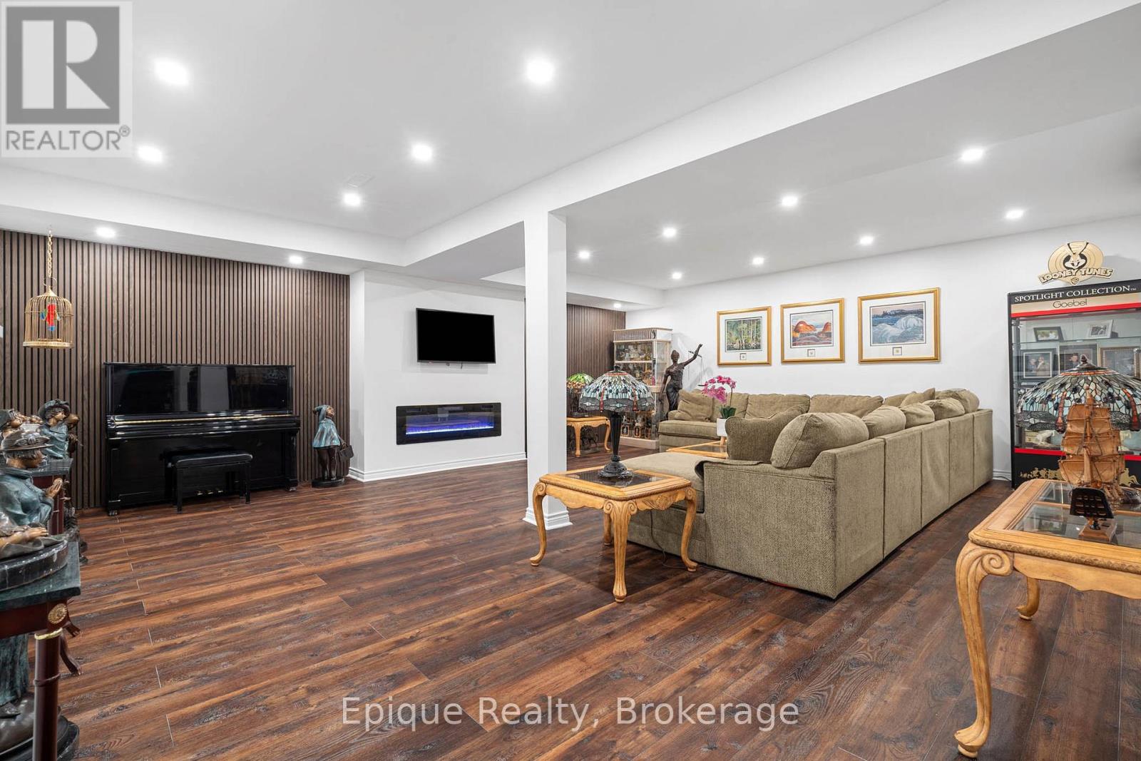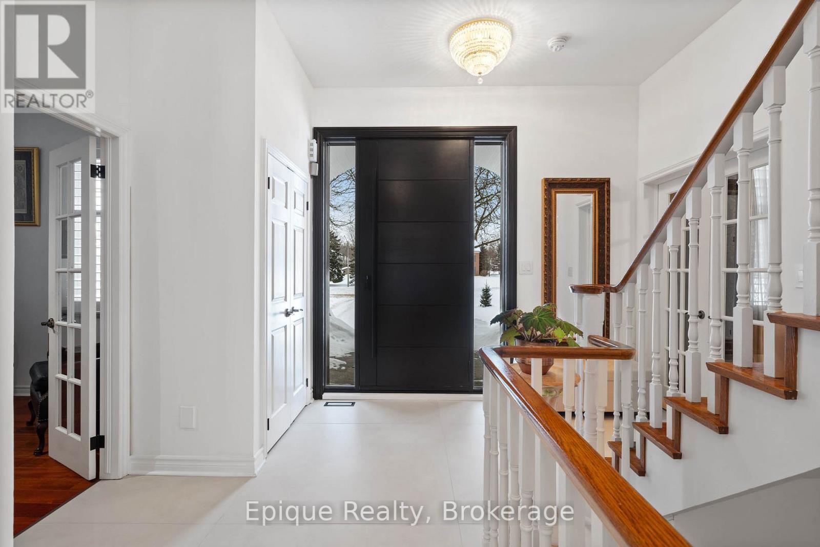 EXPERIENCE UNMATCHED LUXURY IN CAMPBELLVILLE. Nestled on a lush and private 1.13 acres, this imposing 7,200 sq. ft. estate is a masterpiece of design and craftsmanship. Exotic Brazilian cherry floors, Swarovski crystal chandeliers, and five fireplaces create an ambiance of timeless elegance.The formal dining room stuns with a majestic fireplace and chandelier, while the main-floor office connects seamlessly to the conservatory, perfect for entertaining with a baby grand piano. The gourmet kitchen boasts Jenn-Air & Bosch appliances, custom cabinetry, and quad French doors leading to an expansive deck and remote-controlled screened sunroom.The primary suite wing is a private retreat with a sitting area, gas fireplace, spa-inspired ensuite with double vanities, an oversized glass shower, a deep soaker tub, and extensive closet space. Three additional bedrooms share an opulent oversized bath, ensuring comfort and elegance.The professionally finished lower level includes a spa-inspired 3-piece bath with a steam shower. Outdoors, enjoy a 20 x 40 heated saltwater pool, pool house changeroom, and a cedar cabana bar with power and water.For the automobile enthusiast, the 4-car garage and parking for 20+ vehicles provide ample space. Just minutes from the 401, this estate offers unparalleled luxury, privacy, and accessibility.A rare opportunity to own a true luxury retreat. Schedule your private showing today. (id:64974)