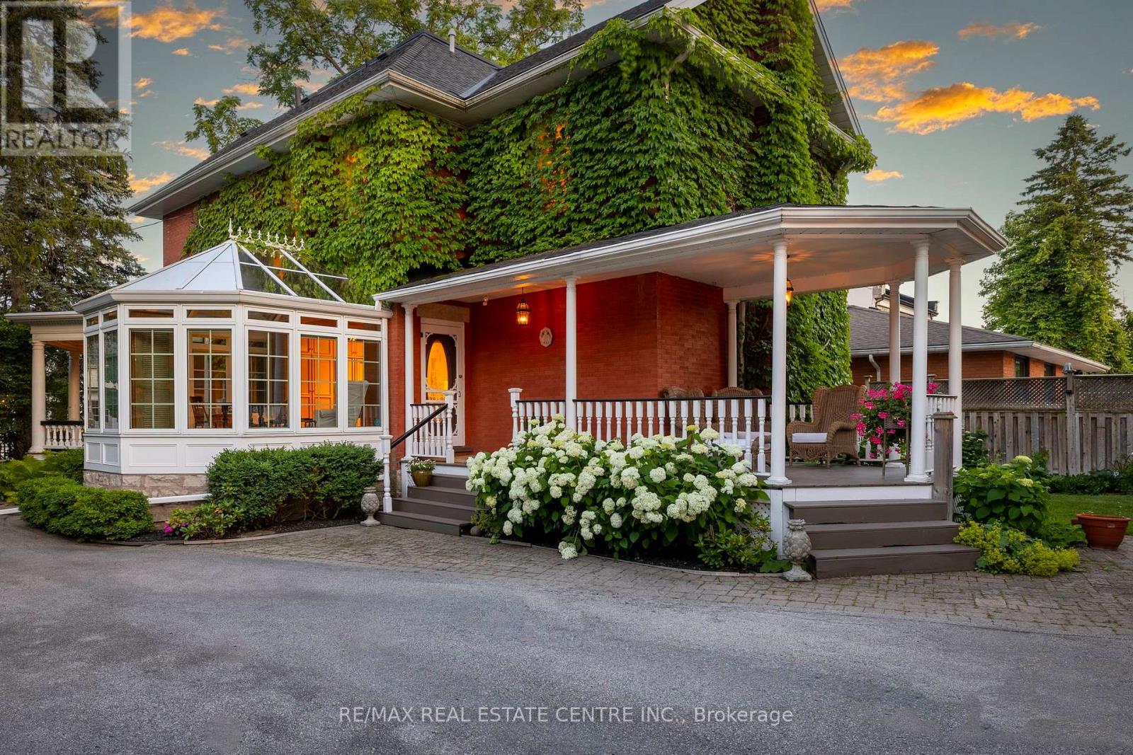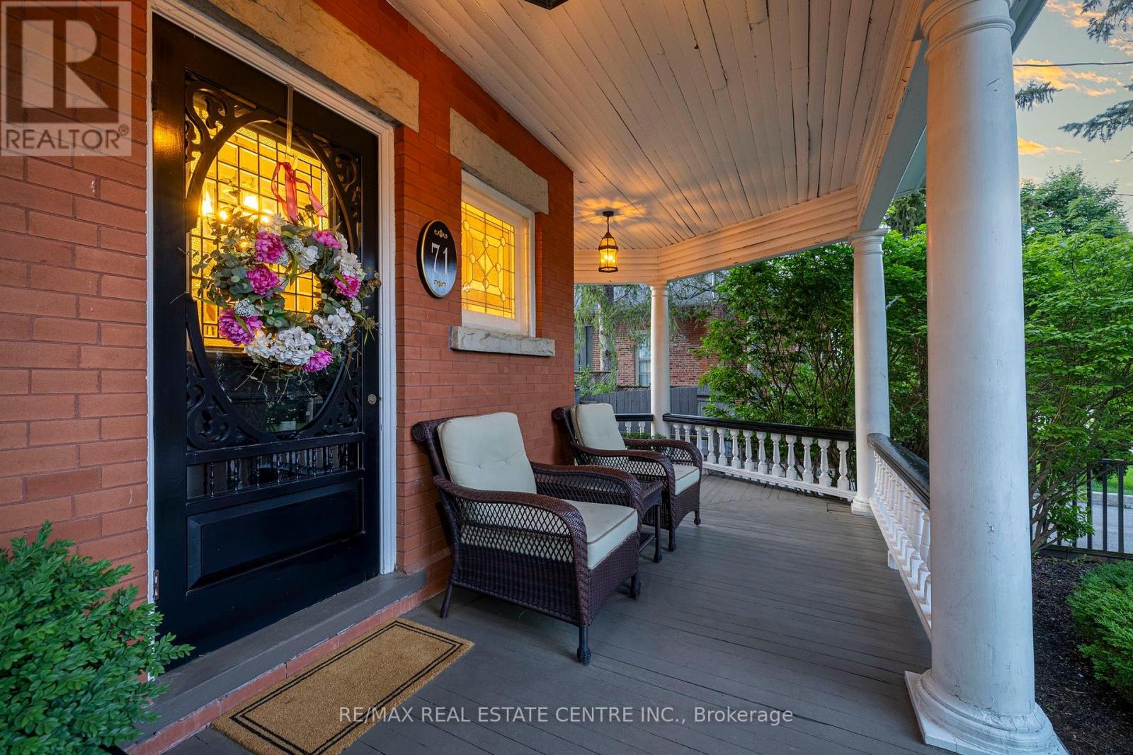 THIS. IS. LUXURY. Welcome to this Impeccably Restored Victorian home (circa 1905), where timeless charm meets elegance and modern comfort. From the moment you arrive, the home's striking curb appeal draws you in-featuring a welcoming front porch and beautifully landscaped perennial gardens, all set among Milton's loveliest century homes. Inside, soaring 10-foot ceilings and exquisite craftsmanship set the tone. Gleaming hardwood, crown moulding and deep baseboards and trim create a warm, refined atmosphere throughout. The main level offers a living room with fireplace, dining room conveniently off the kitchen and a study/office with fireplace and rich built-in cabinetry and woodwork. At the heart of the home is the stunning gourmet eat-in kitchen, thoughtfully designed with abundant cabinetry, granite counters and island. The adjoining heated solarium/conservatory is a true showpiece-an inviting space to unwind while enjoying serene views of the gardens year-round. Upstairs, you'll find 4 well-appointed bedrooms and a spa-like 4-pc family bath with heated floor. The primary bedroom features a soaring architectural vaulted ceiling, his/her closets and a luxurious 3-pc ensuite, also with heated flooring. A bonus third-level loft is drywalled and ready for your personal touch. Enjoy the peaceful backyard that is so private and complete with lush perennial gardens and a charming verandah. There is a separate 2-car garage and ample parking in the paved driveway. Additional highlights: approximately 2,300 sq ft above grade, 3 wood-burning fireplaces, central air conditioning, forced air natural gas heating, a separate entrance directly to the lower-level and a full basement with abundant storage. Ideally located within walking distance to schools, Rotary Park, splash pad, public pool, outdoor ice rink, shops, restaurants, Mill Pond, and Milton's vibrant downtown, this turn-key home offers a rare opportunity to own a piece of history-beautifully updated for modern living. (id:64974)