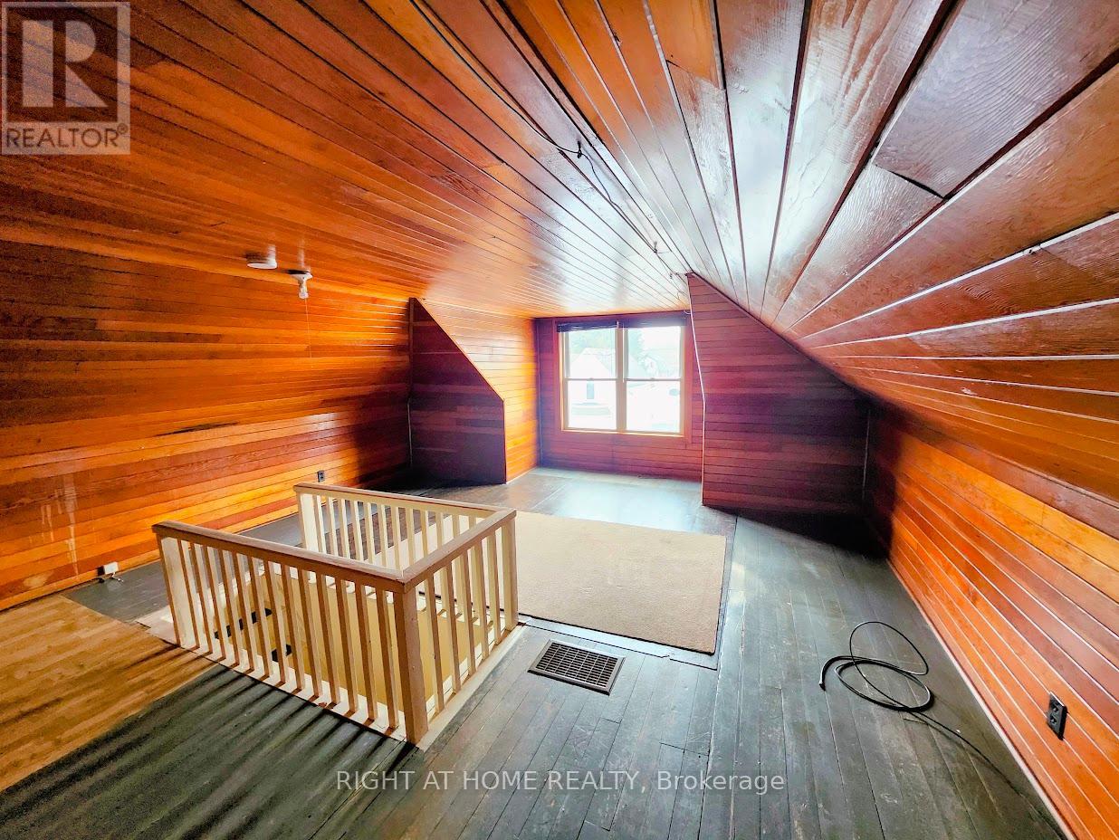 Opportunity awaits in this solid 2.5 storey brick home full of character and potential. Offering space, flexibility, and future possibilities, this property presents exceptional value for buyers ready to update and customize. The second floor features three bedrooms, while the main level offers a functional layout with kitchen, dining, and living areas, plus a convenient walkout to the backyard. The third-floor loft provided a rare and versatile bonus space, ideal for a home office, studio, or creative retreat, an added on feature not commonly found in many houses. An outstanding highlight is the generous lot, including an adjoining parcel measuring approximately 24.76 ft. x 108.83 ft. There may be a potential for severance to create an additional building lot, offering exciting future development possibilities. The seller makes no representations or warranties regarding severance; buyers are responsible for conducting their own due diligence. The private single width driveway accommodates two cars, and a detached garage (requiring significant improvement) adds further utility. Ideally situated in a convenient location within walking distance to the shopping centre, local transit, schools, and downtown amenities. A rare opportunity to secure a property with space, flexibility, and long term upside in a desirable setting. (id:64974)