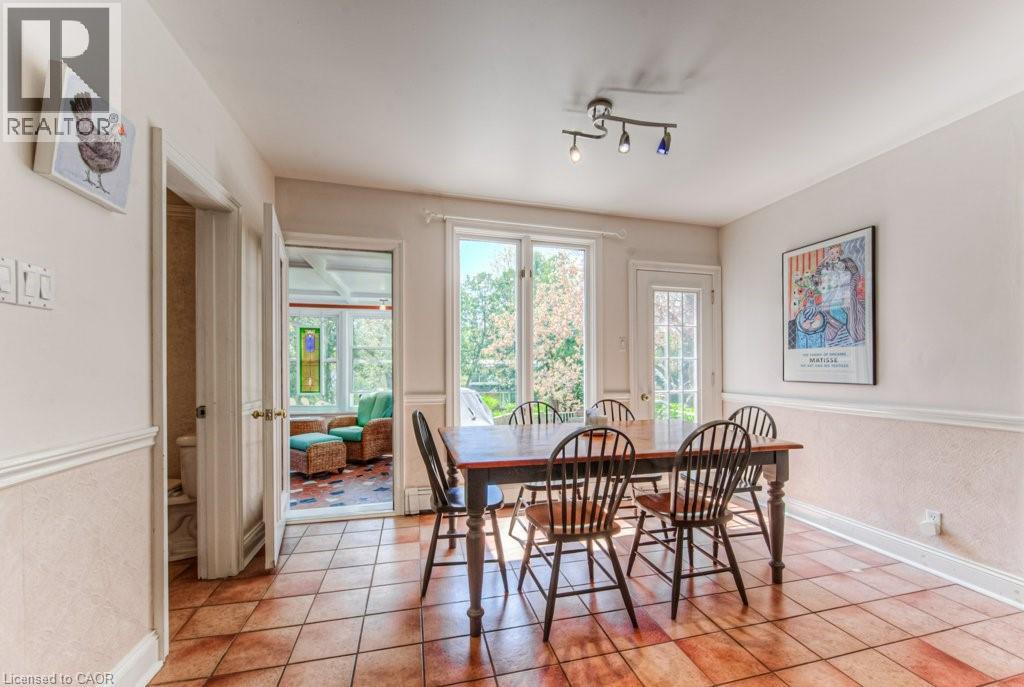 Welcome to a one-of-a-kind residence in one of KWs most sought-after residential areas, featuring an expansive 82’ X 175’ lot. This beautifully maintained home was built in 1950 by local community leader Ira Needles and now combines classic craftsmanship with contemporary convenience. Step into the elegant front entryway featuring a tiled floor, cedar-lined closet, and skylight over the main staircase that floods the space with natural light. Inside, you'll find a harmonious blend of hardwood flooring, plaster ceilings with crown moulding, and timeless architectural details. The spacious living room boasts oak hardwood, a wood-burning fireplace, and custom built-in bookshelves. Entertain in the formal dining room complete with a bay window bench seat and built-in sideboard. The eat-in kitchen offers granite counters, a central island, tile backsplash, and pot lights—and a classic tiled floor. Bring the outdoors in and unwind in your incredible sunroom overlooking the beautifully landscaped backyard. Don't forget the versatile study that could be a beautiful office space or main floor family room. Upstairs, are three generously sized bedrooms. Two are finished w/ warm walnut hardwood. The primary suite offers built-in cabinetry acting as dressers, two deceptively spacious closets, and a luxurious 4-piece ensuite with a tiled, heated floor. A unique bonus bedroom sits above the garage! The walk-out basement is finished with ¾-inch oak wall paneling, a second wood-burning fireplace, and stylish mini bar w/ slate floor, tin ceiling, wine fridge, and second fridge. Outside, enjoy the serenity of a stunning backyard landscaped entirely with perennials, a multi-tiered deck, gas BBQ line, and a hot tub—perfect for entertaining or relaxing in your private oasis. Additional highlights include: copper eavestroughs, new boiler (2022) and shingles (2021). This unique home is filled with character, quality, and comfort—a rare opportunity to own a true piece of local history. (id:64974)