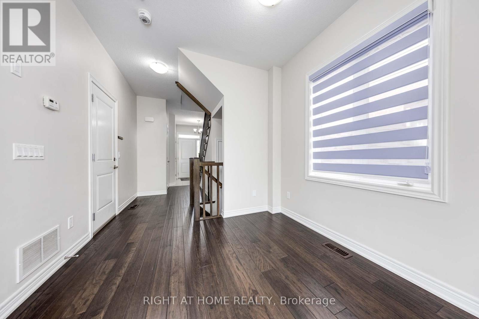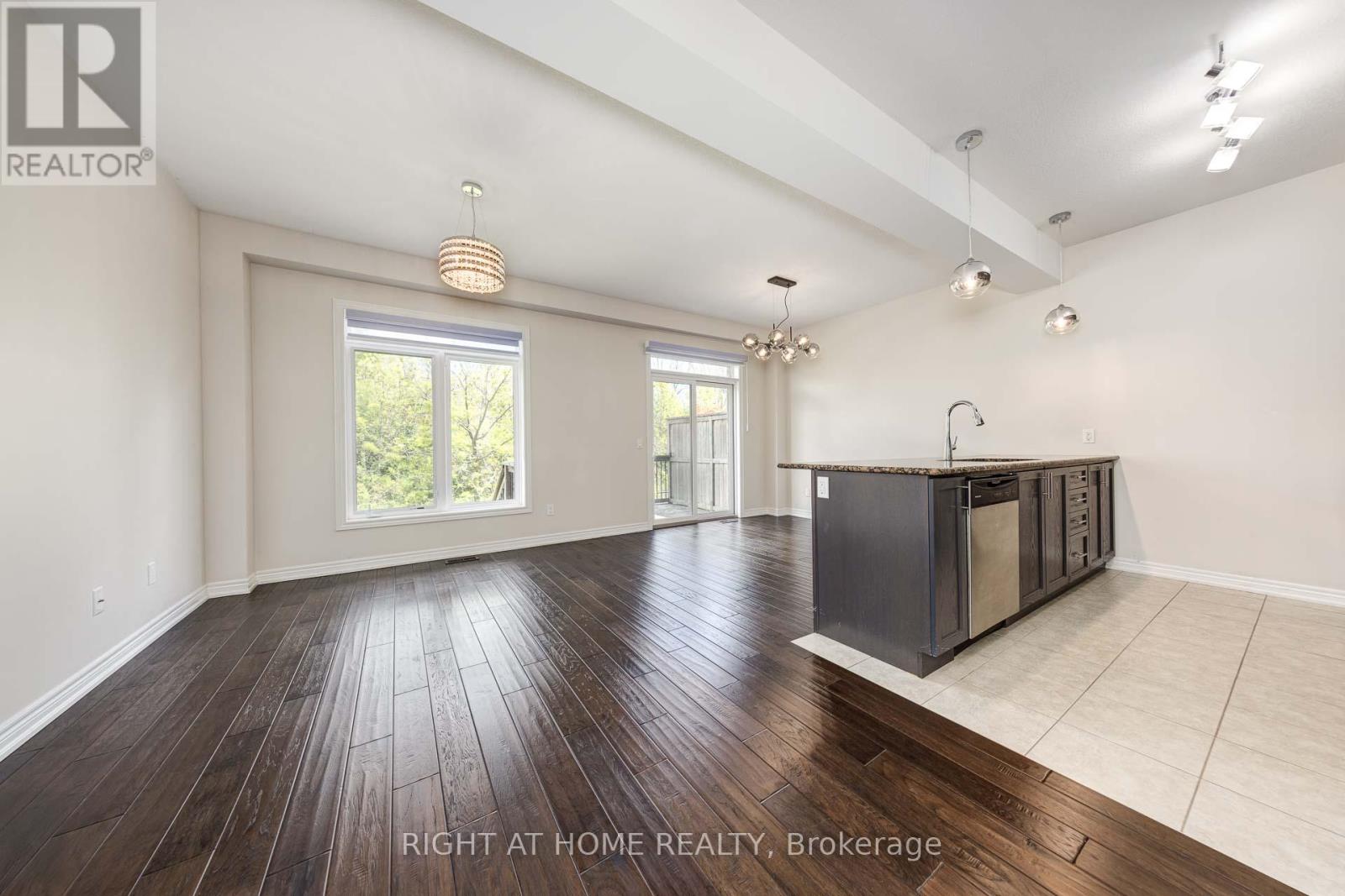 Welcome To This Stunning 3 Bedroom, 2.5 bath 2 Storey Freehold Townhouse. This townhouse sounds like a fantastic find! Nestled in the sought-after Waterfront Trails community, it offers a low-maintenance lifestyle with no need to shovel snow or cut grassperfect for effortless living. This bright end-unit, backs on to Green space, Open Concept Layout, Closet & Garage Access from Large Foyer. Design ensures plenty of natural light, complemented by 9-ft ceilings and maple engineered hardwood on the main floor and matching Stairs. The Berber carpet upstairs adds warmth and comfort. The kitchen is a standout, featuring dark oak cabinets and granite countertops, creating a stylish and functional space. The primary bedroom boasts its own ensuite and walk-in closet, plus a spacious den for added versatility. Beyond the home itself, the location is steps from the beach pathway, parks, schools, shopping, and major highways like the QEW and Red Hill Expressway. With fresh paint and new light fixtures, its truly move-in ready. Freehold town with a $120/month association fee, covers Snow Remove, landscaping (id:64974)