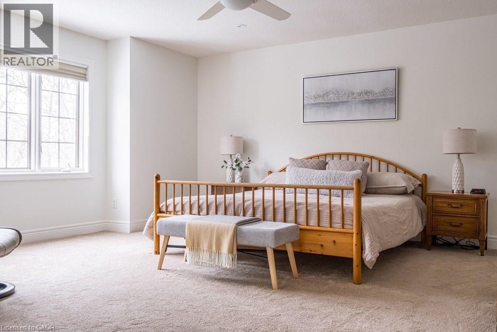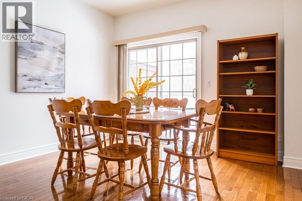 Welcome to Towne Manors, an exclusive enclave of executive townhomes set in a peaceful woodland setting just steps from historic Ancaster Village. Enjoy walkable access to restaurants, shops, the library, and the Ancaster Memorial Arts Centre, with the Bruce Trail, Dundas Valley, Highway 403, the LINC, Meadowlands, and the Ancaster Farmers Market all close by. Rarely offered, Unit #14 is a private corner unit surrounded by mature trees, offering over 3,000 sq ft of living space across three finished levels, including a walkout lower level. Ideal for families, professionals, or downsizers seeking space without compromise. The main floor features a welcoming foyer, open-concept living and dining areas with 9-foot ceilings, hardwood floors, crown moulding, pot lights, and a gas fireplace. The upgraded kitchen boasts maple cabinetry, granite counters, a centre island, walk-in pantry, and opens to a private deck with gas BBQ hookup overlooking tranquil woodland. Upstairs, the spacious primary suite includes a sitting area, walk-in and double closets, and a five-piece ensuite. Two additional bedrooms, a full bath with vaulted ceiling, and second-floor laundry complete the level. The finished walkout lower level offers a family room, bedroom, office, full bath, and direct access to private green space—an exceptional feature for townhome living. Residents also enjoy a friendly community with regular social gatherings. A rare opportunity to own a luxurious, private corner unit with walkout and serene woodland views in one of Ancaster’s most sought-after communities. (id:64974)