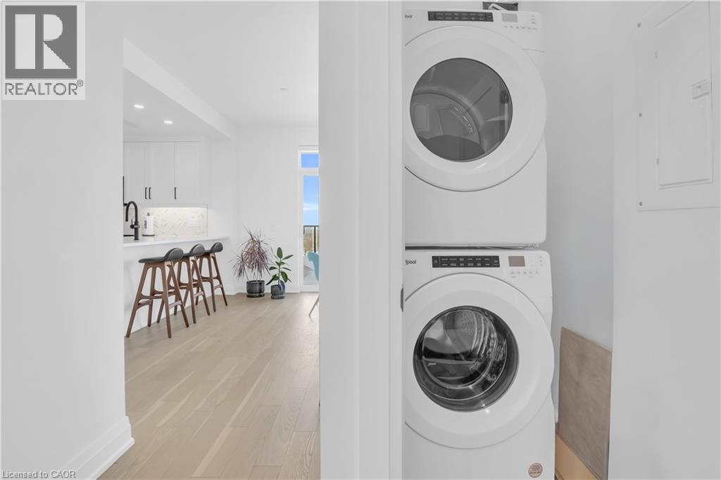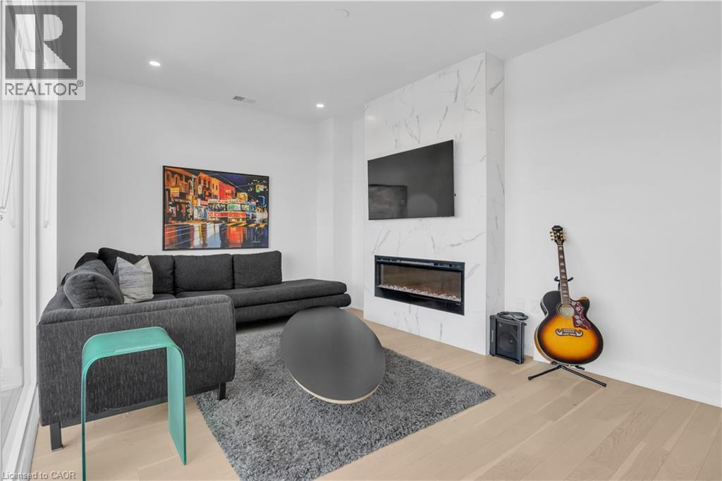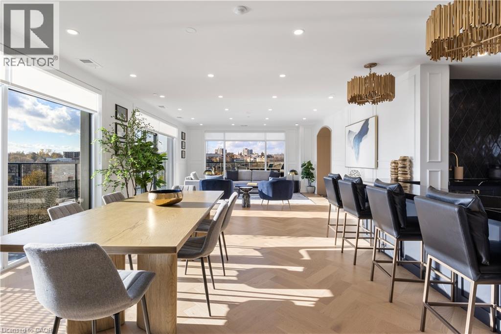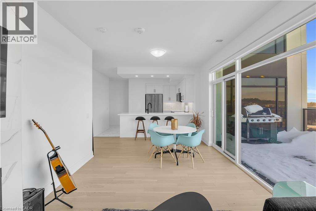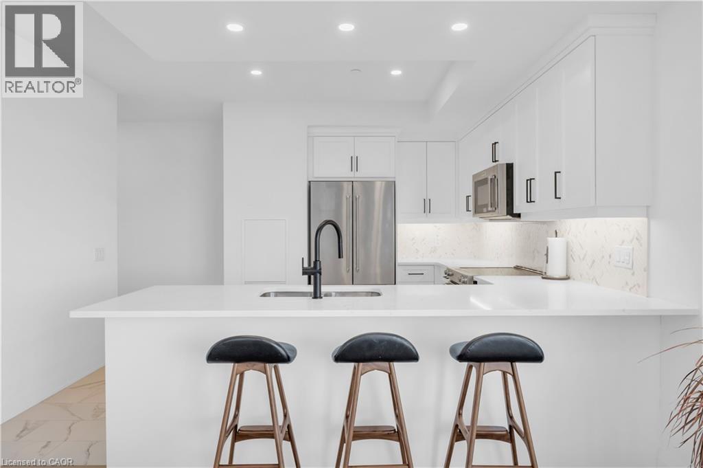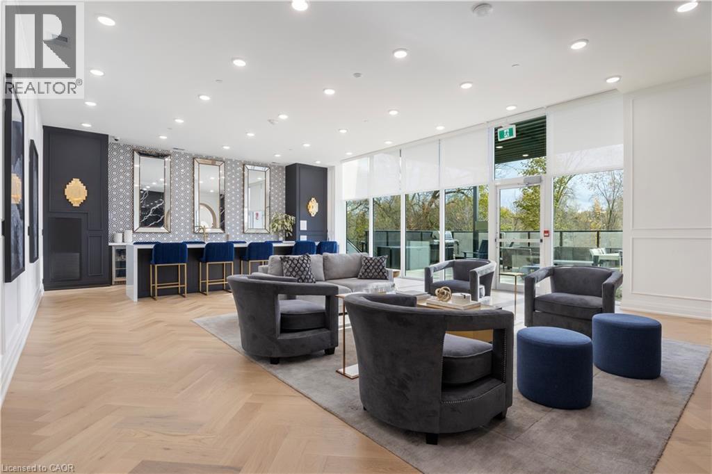 Welcome to 1105-71 Wyndham Street South, an elegant two bedroom plus den, two bathroom residence offering over 1,300 square feet of well-appointed living space in one of Guelph’s most prestigious condominium communities. Ideally situated along the Speed River and just steps to downtown, this suite combines generous proportions with a refined waterfront setting. A welcoming foyer with ample closet storage leads to a private den enclosed with French doors, ideal as a dedicated home office, reading retreat, or quiet lounge. This flexible space adds functionality while maintaining separation from the main living areas. The open-concept kitchen, dining, and living space is designed for comfortable everyday living and hosting. Large windows bring in natural light and showcase river views. The kitchen features built-in stainless steel appliances, quartz countertops, and a peninsula with seating. The living room is centred around a gas fireplace with a marble surround, creating a warm focal point. Step out to the expansive private terrace with views of the Speed River, offering ample space for outdoor seating and dining. The primary suite also enjoys its own private balcony overlooking the river, along with a walk-in closet and ensuite bath. A spacious second bedroom is located near a four-piece bathroom, and ensuite laundry provides added convenience. Residents have access to premium amenities including a library, games room, exercise room, and billiard room. With over 1,300 square feet, multiple outdoor spaces, and a walkable location close to downtown shops, dining, and trails, this residence presents an exceptional opportunity in the heart of Guelph. (id:64974)