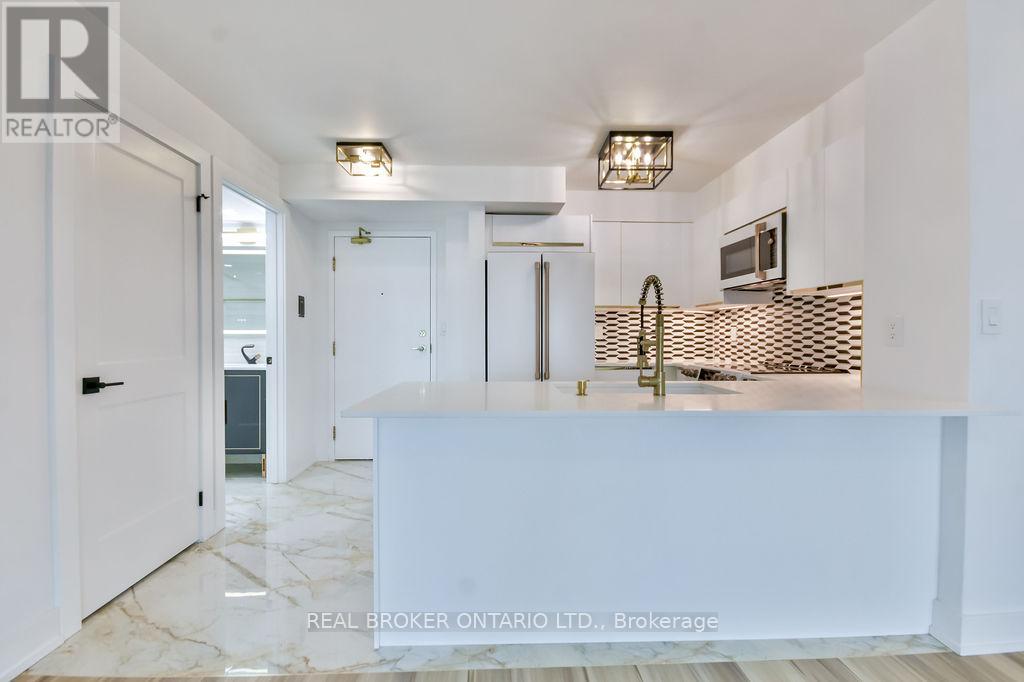 MOTIVATED SELLER! Fully renovated 2-bed, 2-full-bath condo offering luxury living in one of Etobicokes most desirable communities. Located in a beautifully maintained building with only 104 units, this condo offers an intimate, community-oriented feel. 24-hour gated security adds peace of mind, making it a great fit for young families, solo professionals, or downsizers. Enjoy living minutes to Mimico GO station, Gardiner Expressway & Queensway making commuting a breeze. Plus, it's just a short stroll to the lake & Humber Bay Park. This home features a functional open-concept layout showcasing high-end finishes throughout. Upon entry expect to be wowed by the chef-inspired GE Café kitchen that blends style & performance featuring a Matte White appliance suite including French Door Refrigerator, Air Fry Microwave, Smart Dishwasher & True European Convection Range, all with smart control & voice activation! The main bathroom is a showstopper, featuring details only seen in magazines, including a custom glass walk-in shower, a statement vanity, and top-of-the-line fixtures. The primary bedroom comfortably fits a king sized bed & boasts an extra-wide armoire with mirrored, soft-closing doors & automatic interior lighting. A 4-piece ensuite that is sure to impress features contrasting porcelain slabs that are bold and chic! The 2nd bedroom is a versatile space, ideal for guests, a child's room, or a stylish home office. Additionally the spacious laundry closet houses a GE Profile 2-in-1 washer/dryer with smart technology & storage space for added convenience. This is more than just a condo, it's a lifestyle upgrade! (id:64974)