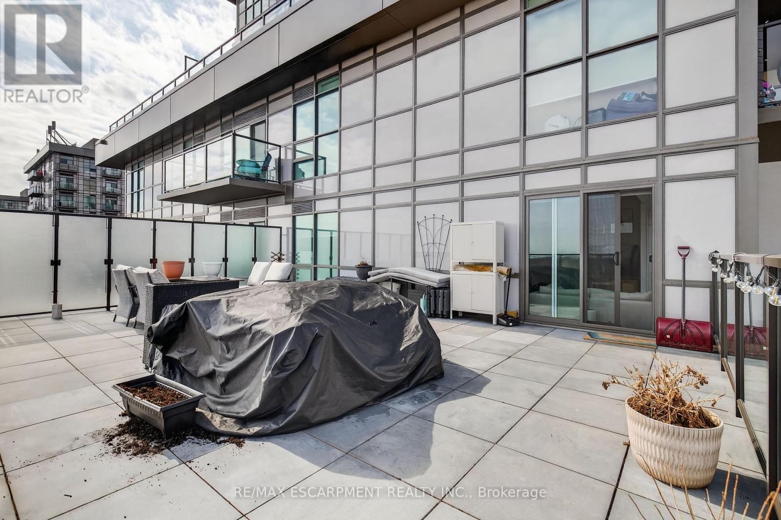 Stylish upgraded 2-bedroom, 1-bathroom condo for lease in the heart of Waterdown. This bright, carpet-free unit features an open-concept layout, a modern kitchen with quartz countertops, backsplash, and upgraded appliances, plus in-suite laundry and contemporary finishes throughout. Enjoy exceptional outdoor living with an oversized private terrace (28'11" x 20'5") plus a second balcony! Residents have access to premium amenities including rooftop terraces with BBQs, fitness centres, party rooms, and visitor parking. Ideally located close to highways, Aldershot GO Station, shopping, dining, parks, and top-rated schools. This is modern condo living at its best. (id:64974)