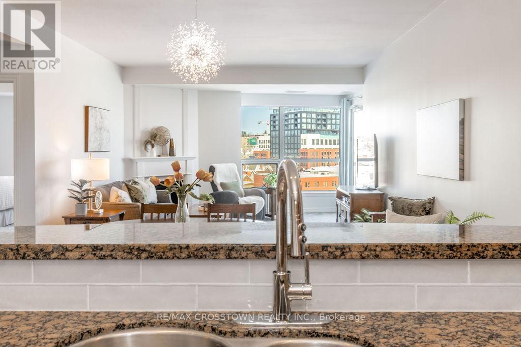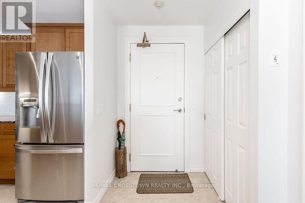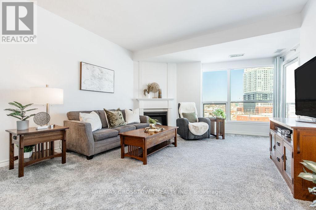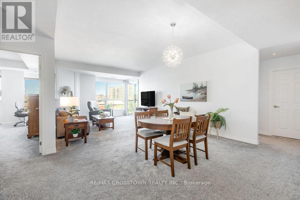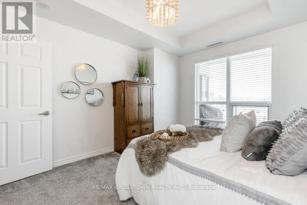 Welcome to one of Barrie's most sought-after waterfront residences, perfectly positioned across from Kempenfelt Bay and steps to the marina, Centennial Beach, scenic waterfront trails, parks, and year-round recreation. Enjoy the best of downtown living with shopping, dining, patios, and entertainment just a short stroll away, while commuters will appreciate easy access to Highway 400, the Allandale Waterfront GO Station, and public transit. This 2-bedroom, 2-bathroom 1389 SF suite with a large den offers a bright and functional layout designed for comfort and flexibility. Natural light fills the open-concept living, dining, and kitchen space, flowing seamlessly to a private balcony where bay views create the perfect backdrop for morning coffee or evening relaxation. The spacious den provides an ideal home office, reading nook, or additional living space. The primary bedroom features generous closet space and a private ensuite, while the second bedroom and full bathroom offer comfort for guests or family. In-suite laundry adds everyday convenience. Freshly updated and move in ready, 2024 upgrades include new carpet, new paint throughout the unit, new light fixtures, new faucets, new doorknobs and hinges throughout, new cabinet knobs in kitchen and in bathrooms, new towel bars, and new kitchen backsplash. Residents enjoy a full suite of premium amenities, including an indoor pool, sauna, hot tub, fitness centre, party/games room, guest suites, visitor parking, and more. Underground parking and a storage locker complete this exceptional offering. A rare opportunity to enjoy waterfront scenery, downtown energy, and resort-style living in one unforgettable setting. (id:64974)