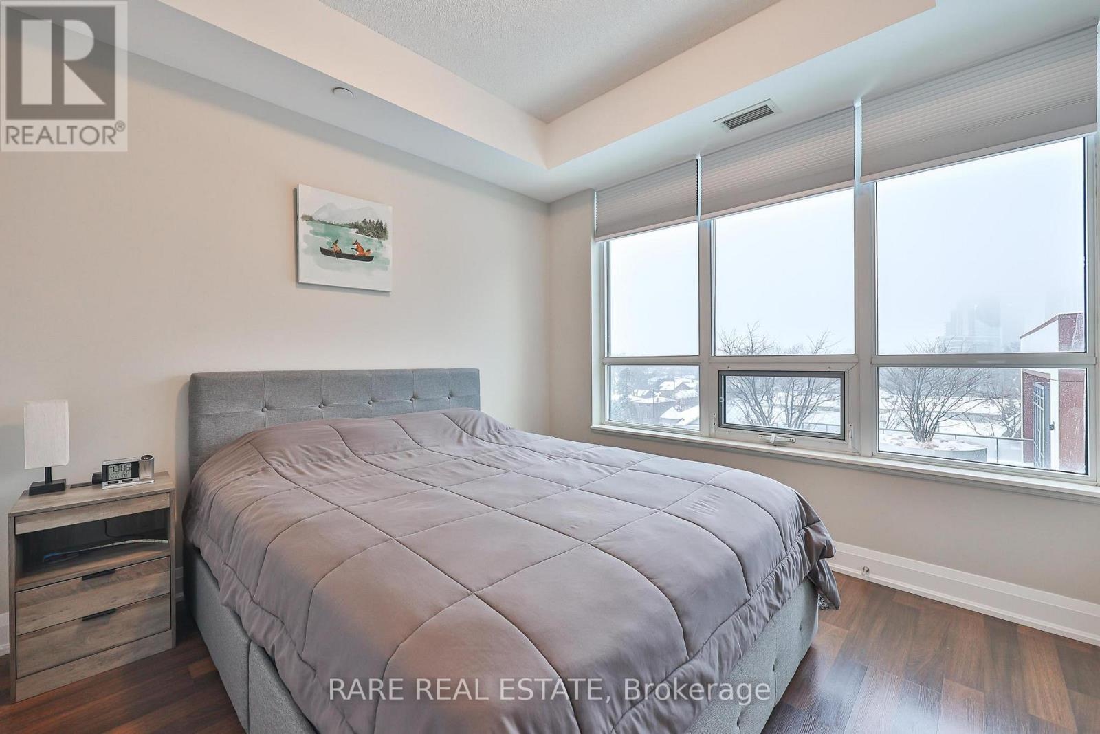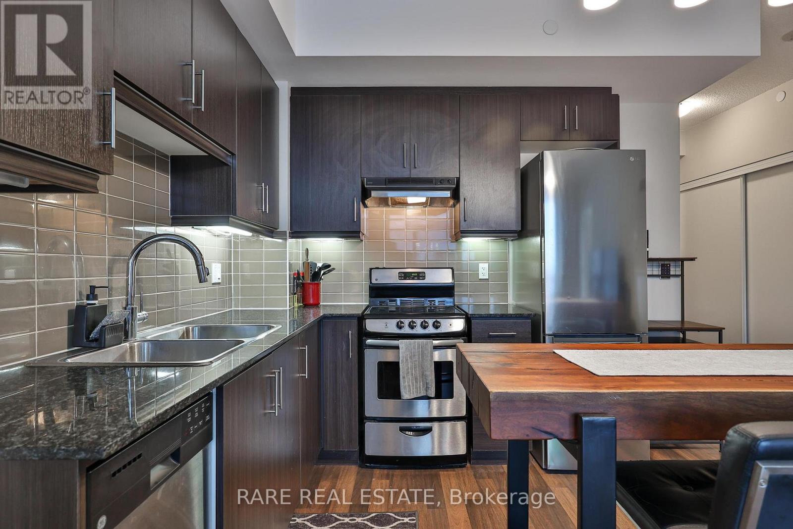 Welcome to this sun-filled one-bedroom residence in the desirable Willowdale community offering 531 square feet of thoughtfully designed living space with unobstructed views through expansive windows. The open-concept layout is enhanced by warm flooring and traditional cabinetry - a seamless flow between living and dining areas. The living area extends naturally to a private balcony overlooking the large terrace, creating an airy indoor-outdoor connection with your home and your community flooding an abundance of natural light throughout the day at Canterbury Place - tucked away in the quiet neighbourhood of busy Willowdale near highways and all the shops! The modern kitchen is both functional and stylish, featuring full-size stainless steel appliances, ample cabinetry, and a generous centre island that provides additional prep space and seating-ideal for everyday living or entertaining. The bedroom is generously sized with a comfortable layout and excellent storage, while the bathroom is finished with clean, contemporary touches. Located in a well-managed building within a vibrant neighbourhood with ample amenities, this bright and inviting home offers a perfect balance of comfort, light, and functionality for that first step into home ownership or the ideal investor. (id:64974)