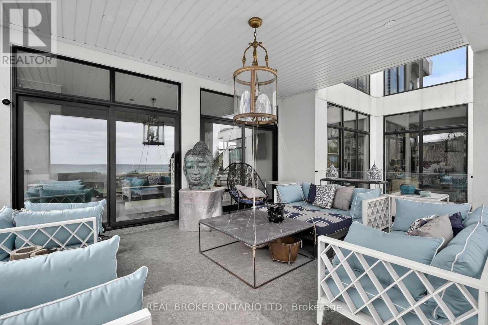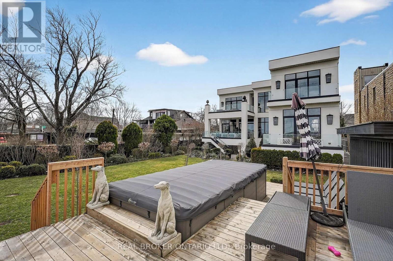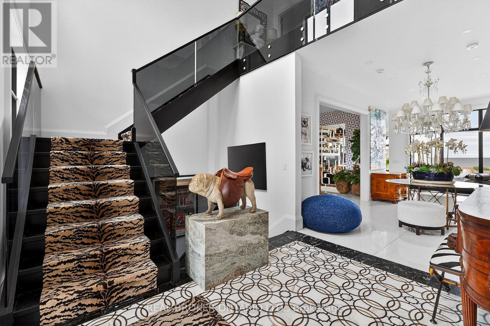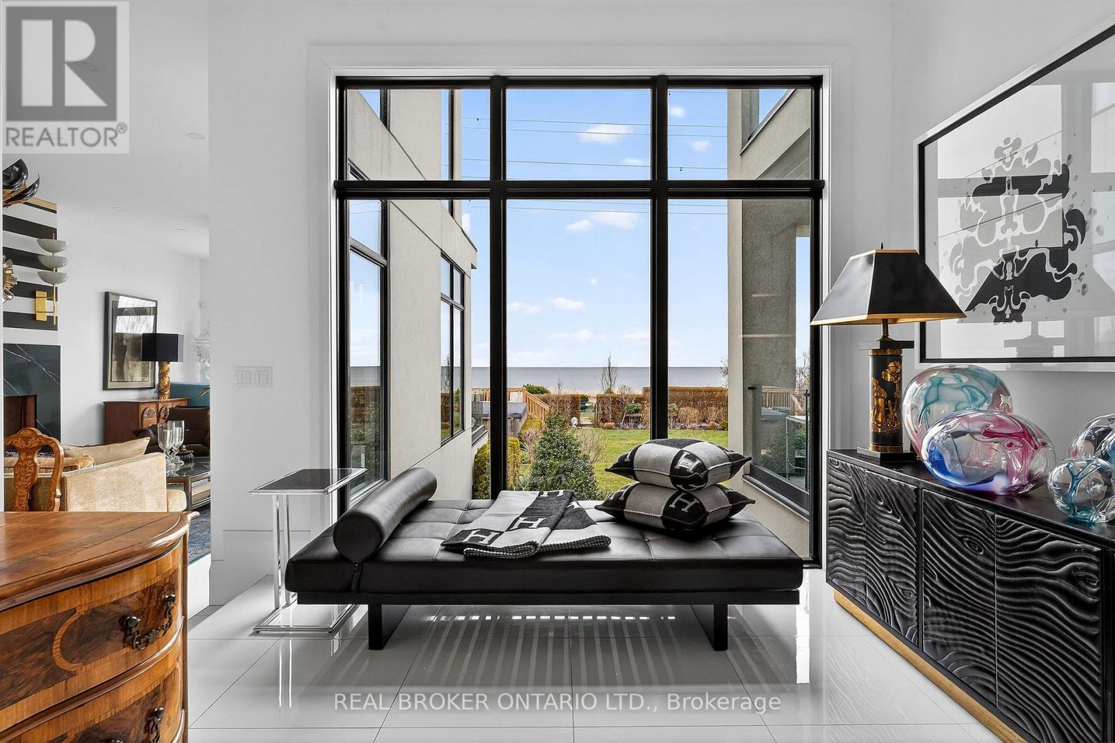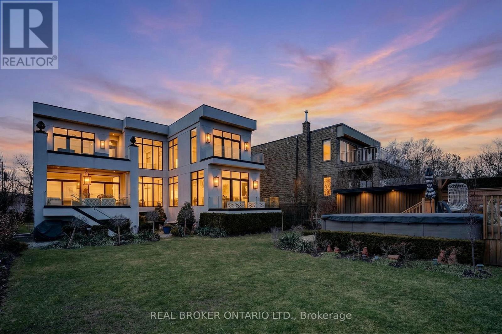 DIRECT WATERFRONT LUXURY. Experience refined lakeside living at 711 Beach Blvd, a 6,700+ sq ft custom masterpiece (2020) situated directly on the 10km Hamilton Waterfront Trail with private beach access. This 3+2 bed, 5 bath sanctuary blends architectural grit with coastal elegance.10' ceilings, bespoke millwork, and hand-cut marble inlays. The grand foyer features a showstopping chandelier of 600 gold spoons and Swarovski accents. A true Chef's kitchen boasts an 8-burner range, dual dishwashers & fridges and a dedicated coffee/bar room overlooking the lake.The primary suite offers a double-sided fireplace and a spa-style bath with a signature gold soaking tub. The lower level adds a gym, media room, and 2 extra bedrooms/offices.4 Duradek terraces, a Jacuzzi swim spa, and professional landscaping on a lot that widens to 72' at the water. Double garage with lift potential + parking for 6. A rare, high-design sanctuary on the shores of Lake Ontario. (id:64974)