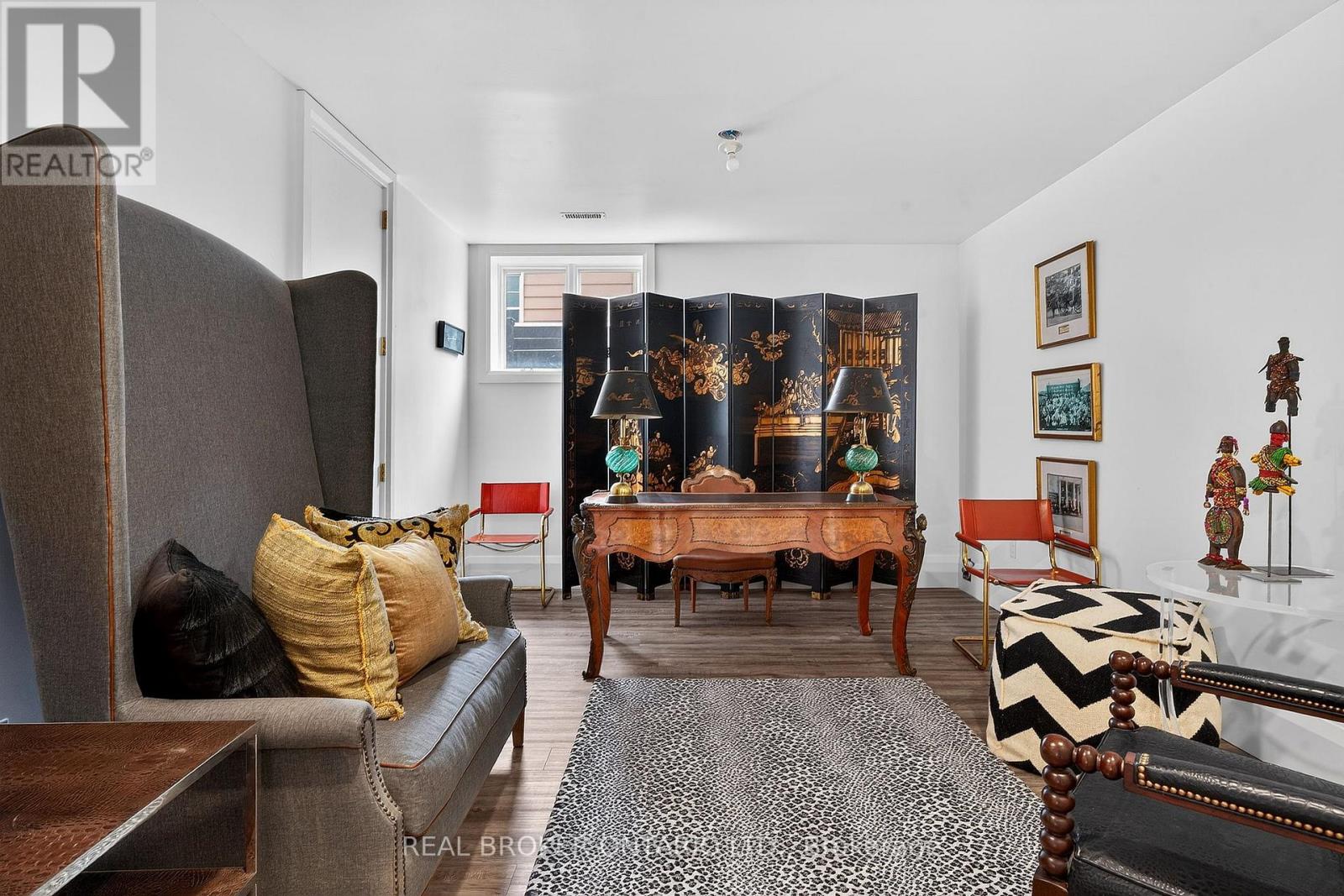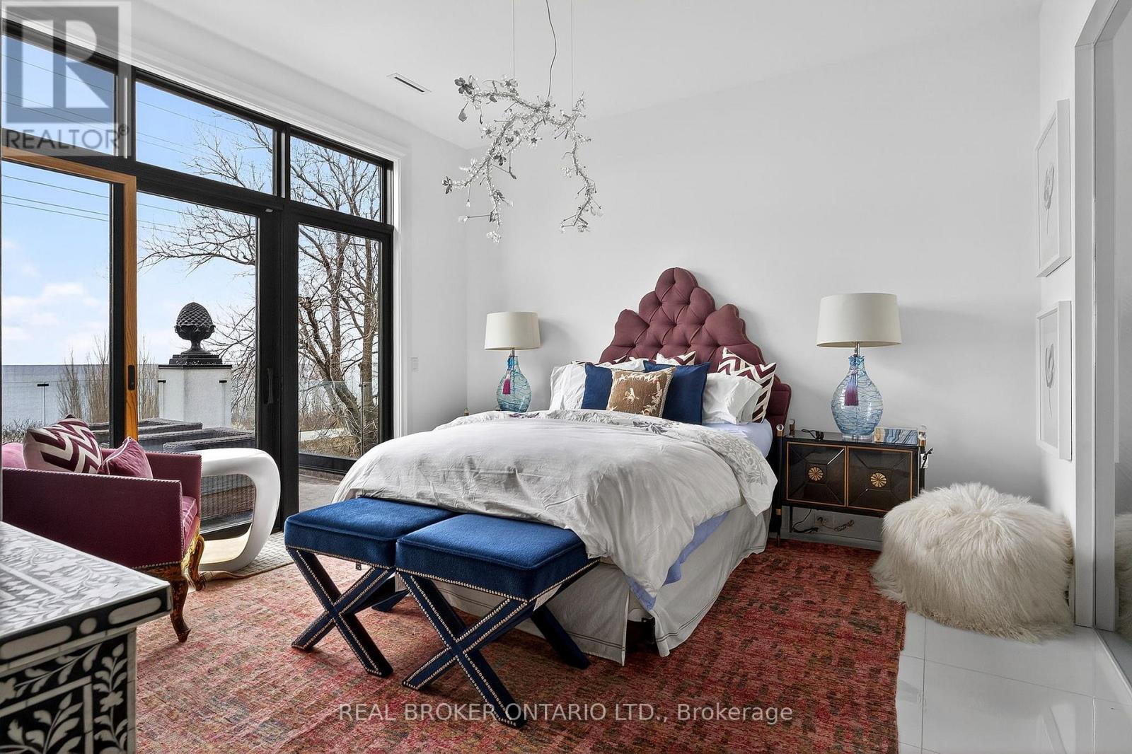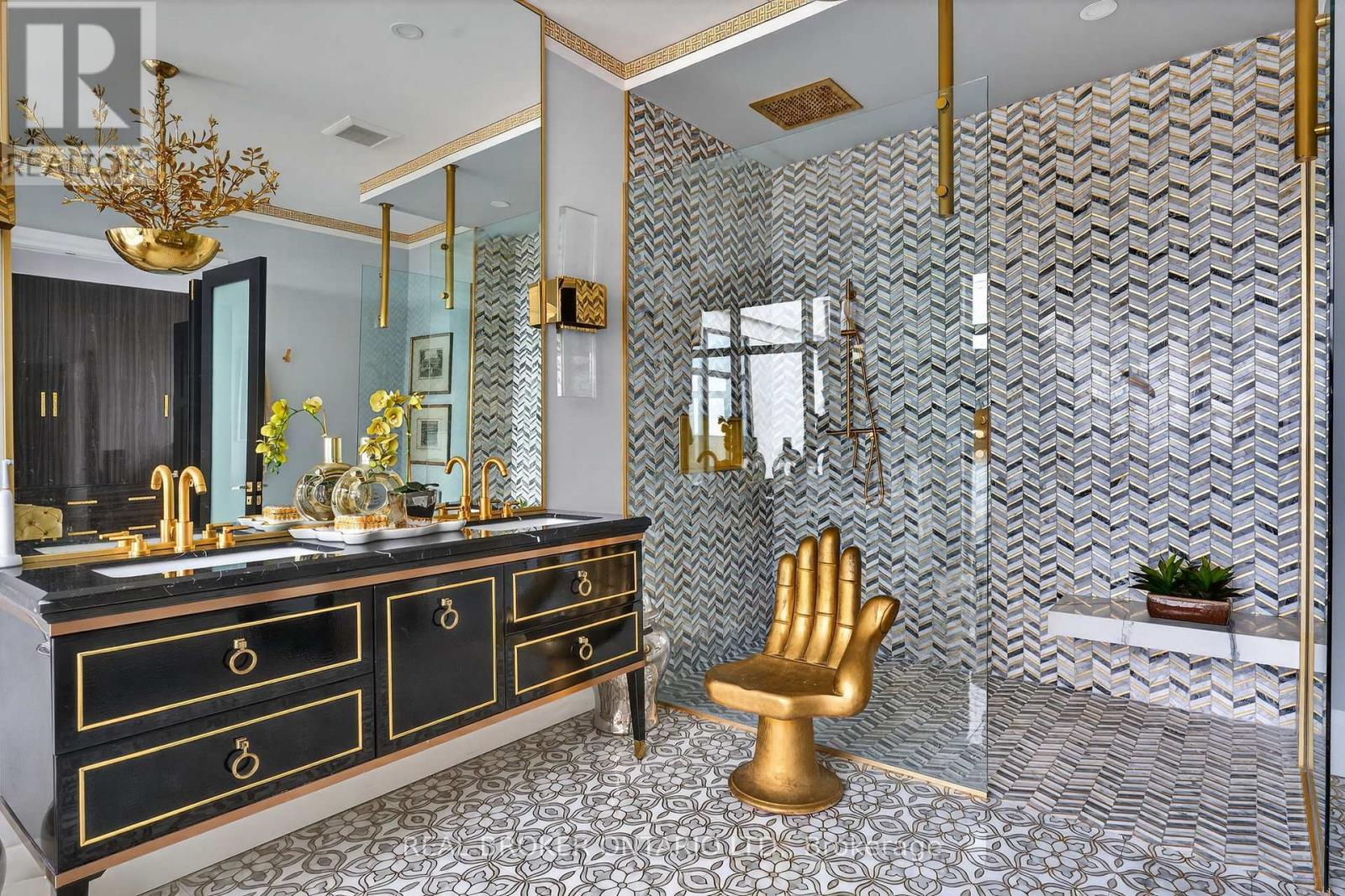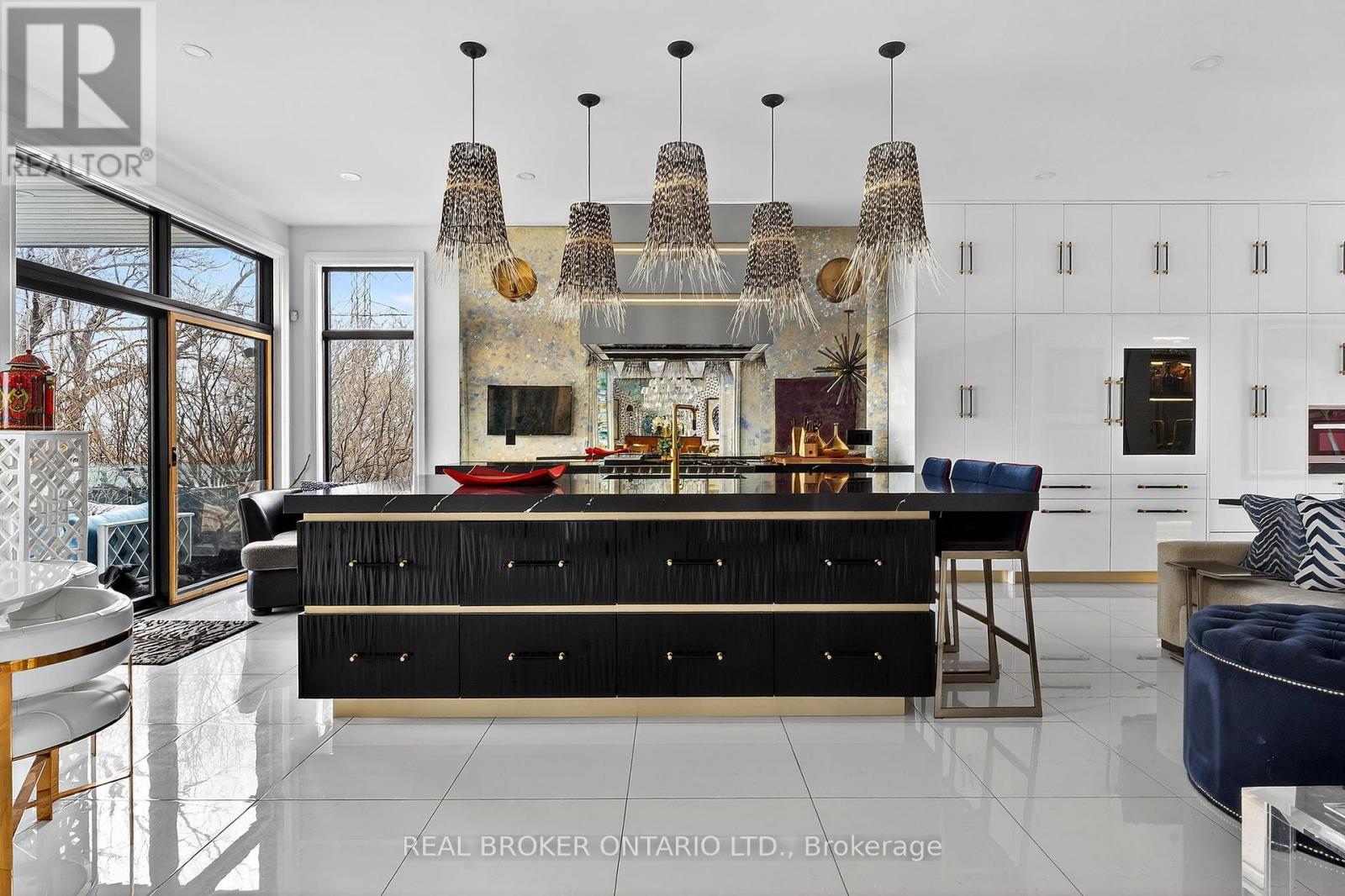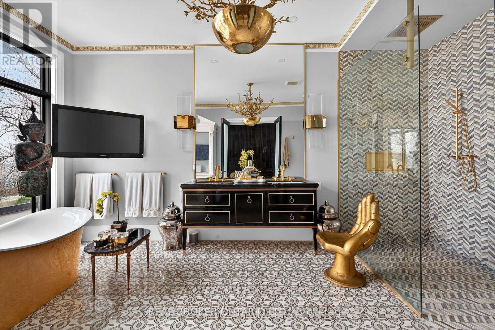 DIRECT WATERFRONT LUXURY. Experience refined lakeside living at 711 Beach Blvd, a 6,700+ sq ft custom masterpiece (2020) situated directly on the 10km Hamilton Waterfront Trail with private beach access. This 3+2 bed, 5 bath sanctuary blends architectural grit with coastal elegance.10' ceilings, bespoke millwork, and hand-cut marble inlays. The grand foyer features a showstopping chandelier of 600 gold spoons and Swarovski accents. A true Chef's kitchen boasts an 8-burner range, dual dishwashers & fridges and a dedicated coffee/bar room overlooking the lake.The primary suite offers a double-sided fireplace and a spa-style bath with a signature gold soaking tub. The lower level adds a gym, media room, and 2 extra bedrooms/offices.4 Duradek terraces, a Jacuzzi swim spa, and professional landscaping on a lot that widens to 72' at the water. Double garage with lift potential + parking for 6. A rare, high-design sanctuary on the shores of Lake Ontario. (id:64974)