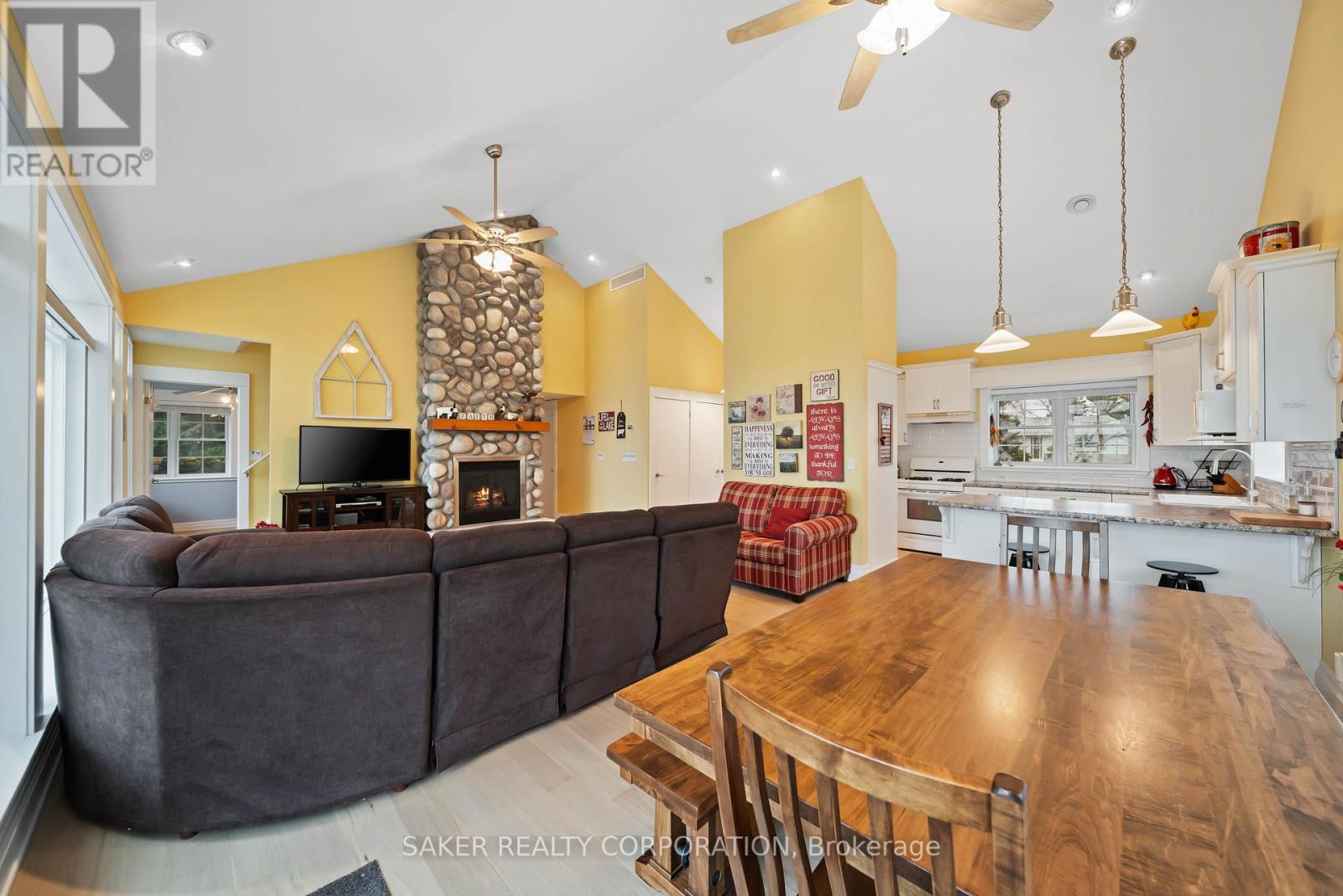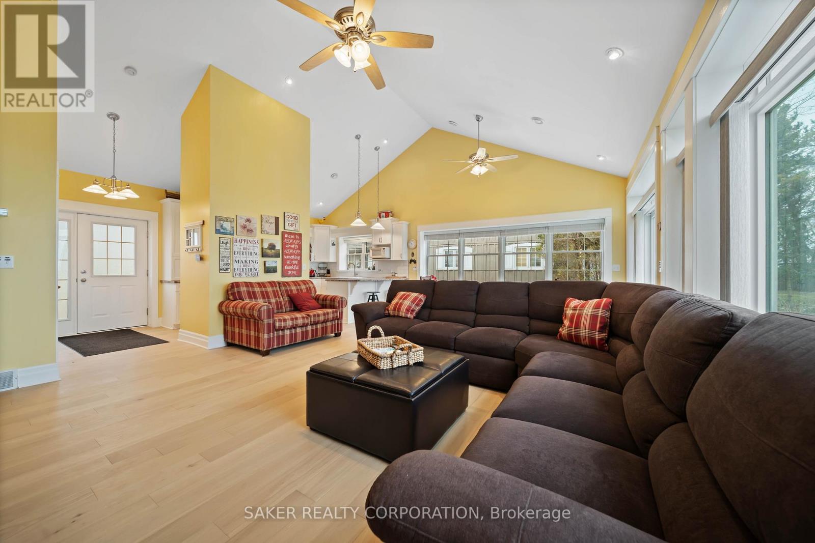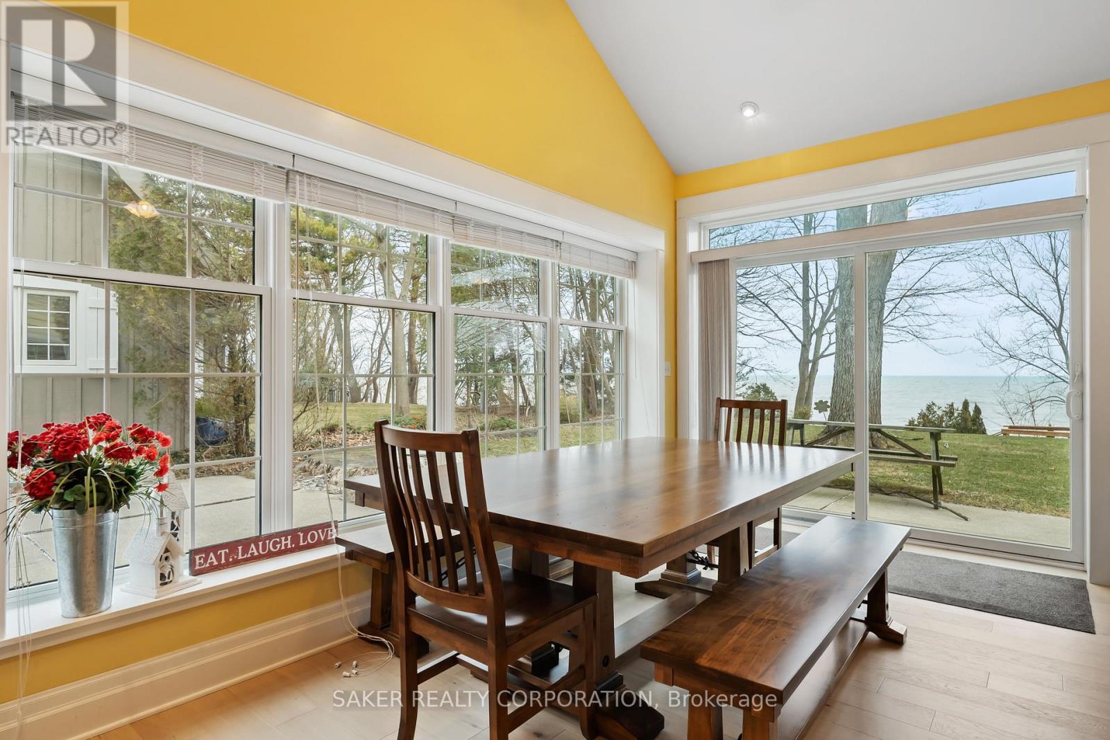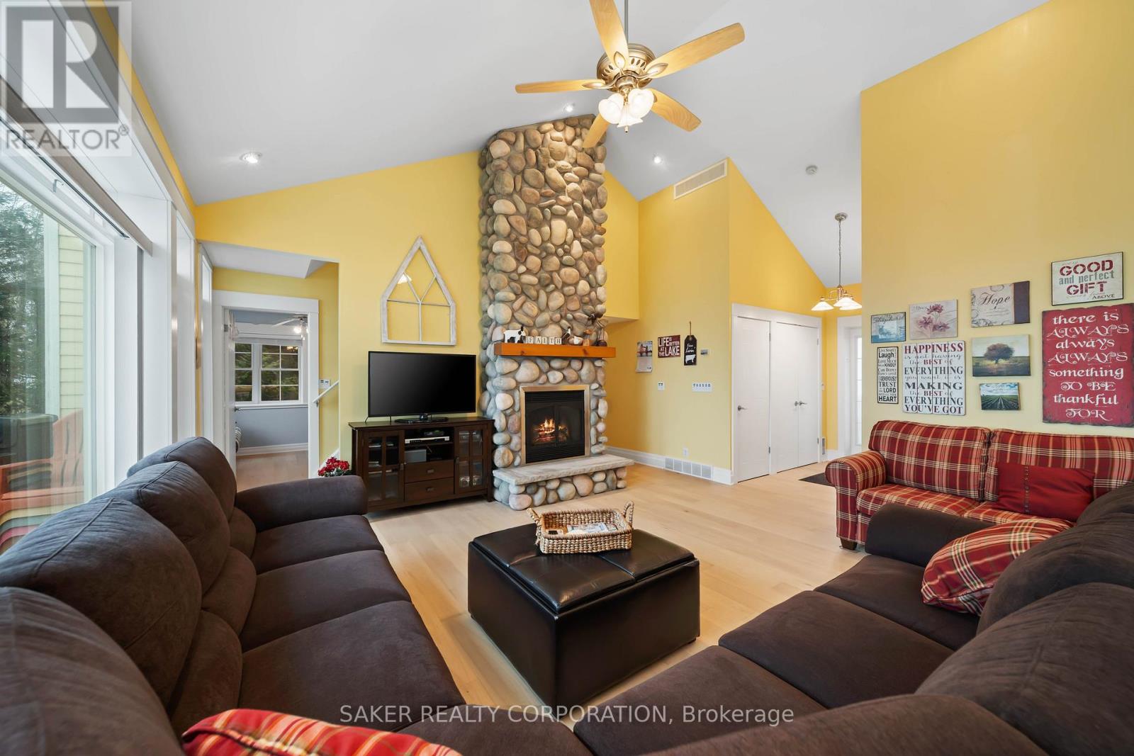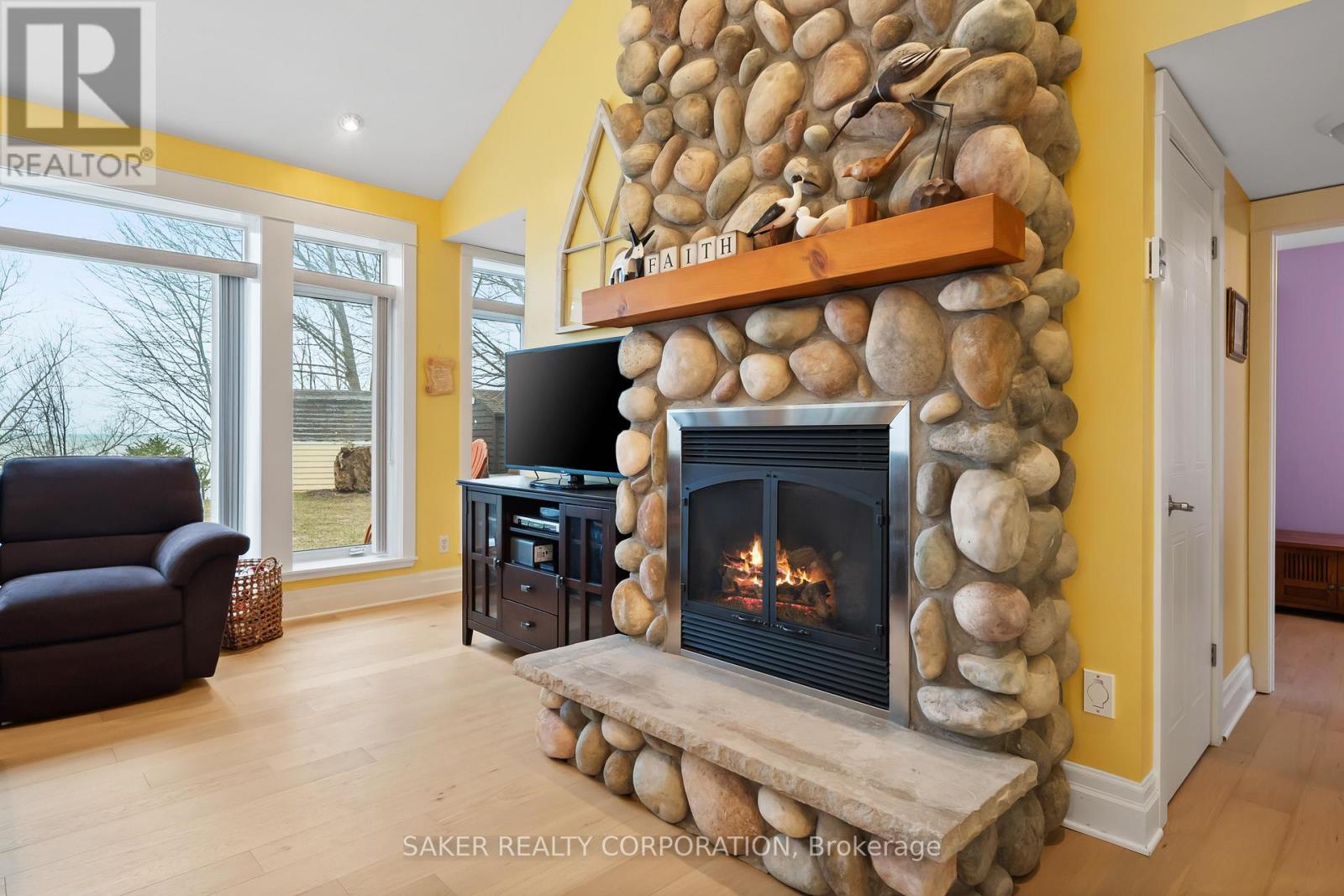 LAKE FRONT Experience with one of the most beautiful beaches on Lake Huron, where silky smooth sand meets shallow, Caribbean-blue waters and just a few steps down the newly reconstructed staircase, 5 minute drive to Grand Bend and is located in the Highland 3 subdivision. This property is protected by a seawall and offers unparalleled views both from the hilltop and the home itself, designed to capture ever-changing scenery and breathtaking sunsets. The private yard is shaded by mature trees, while a pressure-treated staircase leads down to a wide, sandy beach with ample space for kayaks, Seadoos, and more. Inside, the 3-bedroom home features an open-concept layout with floor-to-ceiling windows, all new wide plank Harwood flooring throughout (2026), a striking gas fieldstone fireplace, and unobstructed lake vistas. The master suite occupies its own private second-floor retreat with a luxurious ensuite and sweeping views. Additional highlights include a new roof (2024), generous parking for up to eight vehicles on a concrete laneway, and potential for a double-car garage. perfect for lakeside living at its finest. (id:64974)