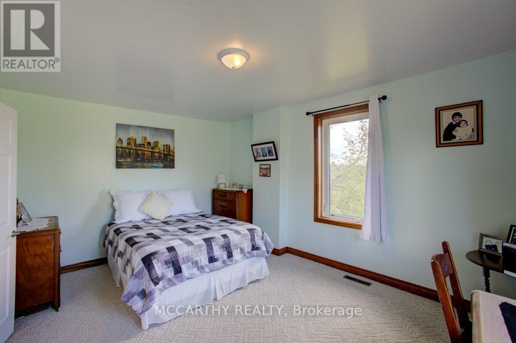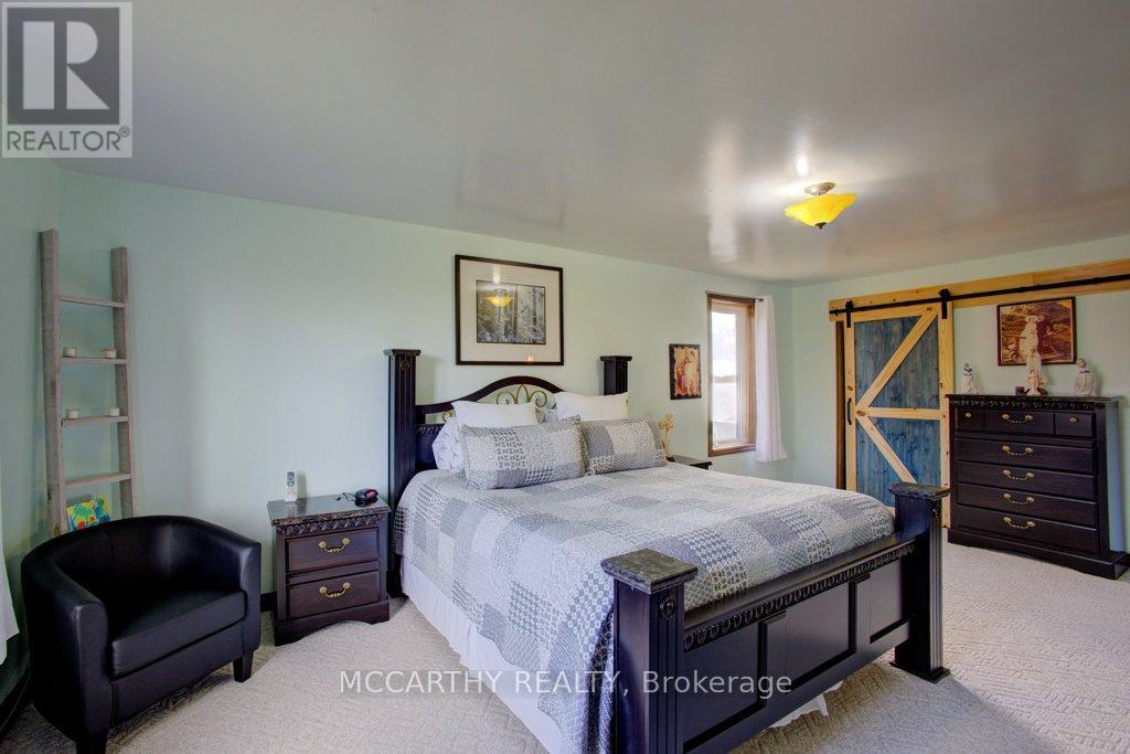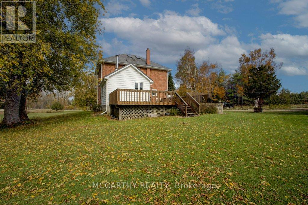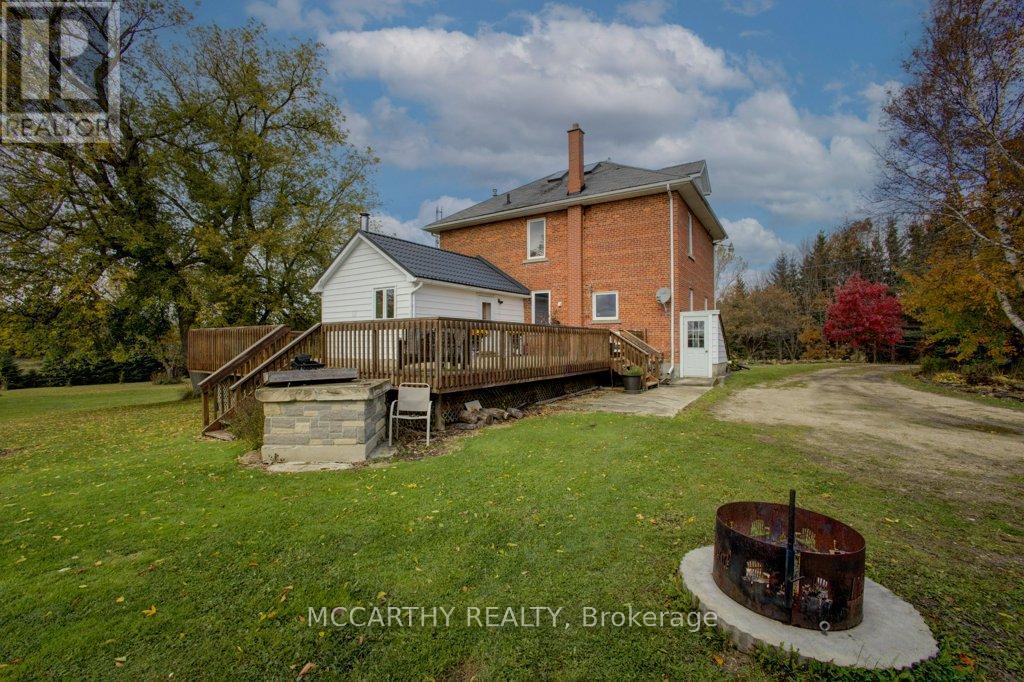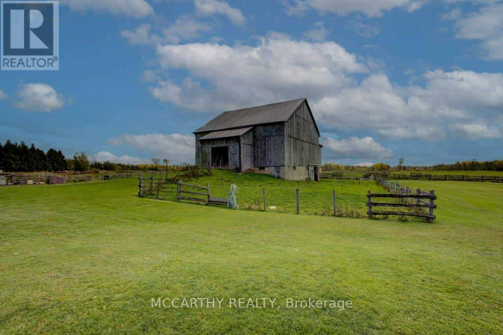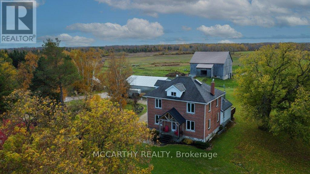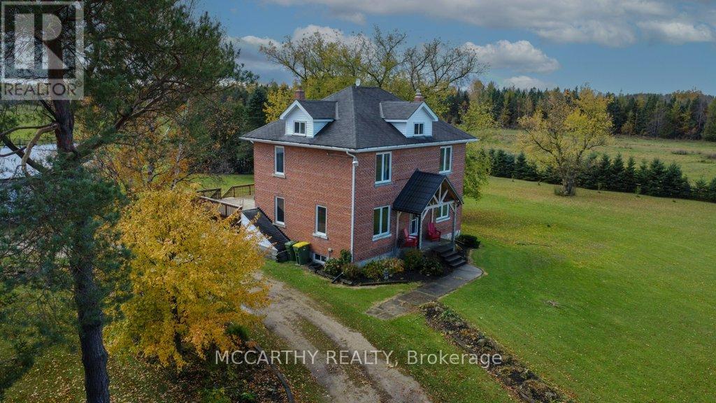 133 acre Farm with beautiful Brick well Maintained 2.5 storey House, Good Bank Barn and large Driving Shed with workshop. Barn is 52 x 60ft, with 30x 36ft add on, Driving Shed 40 x 44 ft with gravel floor and 30 x 40 ft Workshop with concrete floor and insulated and heated. 80 Acres in hay and pasture. Fenced for cattle. Bank barn is set up for Cattle, feeding trough down the middle of the barn. Enter the home off a large wrap around deck. Plenty of room to entertain. Walk into the Family room with tile floor, large windows and cozy wood stove. Has hook up for laundry if desire to have main floor laundry. Relax in the large Living room with Stone hearth with wood mantel over a wood fire place. Plenty of room for your oversized couch and chairs. Formal Dining room, has high ceilings and room for table for 14. Tall windows bring in the natural Light. Kitchen has updated countertops, farmhouse sink with window overlooking the expansive deck. Plenty of room for Family dinners and entertaining. Pretty 2.5 story House has Large Primary Bedroom on second Floor, with 9ft high ceilings, broadloom, His and Hers closets with pretty barn door style doors. Second Bedroom is large with lots of natural light from 2 large windows. Windows are updated. 3rd floor is a finished attic, with stairs for easy access, has three skylights for natural lighting . Wood floors and is heated. Use for 3rd extra bedroom, rec room , play room, office, craft, quilt room, Man cave or storage. This farm is waiting for its next family to enjoy the peaceful location. Pond and beautiful gardens. Pretty lawns for running and playing. Property is conveniently located beside an unopened road allowance and goes all the way back to have a frontage on another municipal road. So many opportunities for a Farmer, Hobby Farm, country Homestead. Farming or recreation this is a pretty Farm with easy commute to Ski hills Come and see this beautiful property It is a must see! (id:64974)
