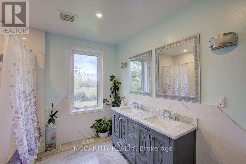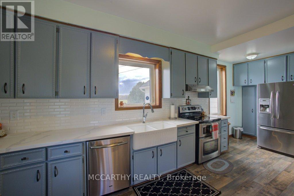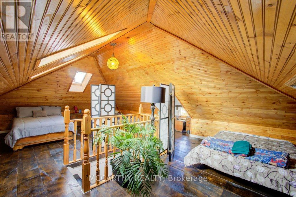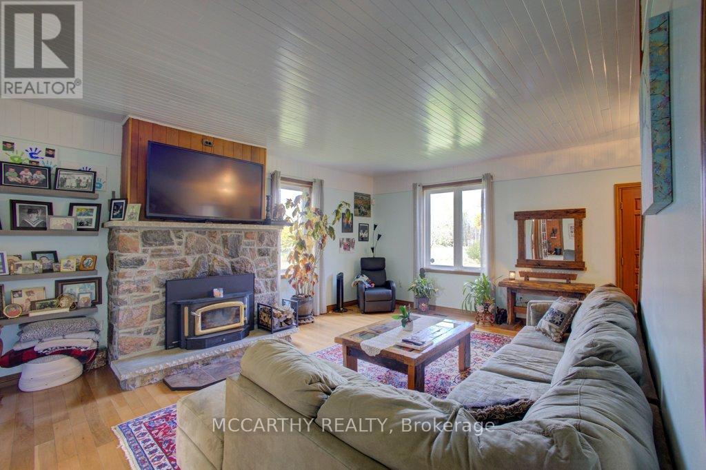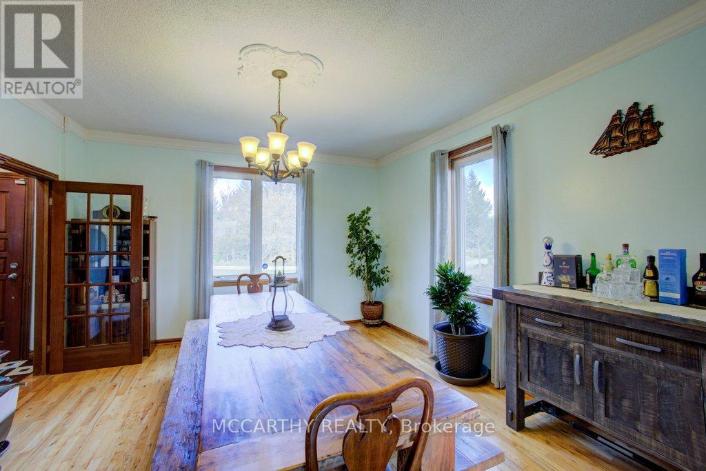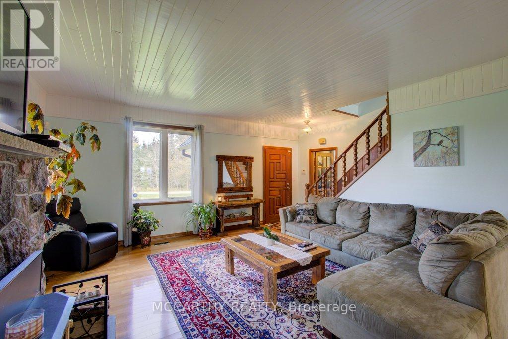 133 acre Farm with beautiful Brick well Maintained 2.5 storey House, Good Bank Barn and large Driving Shed with workshop. Barn is 52 x 60ft, with 30x 36ft add on, Driving Shed 40 x 44 ft with gravel floor and 30 x 40 ft Workshop with concrete floor and insulated and heated. 80 Acres in hay and pasture. Fenced for cattle. Bank barn is set up for Cattle, feeding trough down the middle of the barn. Enter the home off a large wrap around deck. Plenty of room to entertain. Walk into the Family room with tile floor, large windows and cozy wood stove. Has hook up for laundry if desire to have main floor laundry. Relax in the large Living room with Stone hearth with wood mantel over a wood fire place. Plenty of room for your oversized couch and chairs. Formal Dining room, has high ceilings and room for table for 14. Tall windows bring in the natural Light. Kitchen has updated countertops, farmhouse sink with window overlooking the expansive deck. Plenty of room for Family dinners and entertaining. Pretty 2.5 story House has Large Primary Bedroom on second Floor, with 9ft high ceilings, broadloom, His and Hers closets with pretty barn door style doors. Second Bedroom is large with lots of natural light from 2 large windows. Windows are updated. 3rd floor is a finished attic, with stairs for easy access, has three skylights for natural lighting . Wood floors and is heated. Use for 3rd extra bedroom, rec room , play room, office, craft, quilt room, Man cave or storage. This farm is waiting for its next family to enjoy the peaceful location. Pond and beautiful gardens. Pretty lawns for running and playing. Property is conveniently located beside an unopened road allowance and goes all the way back to have a frontage on another municipal road. So many opportunities for a Farmer, Hobby Farm, country Homestead. Farming or recreation this is a pretty Farm with easy commute to Ski hills Come and see this beautiful property It is a must see! (id:64974)