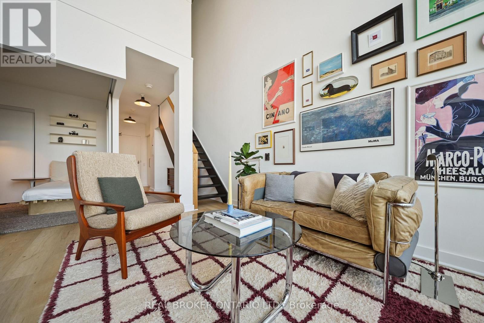 Rare, 2-storey 2 bedroom 775 sf loft with 1 parking at the prized Liberty Market Lofts. Curated wood design accents throughout the unit add warmth and zen feel - this property has the aesthetic appeal of what a loft should be. It's located on the quieter, less dense side of Liberty Village and it features floor-to-ceiling windows that let in abundant natural light and showcase beautiful sunsets over top of the protected heritage-designated buildings surrounding it. An excellent use of space greets you at the door with custom fit hallway closets with a thoughtful setback to widen the entryway. An updated bathroom (tiles, mirror, lights, toilet) sits on the right and is followed by ample space under the stairs for storage or a perfect spot for a work desk. The open concept kitchen features an updated subway tile backsplash, built-in dishwasher and granite countertops. A recessed 2nd bedroom gives room to relax listening to the record player. Upstairs primary bedroom allows for genuine separation, ideal for couples or anyone wanting a comfortable live-work setup, while still preserving a sense of openness and view. The generous walk-in closet, 2nd floor laundry (w/ new Whirlpool stacked washer/dryer) and updated bathroom (tiles, walls and toilet) complete the upstairs space. The building is exceptionally well-managed and has outstanding maintenance fees. Amenities include: 24 hour concierge, well-equipped gym, yoga studio and even a hard to find half basketball court. There are multiple executive meeting rooms, business centre, tool/utility room, lounge with a kitchen, wet bar and pool table. There is even an art gallery with rotating art installations. A 4900 sq. m. park is being built beside the building that this unit will overlook and cafes, multiple grocery stores, pubs, professional services are all walkable. GO train (Exhibition) and the future Ontario line is 200 metres away and BMO field is right there too. Enjoy the World Cup this summer from your doorstep! (id:64974)