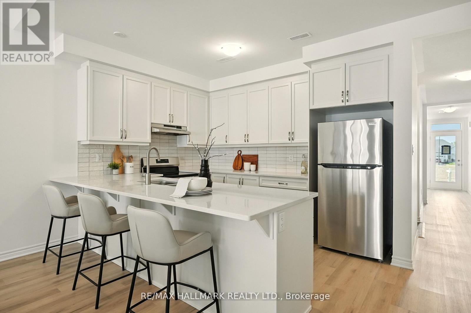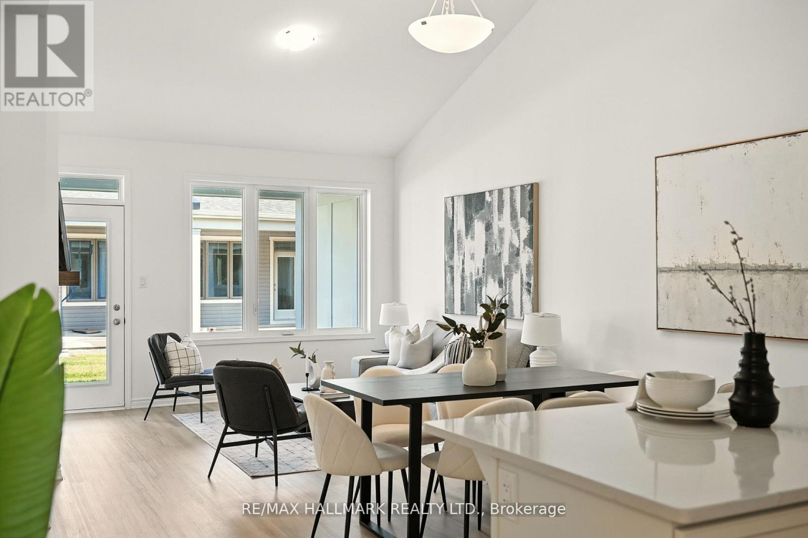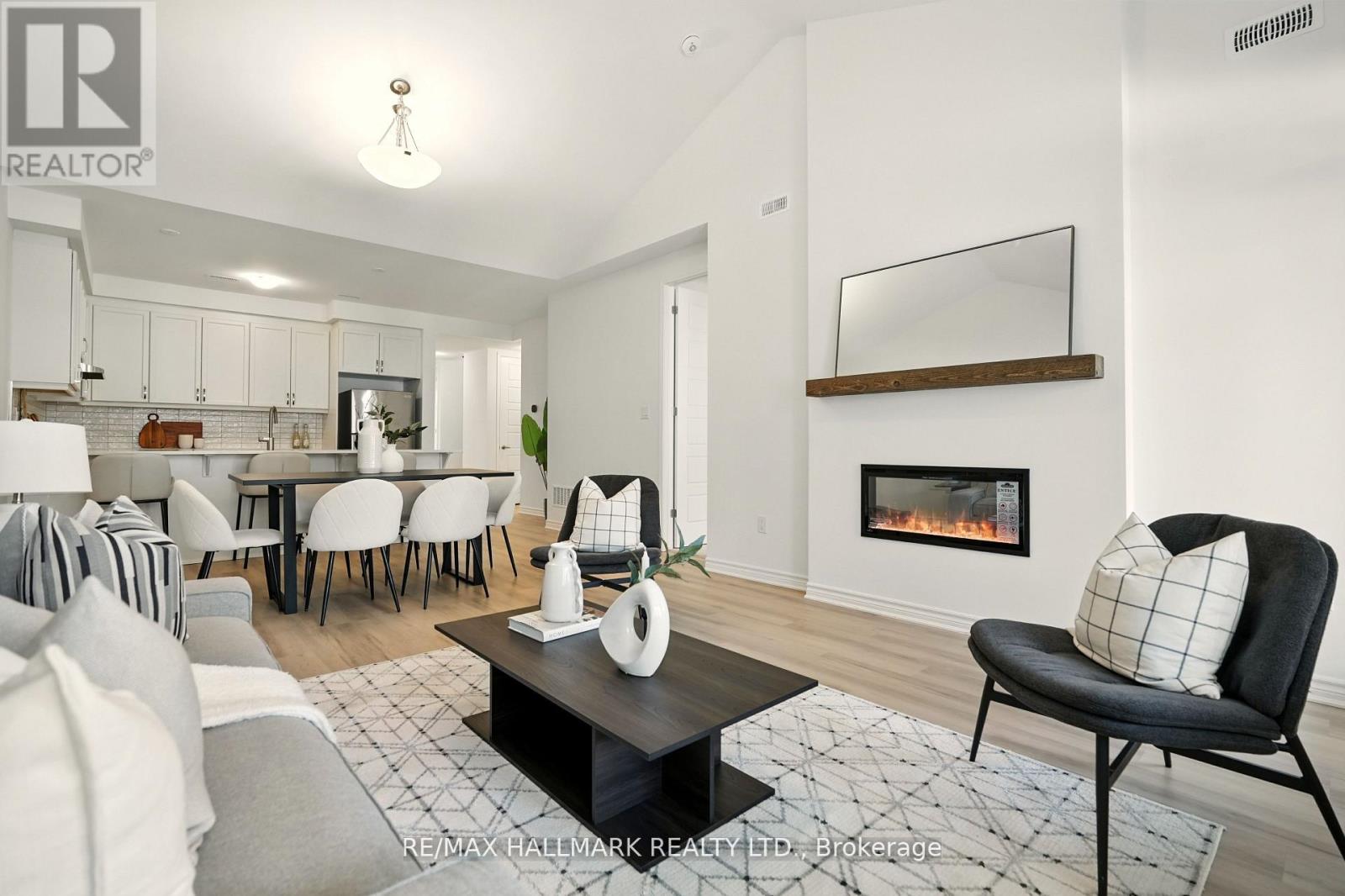 BRAND-NEW BUNGALOFT WITH LUXURY FINISHES. Welcome to this stunning, brand-new, never-lived-in land lease bungaloft townhome, offering a rare combination of modern design, energy efficiency, and move-in-ready convenience! Nestled in a vibrant all-ages community, this land lease home is an incredible opportunity for first-time buyers and downsizers alike. Step inside to find soaring vaulted ceilings and an open-concept main floor designed for effortless living. The kitchen is a true showstopper, featuring quartz countertops, stainless steel appliances, an oversized breakfast bar, a tile backsplash, a built-in microwave cubby, and full-height cabinetry that extends to the bulkhead for maximum storage. The inviting living room boasts a cozy electric fireplace and a walkout to a private covered back patio, perfect for relaxing or entertaining. The main floor primary bedroom offers a 4-piece ensuite with a quartz-topped vanity plus a walk-in closet. A second main floor bedroom is conveniently served by its own 4-piece bathroom. Enjoy the convenience of in-floor heating throughout, main-floor in-suite laundry, and a garage with inside entry to a mudroom complete with a built-in coat closet. Upstairs, a spacious bonus family room/loft offers endless possibilities as a second living space, home office, or guest room, along with an added second-floor powder room for extra convenience. Smart home features include an Ecobee thermostat, and comfort is guaranteed with central air conditioning and Energy Star certification. Eligible First Time Home Buyers may be able to receive up to an additional 13% savings on the purchase of this home through the proposed Government FTHB Rebate Program. (id:64974)