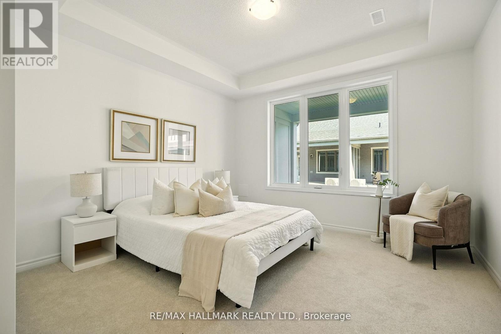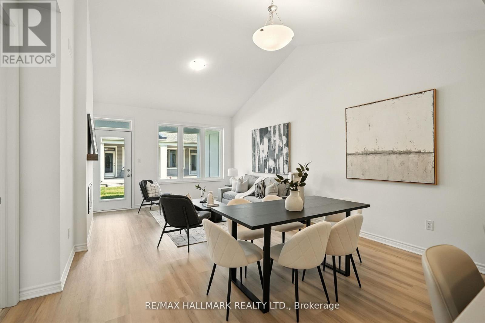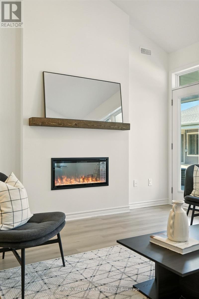 BRAND-NEW BUNGALOFT WITH LUXURY FINISHES. Welcome to this stunning, brand-new, never-lived-in land lease bungaloft townhome, offering a rare combination of modern design, energy efficiency, and move-in-ready convenience! Nestled in a vibrant all-ages community, this land lease home is an incredible opportunity for first-time buyers and downsizers alike. Step inside to find soaring vaulted ceilings and an open-concept main floor designed for effortless living. The kitchen is a true showstopper, featuring quartz countertops, stainless steel appliances, an oversized breakfast bar, a tile backsplash, a built-in microwave cubby, and full-height cabinetry that extends to the bulkhead for maximum storage. The inviting living room boasts a cozy electric fireplace and a walkout to a private covered back patio, perfect for relaxing or entertaining. The main floor primary bedroom offers a 4-piece ensuite with a quartz-topped vanity plus a walk-in closet. A second main floor bedroom is conveniently served by its own 4-piece bathroom. Enjoy the convenience of in-floor heating throughout, main-floor in-suite laundry, and a garage with inside entry to a mudroom complete with a built-in coat closet. Upstairs, a spacious bonus family room/loft offers endless possibilities as a second living space, home office, or guest room, along with an added second-floor powder room for extra convenience. Smart home features include an Ecobee thermostat, and comfort is guaranteed with central air conditioning and Energy Star certification. Eligible First Time Home Buyers may be able to receive up to an additional 13% savings on the purchase of this home through the proposed Government FTHB Rebate Program. (id:64974)