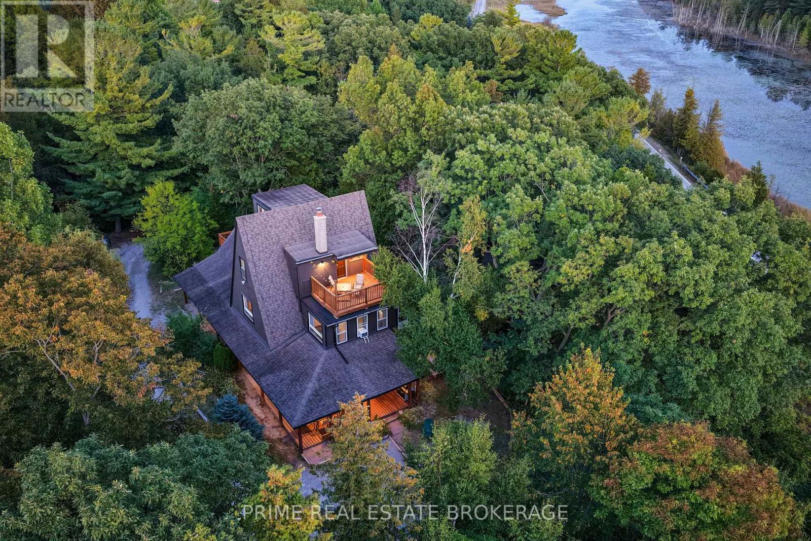 A rare A-frame retreat perched on the highest point in Port Franks this enchanting property offers space, privacy, and stunning natural surroundings. With 6 bedrooms and 3 bathrooms spread across four levels, this one-of-a-kind property is ideal for families or multi-generational living near Lake Hurons sandy shores. The main floor is designed for both comfort and entertaining, featuring a spacious living room with a wood-burning fireplace, a bright dining area framed by large windows, a full kitchen, a bedroom and a games room. The second floor includes three inviting bedrooms, a versatile office nook, and walkout access to a private rooftop deck with treetop views. The third floor provides two cozy bedrooms tucked under the A-frame roofline, creating a playful retreat for children or guests. At the very top, the Outlook Room delivers breathtaking views of Lake Huron sunsets - an inspiring space for yoga, reading, or relaxation. Outdoors, the property offers ample parking, direct access to nearby trails, and a peaceful wooded setting just a short walk to the lake. Combining the charm of a cottage with the function of a spacious family property, this property presents a rare opportunity in one of Southwestern Ontarios most desirable beachside communities. (id:64974)
