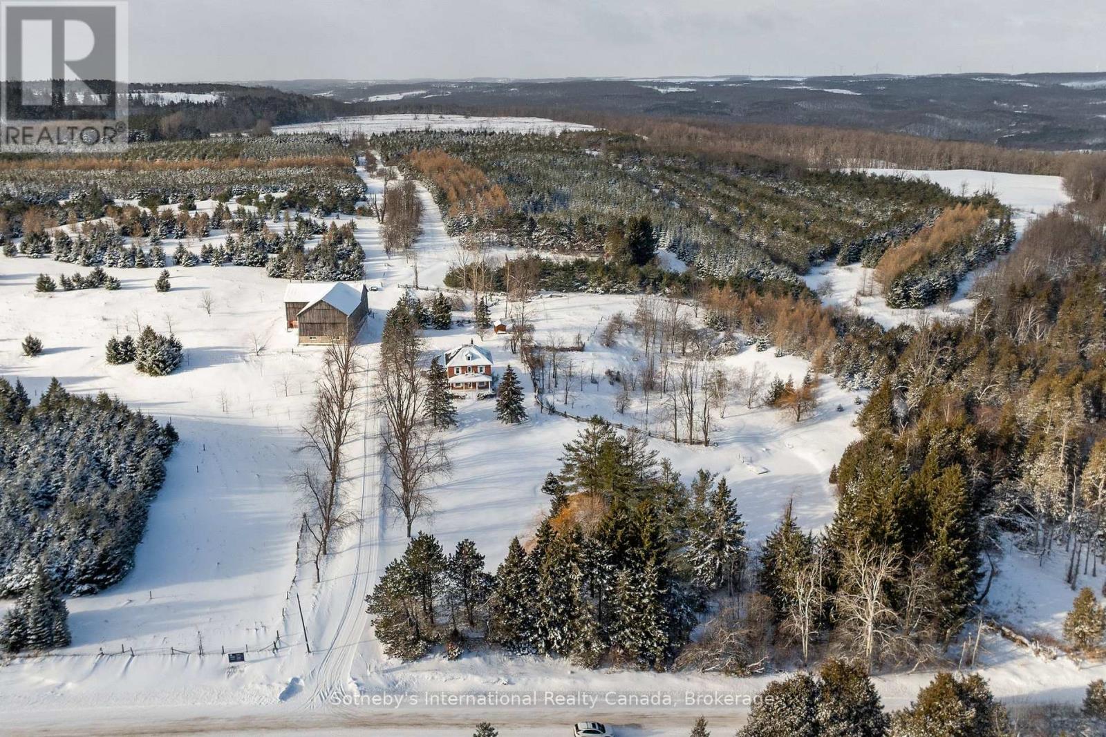Escape to the rolling hills of Mulmur and discover this beautifully preserved three-storey brick farmhouse set on 88 acres of pristine countryside and wonderful private walking trails through pastures and forests. Rich in character and lovingly maintained, the home exudes warmth and timeless charm offering a rare opportunity to embrace the very best of country living. Enter through the welcoming front veranda or opt for the side foyer with direct access from the driveway. The main floor is filled with natural light and features a spacious living room with original wood trim and a cozy wood-burning fireplace, a formal dining room with hardwood floors and tranquil pond views, and an upgraded kitchen with stainless steel appliances. A powder room, full four-piece bath, and laundry room add comfort and convenience. Upstairs, four bright bedrooms share another four-piece bath. The third floor unveils a sunlit open loft with cathedral ceiling, its own bathroom, and endless versatility ideal as a fifth bedroom, home office, art studio, or serene yoga retreat. The natural surroundings are truly exceptional, with sweeping vistas, a spring-fed pond ideal for swimming, and private trails winding through mature forests. Approximately 50,000 trees have been thoughtfully planted, enhancing the property's privacy and year-round appeal. Outdoor highlights include a large classic bank barn, tennis court, and ample open space for recreation or relaxation. A long driveway leads to a circular drive with parking for 15+ vehicles perfect for hosting gatherings. Tucked away on a quiet country road with breathtaking views and unmatched seclusion, this exceptional property is just minutes from Mansfield Ski Club, Mono Cliffs Provincial Park, the Bruce Trail, 20 minutes to Mad River Golf, Devil's Glen ski and the charming village of Creemore. (id:64974)