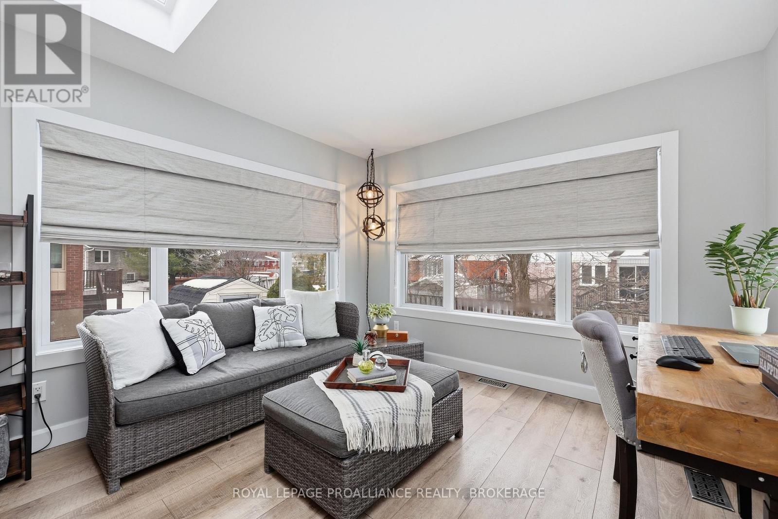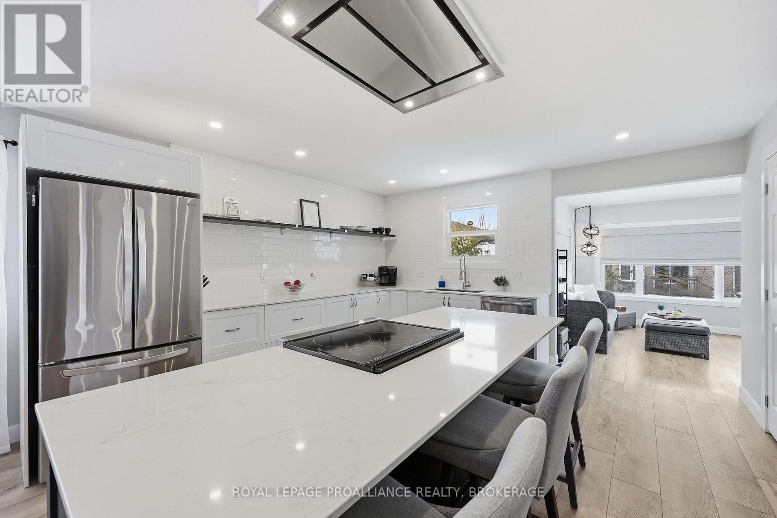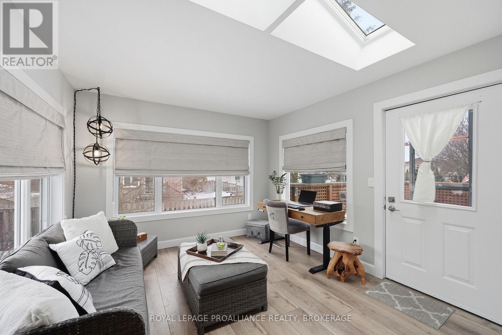 A rare find in centrally located waterloo village! 719 Muirfield Crescent is a 1,600 sqft raised bungalow that was fully renovated in 2021 - a complete redesign finished to an exceptional standard. From top to bottom, nearly everything has been updated, creating a home that feels both beautifully modern and incredibly welcoming. The main floor has been opened up to create a bright, flowing layout that connects the living room, dining area and kitchen into one airy and inviting space. At the centre of it all is the custom kitchen, featuring quartz countertops, a tile backsplash and a large island, perfectly positioned between the light-filled living and dining areas and the four-season sunroom - a space you'll find yourself gravitating toward year-round. Every detail has been thoughtfully considered, from updated flooring and pot lighting to the fully renovated bathrooms and quality finished throughout. The main level offers three spacious bedrooms and two fully updated bathrooms, including a beautifully primary ensuite connected to a walk-in closet. The lower level continues the quality and thoughtful design found throughout the home. Thanks to the raised bungalow layout, it's bright and welcoming with oversized windows that bring in plenty of natural light. The fully renovated space includes a large family room, a fourth bedroom and a third full bathroom - ideal for teenagers, guests, extended family or a comfortable work-from-home setup. Other important updates include a furnace and central A/C installed in 2022 and roof shingles replaced 2018. The home also features an attached two-car garage with convenient inside entry. Set on one of the quietest streets in the neighbourhood, the location is just as appealing as the home itself. You're just minutes from Farm Boy, Starbucks, Planet Fitness, Costco, parks, schools and everyday amenities. Completely renovated. Move-in ready and truly one of a kind. Put this stunner on your must-see list. (id:64974)