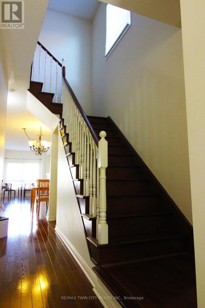 This freshly painted end unit is set among executive townhomes, surrounded by walking trails leading to Victoria Park. Stylish brick and wood exterior, interior finished in contemporary decor, and attached garage are just some features to mention. The elegant entrance leads to the main floor comprised of a gourmet eat-in kitchen with top of the line stainless appliances, overlooking the spacious dining room and living room - the perfect place to unwind and relax! Head up the hardwood staircase to the upper level featuring large master bedroom with walk-in closet and & it's own private bathroom. Two more bedrooms and 4pc bathroom for guests and family. You'll find a generous recreation room in the unspoiled lower level. Additional features of the home are hardwood floors, upgraded kitchen and top of the line finishes throughout. Perfectly located close to schools, highways, shopping, trails and St. Mary's hospital. (id:64974)