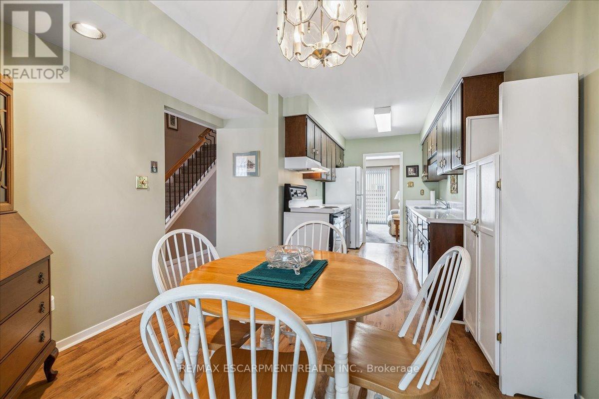 Opportunity calls to own this condo townhouse in Central Park Village one of Burlington's most convenient and sought-after pockets. Perfectly positioned in a great South-Central location, this home places you moments from Burlington Mall, Roseland Plaza, and just a short drive to Spencer Smith Park and the vibrant downtown waterfront of Spencer Smith Park. Public transit is right at the corner, making commuting effortless. The spacious eat-in kitchen features abundant cabinetry. Sun filled family room walks out to a newly fenced private yard - perfect for morning coffee or summer BBQs. Upstairs, you'll find three generous bedrooms, including an oversized primary suite. The lower level adds even more versatility with a cozy family room - great as a kids' zone, hobby space, or media room. From here, enjoy direct walk-out access to the underground parking garage, where two parking spaces sit right at your basement door. Just steps from your backyard, residents can enjoy a refreshing inground pool. This is truly a can't-miss location offering comfort, convenience, and exceptional value. (id:64974)