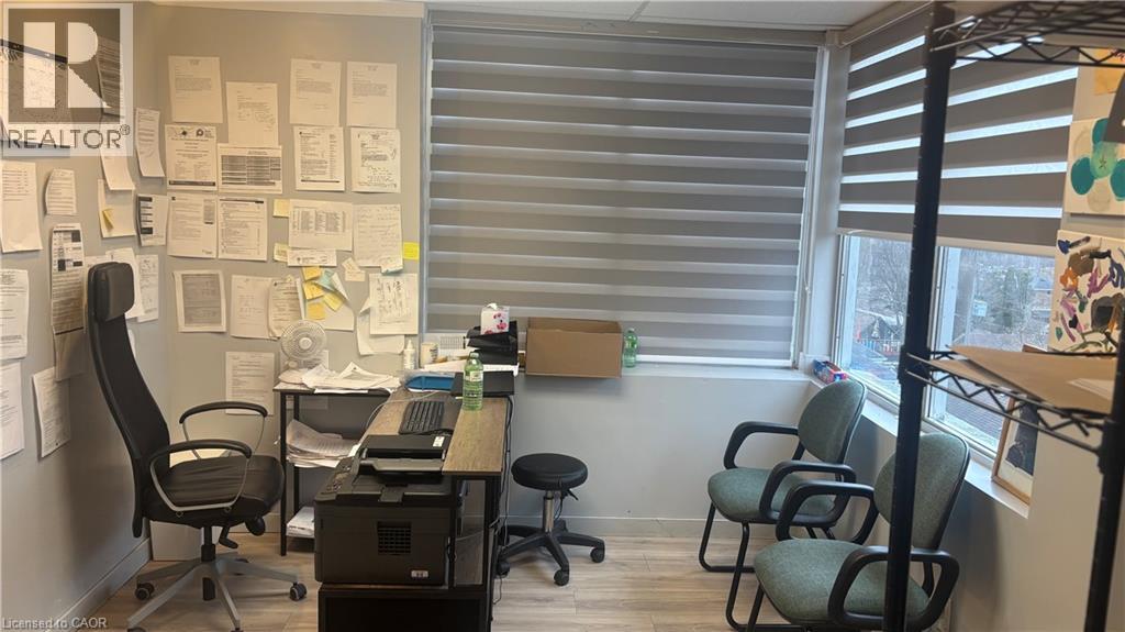 Approximately 1,500 sq. ft. medical/professional office suite available in a well-maintained professional building on Brant Avenue in Brantford. The building is primarily occupied by health and medical professionals and features a pharmacy on the ground floor. Centrally located just minutes from Brantford General Hospital, this property offers excellent accessibility for patients and clients. The building is fully wheelchair accessible and includes elevator service to all floors. The suite comprises three private offices, a reception area, one washroom, and storage space. Tenants also benefit from access to a large shared waiting area. Utilities are included in the lease, along with light periodic cleaning of common areas. No additional common area (TMI) expenses. Ample free on-site parking available. Zoning allows for medical and a wide range of professional office uses. (id:64974)