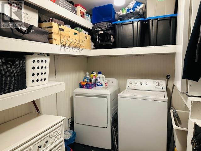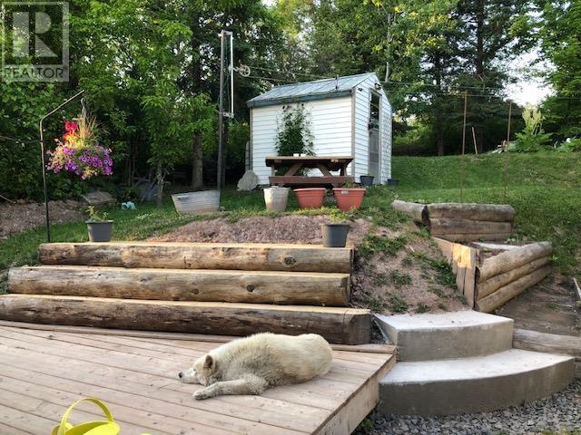 Whether you're starting out or slowing down, this charming 1.5-storey home offers the perfect blend of comfort and utility. The main floor is designed for easy living, featuring a primary bedroom, a bright and spacious south-facing living room, an eat-in kitchen, and a large laundry/storage room. Upstairs, you'll find two more generous bedrooms, providing plenty of space for guests or a home office. Step outside to your private retreat. The tiered hillside lot features a back yard deck and concrete steps leading to an upper level, creating a private area perfect for evening relaxation. Hobbyists will love the 14'x21' detached garage (fully wired, insulated, with an electric heater and 240V plug), while two storage sheds provide extra space for all your gear. Located just steps from local parks and walking trails, this home is ready for its next chapter. (id:64974)