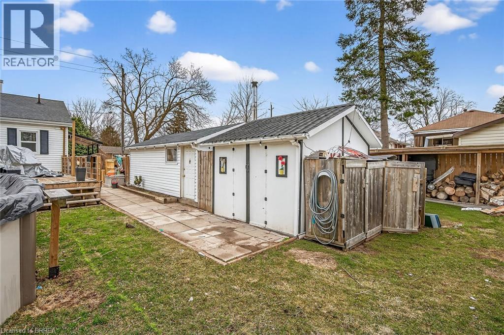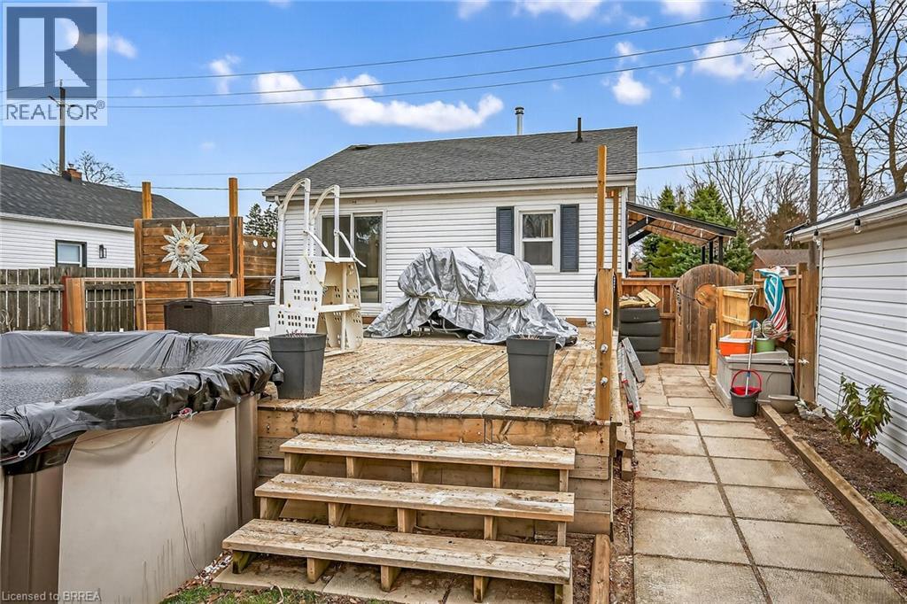 Terrace Hill two-bedroom bungalow on a 60 ft x 120 ft lot featuring a detached garage with a wood stove (not WETT inspected) plus parking for four cars. Fully fenced yard with sliding doors from the master bedroom leading to the pool, deck, and hot tub. New kitchen in 2020 and 4-piece bath in 2015. Finished rec room and den. Re-shingled roof in 2014. Most windows and exterior doors replaced in 2017. Natural gas line for the barbecue. 100-amp breaker panel. Close to the Wayne Gretzky Centre, schools, parks, and Highway 403 access. Don’t hesitate before it’s too late. (id:64974)