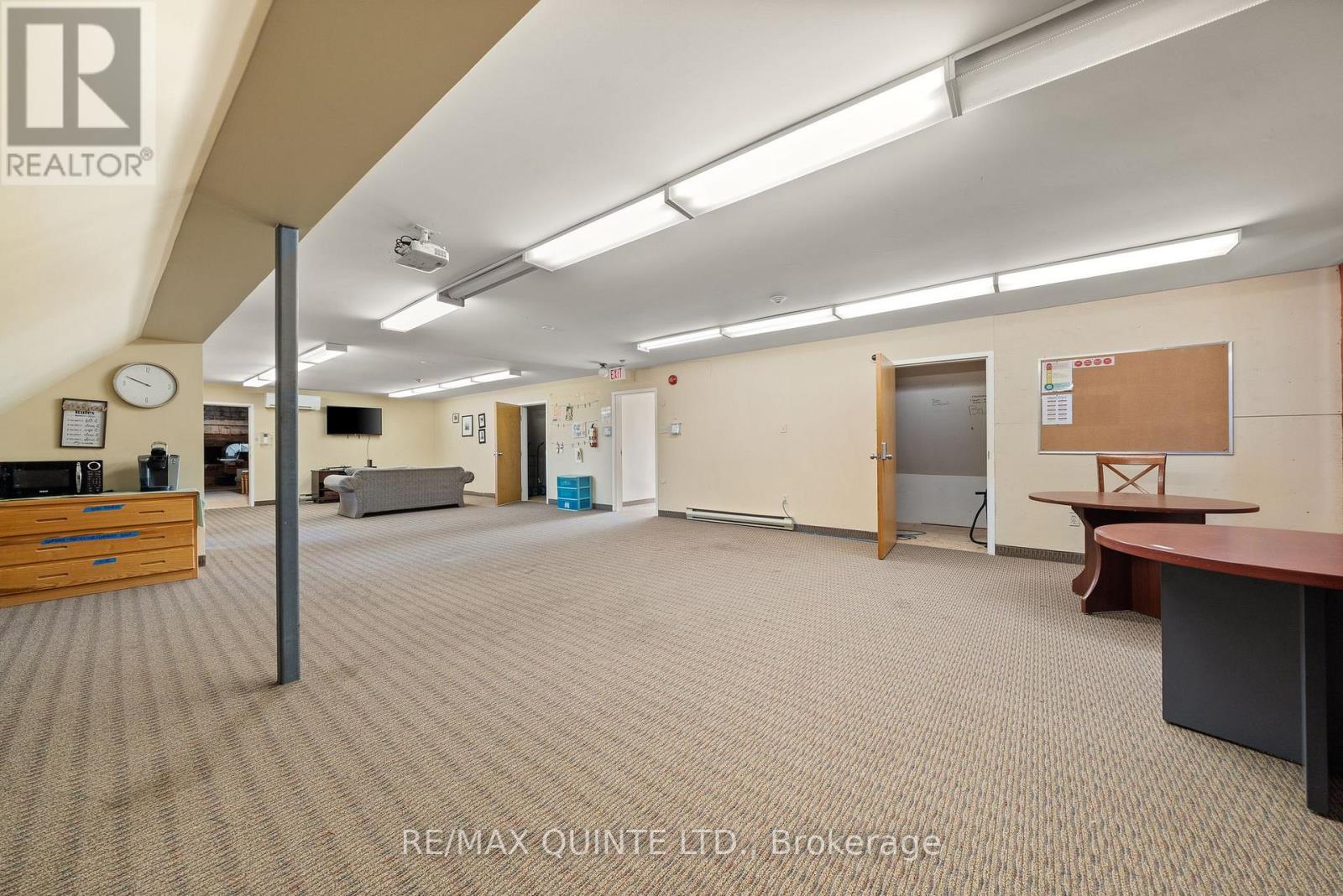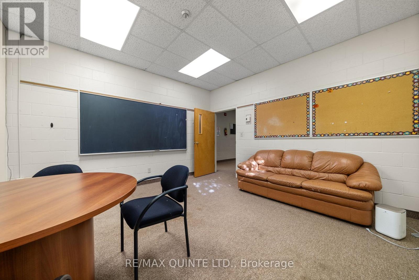 This well-maintained 13,500 sq. ft. commercial building is zoned CF (Community Facility) and situated on 1.396 acres in a quiet residential area in Belleville's north end, just a two-minute drive from Highway 401. Most recently operated as a private educational facility, the property offers outstanding versatility and could easily accommodate a large daycare, community organization, or a wide range of other permitted uses. With over 60 on-site parking spaces, there is ample parking for both staff and visitors. The 6,400 sq. ft. main floor includes 11 offices or classrooms, a welcoming reception area, four bathrooms, a laundry room, and a 3,000 sq. ft. gymnasium/gathering area perfect for large group functions or recreation. The 6,273 sq. ft. lower level features 10 additional offices, two commercial-style washrooms, a 1,743 sq. ft. boardroom or assembly area, and a commercial-grade kitchen. High ceilings and deep windows throughout provide abundant natural light, creating a bright, comfortable working environment. A regularly maintained elevator services both the main and lower levels, and an updated fire and alarm system monitors the entire building for enhanced safety and peace of mind. The upper level provides additional flexible space ideal for a staff lounge, meeting room, or executive office. ****CHECK OUT THE VIRTUAL TOUR IN HD**** Zoning information is available upon request. Buyers are advised to conduct their own due diligence regarding permitted uses. (id:64974)