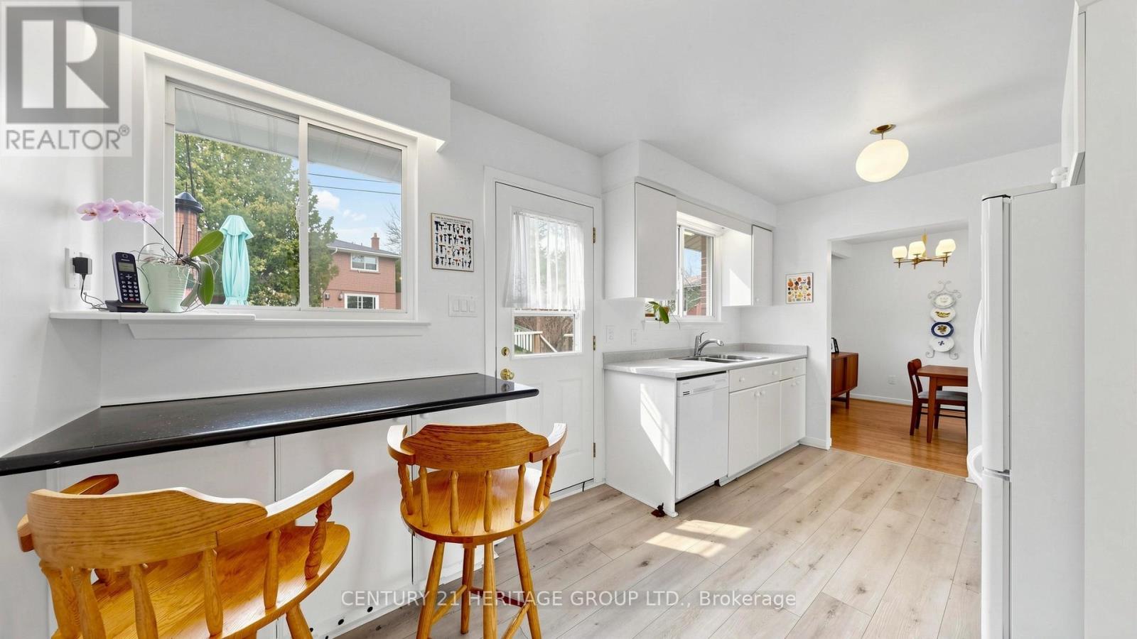 Prime location! Well-maintained raised bungalow offering main floor living with garage access. Features 3 bedrooms and an open-concept living and dining area with bright bay windows. Hardwood flooring throughout. Spacious family-sized eat-in kitchen with walk-out to deck-ideal for outdoor enjoyment. Extra-deep garage provides ample space for parking and storage. Situated steps to parks, Stornoway P.S., transit, highways, and community centre. Located in a quiet, family-friendly neighbourhood with excellent amenities nearby. (id:64974)