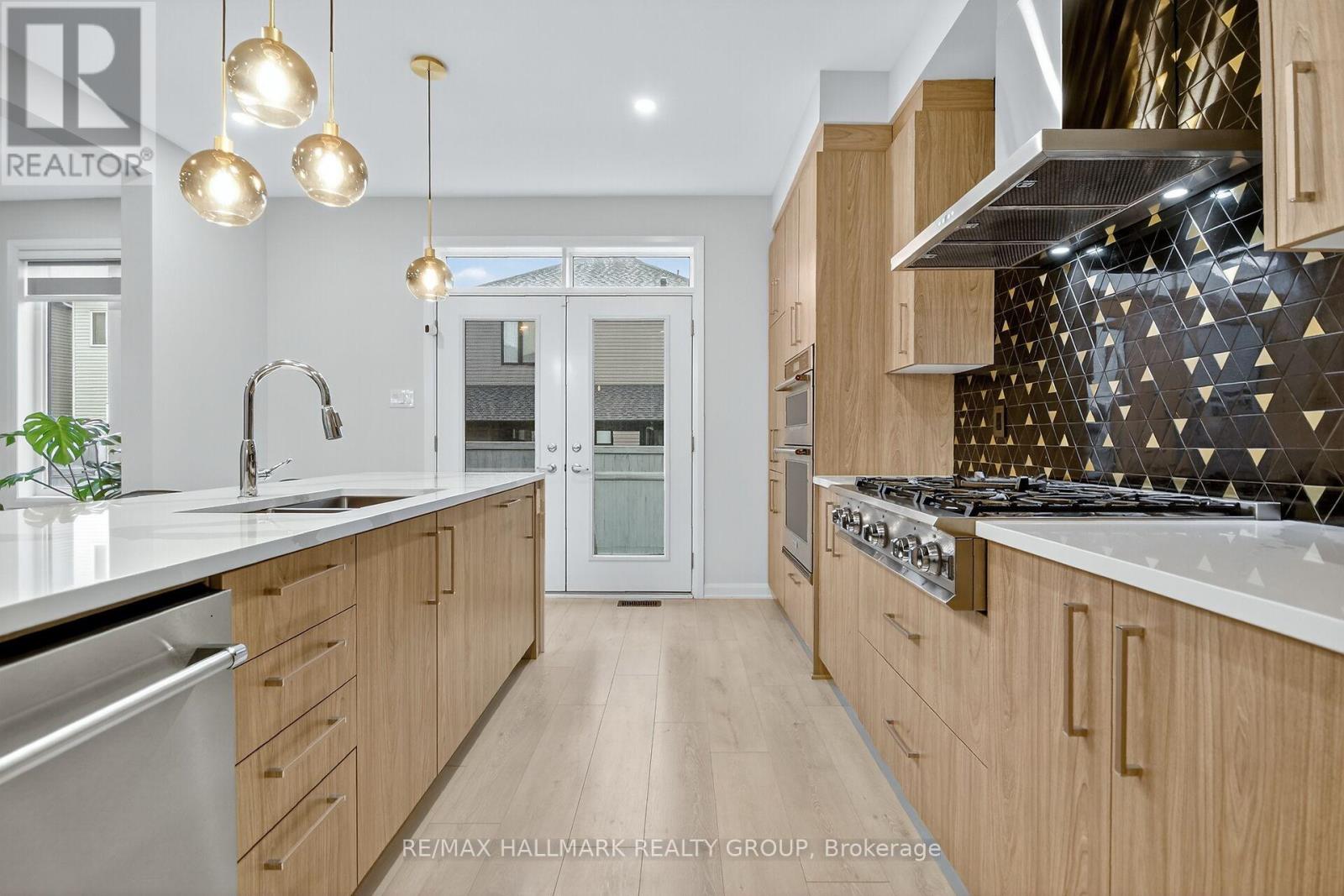 Step into this breathtaking 3-year-old detached Minto Stanley home featuring 9 ft ceilings on the main and second floors, with upgraded 8 ft doors on both levels. Beautifully laid out with formal dining area and the elegance of the great room's gas fireplace. Plenty of room to entertain in style with an upgraded gourmet kitchen featuring large island with waterfall counter & seating, beautiful appliances boasting a 6-burner gas stove. Main floor den offers a great place for work at home. Retreat to the huge primary bedroom with walk in closet and spa like ensuite with a glass shower and stand-alone tub. Large secondary bedrooms with great closet space. Second floor laundry room is so convenient. The finished lower level with spacious recreation room includes a 5th bedroom and full bathroom. Located in a vibrant neighborhood perfect for your lifestyle. Act now, this gem won't last! (id:64974)