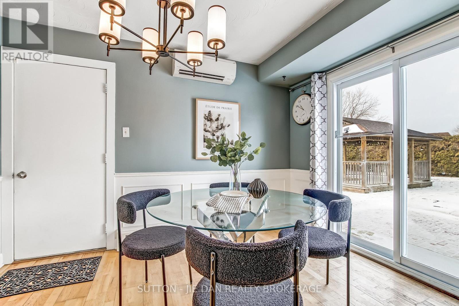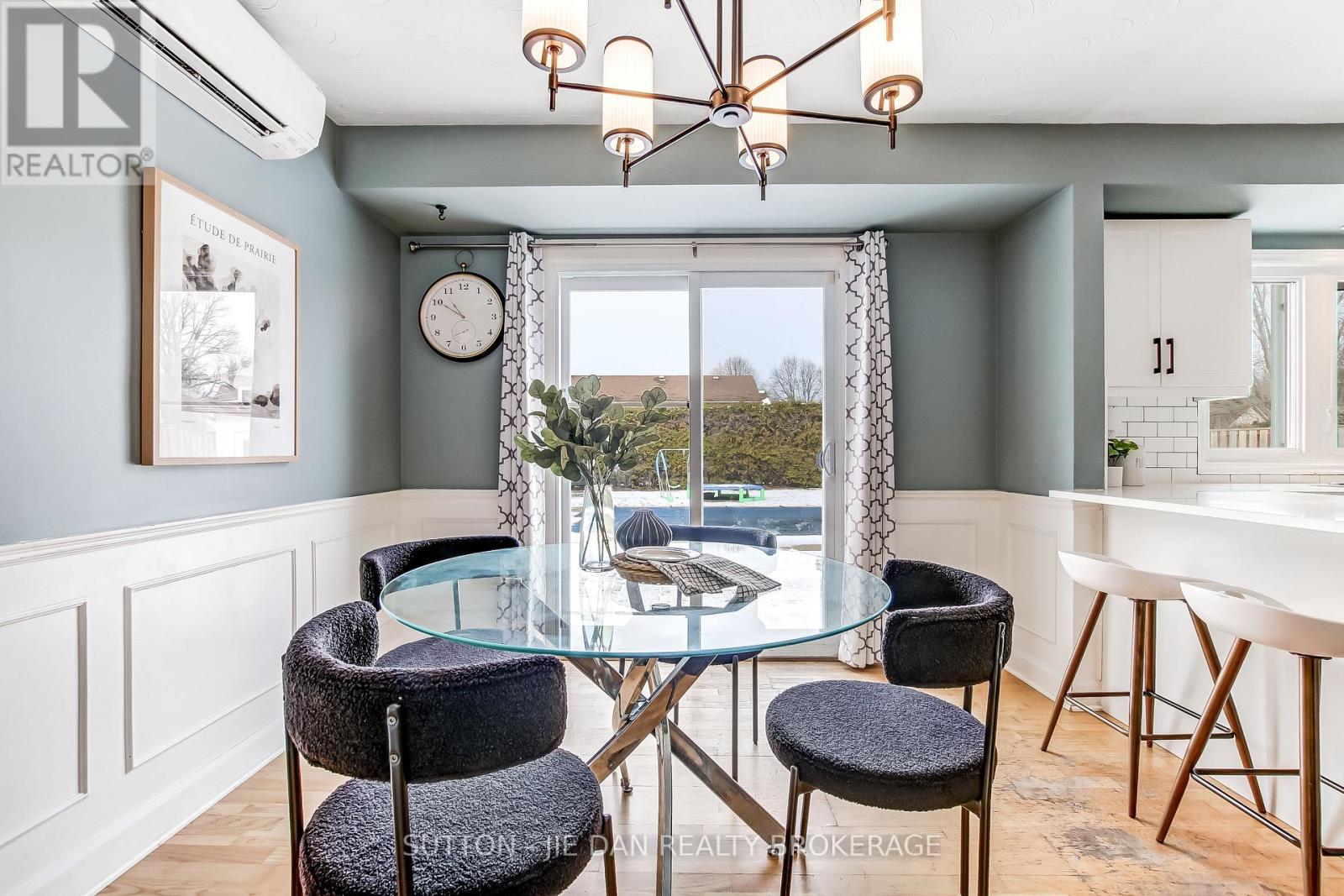 Pool! Large Private lot! Desirable Grenfell Village in North London! Excellent Family home in North London right across to Constitution Park! 3+1 bedroom side split house with double garage sits on one of the largest and most private lots ( Approx 80' x 129') . The west facing backyard features an in-ground pool, huge gazebo, large patio and fully insulated work shop ( 16x16) perfect to kids summer study/den/gym/playroom.Hardwood floor on the main level with bay window, modern white kitchen with quartz countertops ( 2022) and peninsula breakfast bar. Oversized family room showcases large windows and built in cabinetry with rough in for wet bar. The 4th bedroom could be den/home office. 2 pc power room with direct pool access plus another glass shower. The finished lower level includes a large rec room and laundry area. Upgrades including 40 years shingle ( 2002), windows ( 2008/2018), washer and dryer ( 2018), exterior door ( 2019), pool pump & salt system ( 2021), ductless AC (2021), pool filter ( 2022), quartz counters & backsplash ( 2022). Separate entrance to lower level great for in-law suite or renters for extra income. Right across from Constitution Park with play ground, splash pad, sports courts, and walking trails. Top rated schools: Stoney Creek PS & A.B Lucas SS & Mother Teresa Catholic SS. Direct bus to Western University. Minutes to Masonville Mall. Hurry! (id:64974)