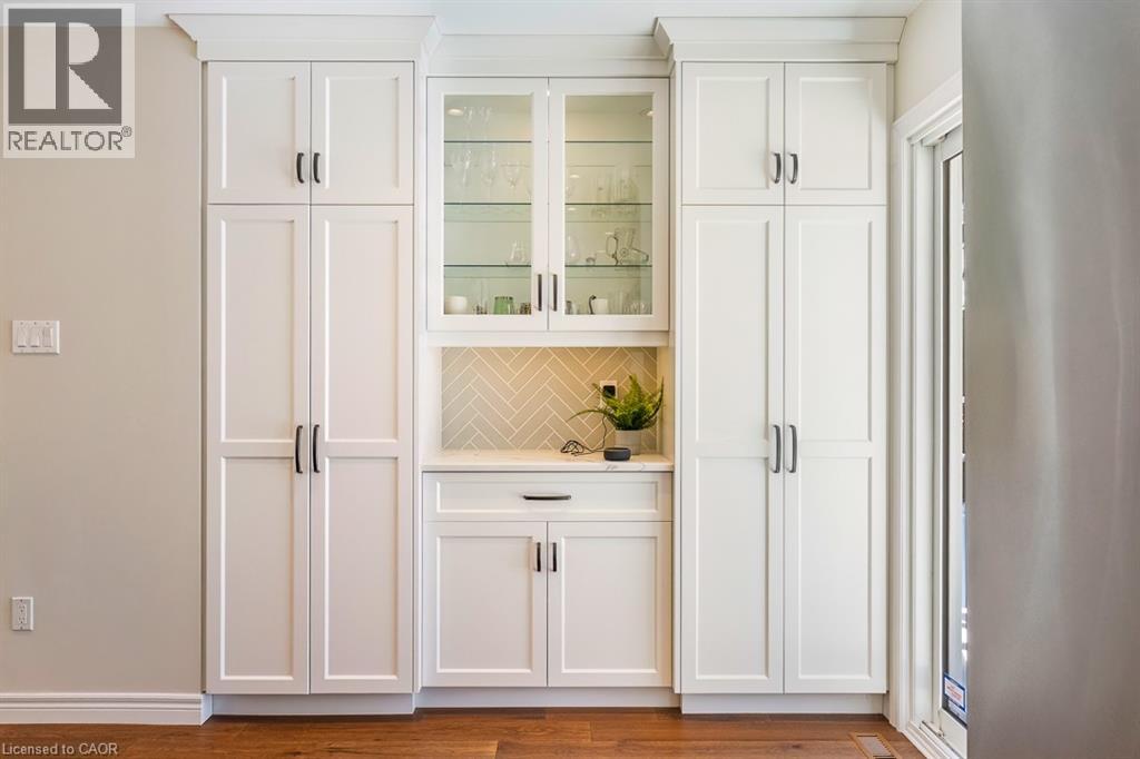 Outstanding lifestyle opportunity backing onto coveted green space in the city. Enjoy direct access to Sherwood Forest Park, with its playground and Community Centre just steps from your back door. The Centennial Bikeway and walking path connect you effortlessly to downtown Burlington and the shores of Lake Ontario. This pride-of-ownership 4-level, 4-bedroom side-split has been extensively and professionally renovated over the past several years. A generous front foyer offers a welcoming first impression and includes convenient inside access to the attached garage. The main level was professionally renovated and opened up in 2020, creating a modern, flowing layout ideal for entertaining. The living room, dining room, and kitchen are bathed in natural light from a large picture window overlooking the streetscape and a wide sliding door with serene backyard and green-space views. Upstairs, you’ll find four bedrooms and an updated full bathroom, with ceiling lighting—an elevated feature for this style of home. The main-floor den or office features a cozy fireplace and a separate exterior entrance to the back garden, adding flexibility and convenience. The lower-level family room is large, bright, and fully updated with new flooring and refreshed walls, complemented by a renovated 3-piece bathroom. Outdoors, the pool-sized backyard has been beautifully landscaped with striking stonework and a custom gazebo—perfect for relaxing or entertaining. Additional updates include furnace, air conditioning, select windows, custom blinds throughout, upgraded door hardware, and more. Nelson Park is also close by offering tennis courts, a pool, splash pad, arena and more. Appleby GO Station is nearby and accessible via a paved walking path. A true gem offering space, style, and an exceptional location—this home will not last long. (id:64974)