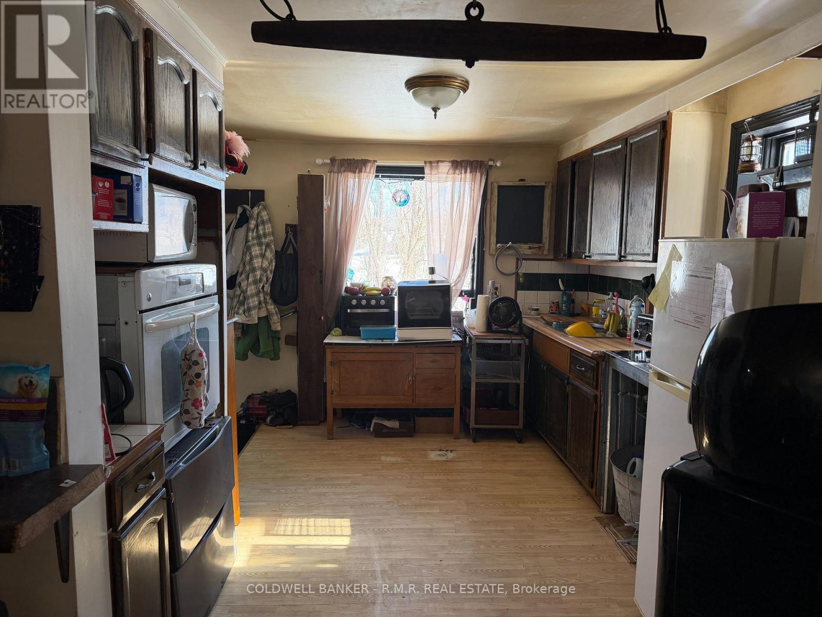 A peaceful half acre setting surrounds this 2 bedroom, 1 bathroom home backing onto the Leaskdale Creek. The property features a convenient side entrance with a mudroom, a front entrance ramp for easy access, and a large paved driveway. A detached garage includes a insulated and heated section complete with a 3 piece bathroom and plumbing, ideal for storage, workspace or guests. The lot provides generous outdoor space and a natural backdrop, creating a quiet and scenic environment. (id:64974)