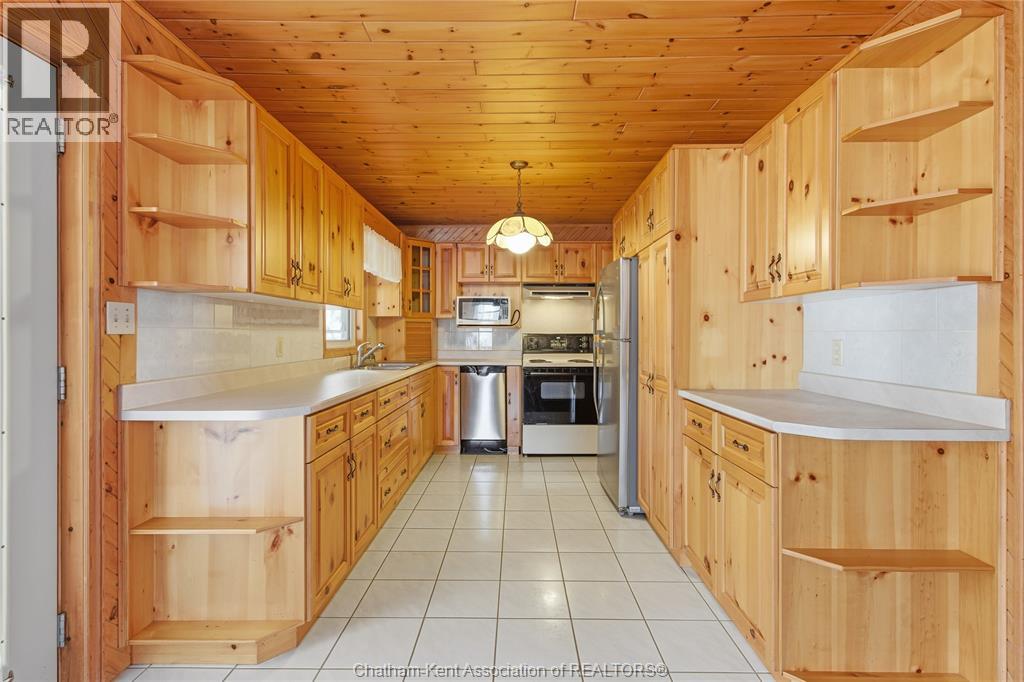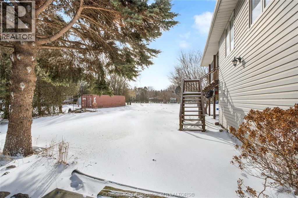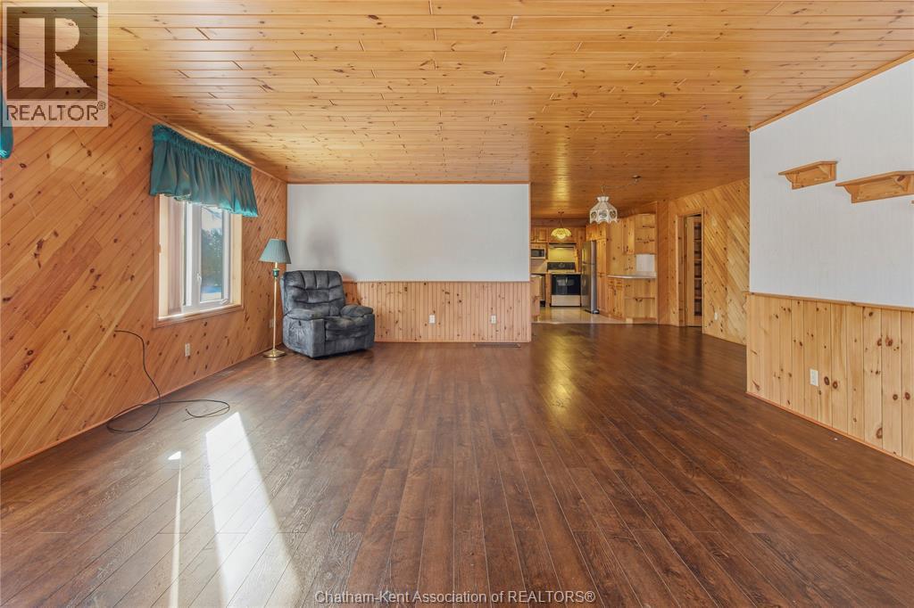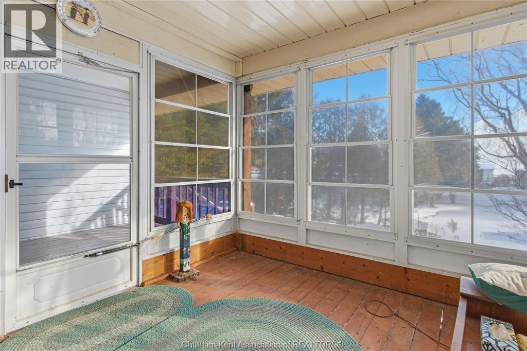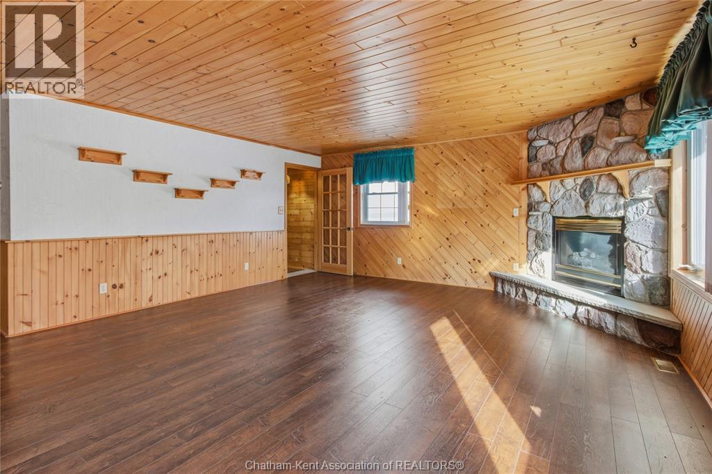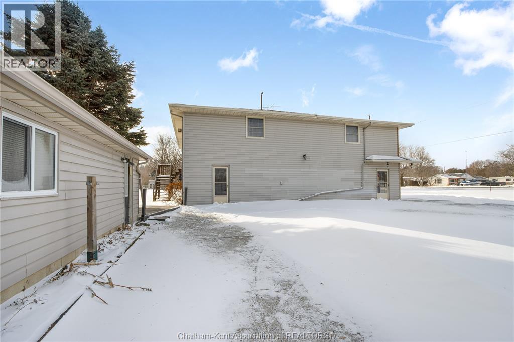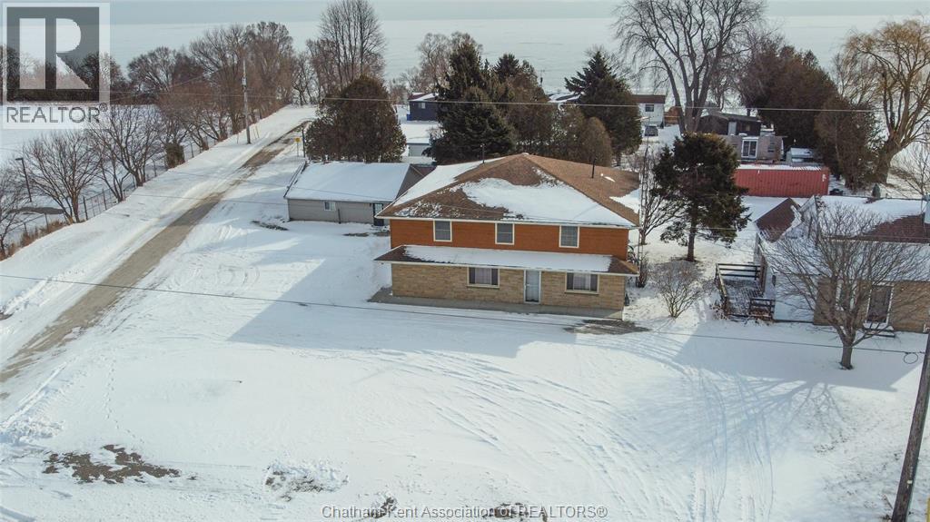 Versatile live/work/investment opportunity in the heart of Dealtown, ideally located on Talbot Trail just minutes from Lake Erie and within an easy commute to Chatham. This high-visibility corner lot offers excellent exposure along with ample on-site parking. The expansive main floor commercial space, previously operated as a restaurant and variety store, features a functional layout with generous square footage, two 2-piece bathrooms, a commercial range hood, and the flexibility to re-establish a food service operation or adapt the space for a wide range of potential uses, subject to approvals. Upstairs, the bright and well-thought-out residential unit offers two bedrooms and two full bathrooms, including a spacious primary suite with walk-in closet and private ensuite, along with in-unit laundry, a warm wood kitchen, beautiful natural wood finishes throughout, a cozy gas fireplace, and a separate bar room ideal for entertaining. Enjoy stunning Lake Erie views from the enclosed rear porch, providing the perfect setting for morning coffee or evening relaxation. A heated, detached 2.5-car garage adds further value with options for additional parking, storage, or workshop space, making this a rare and flexible opportunity for entrepreneurs, investors, or those seeking a unique mixed-use property. Conveniently located near the Lake Erie waterfront and within easy reach of Chatham, the property may also be purchased on its own or together with the neighbouring residential property (MLS® #26001429). (id:64974)