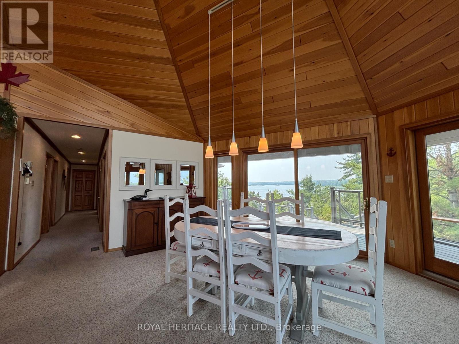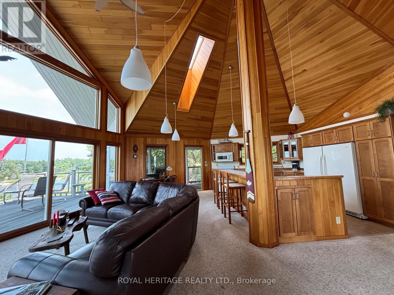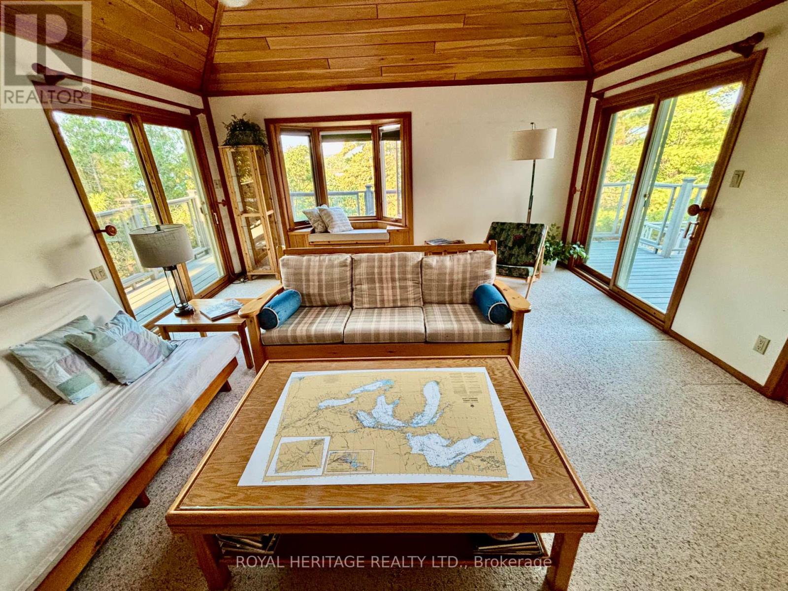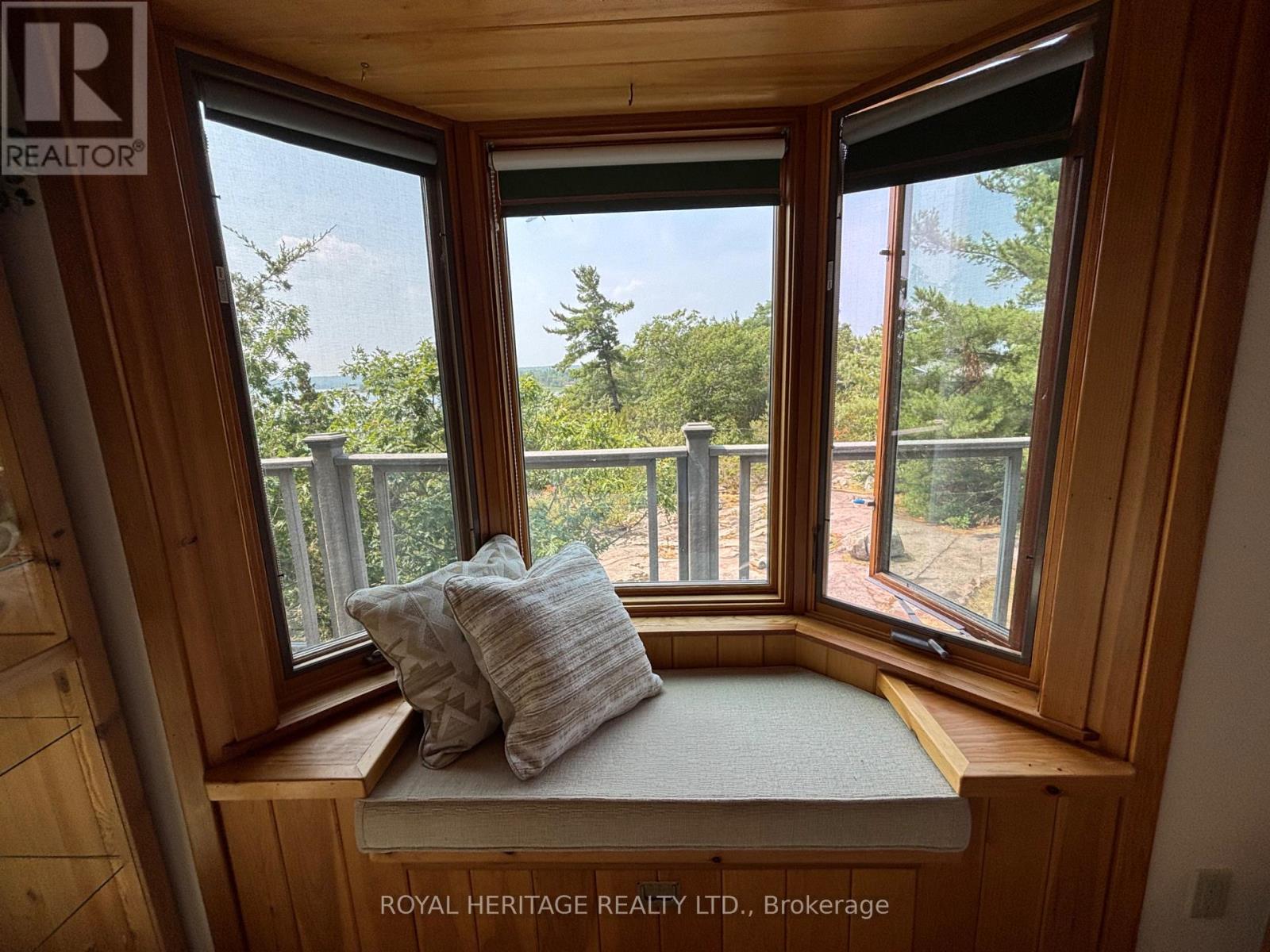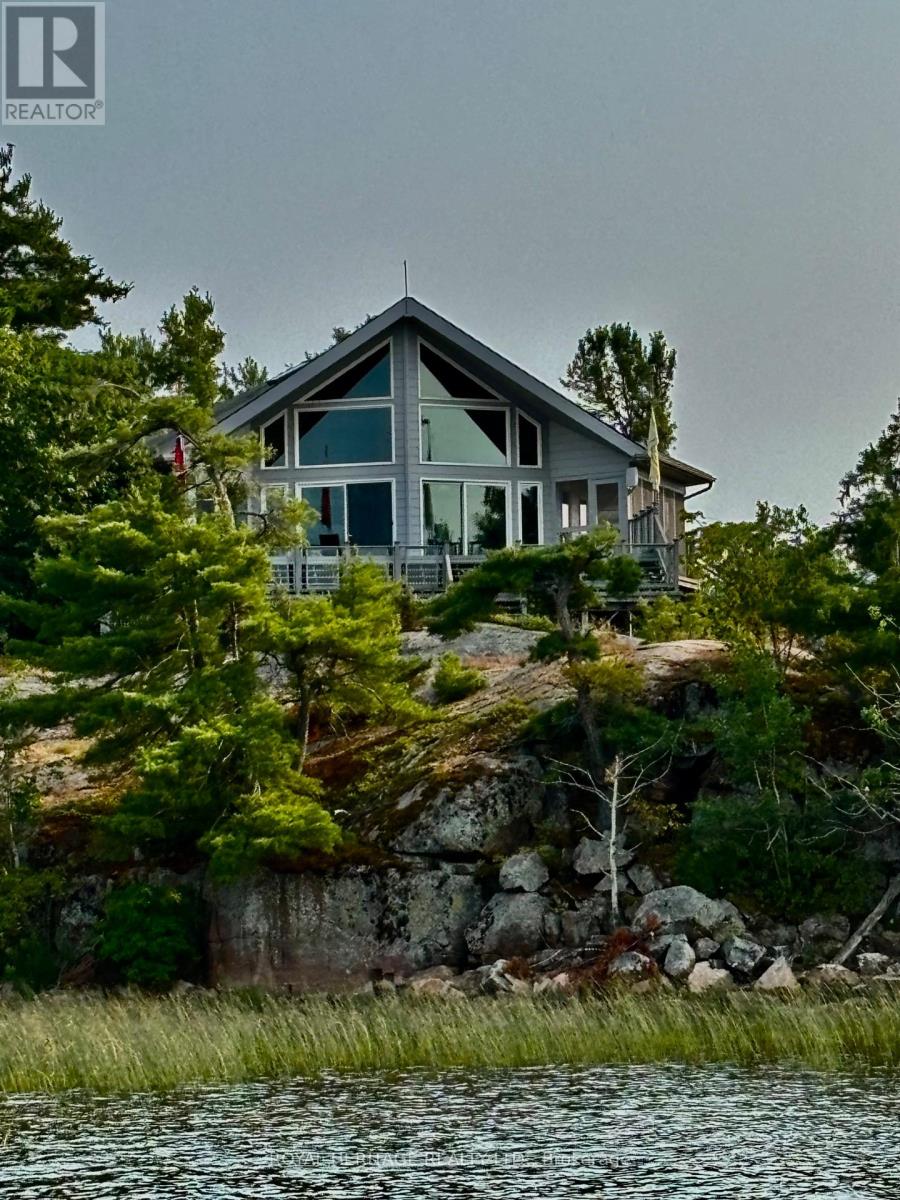 Welcome to the top of Roberts Island!10 reasons this island paradise will capture your heart. Unique design with breathtaking panoramic views.Three spacious bedrooms, all with ensuite bathrooms and walk outs, complete in-house water filtration system, 360 Wrap-around, composite decking for seamless outdoor access, in-floor heating system, two screened-in porches for bug-free enjoyment, six skylights flooding the rooms with natural light,12 acres of "National Park" - like island bliss and abundant wildlife, thousands of feet of lake shore on two sides of Roberts Island.A fully functional woodworking shop for your hobbies.Create unforgettable family memories at this one-of-a-kind island retreat, complete with an electric golf cart and an on-shore dry boat house and bunkie. The property sale also includes the opportunity to purchase the existing membership at The Honey Harbour Boat Club Marina, to ensure long term access by water. (id:64974)