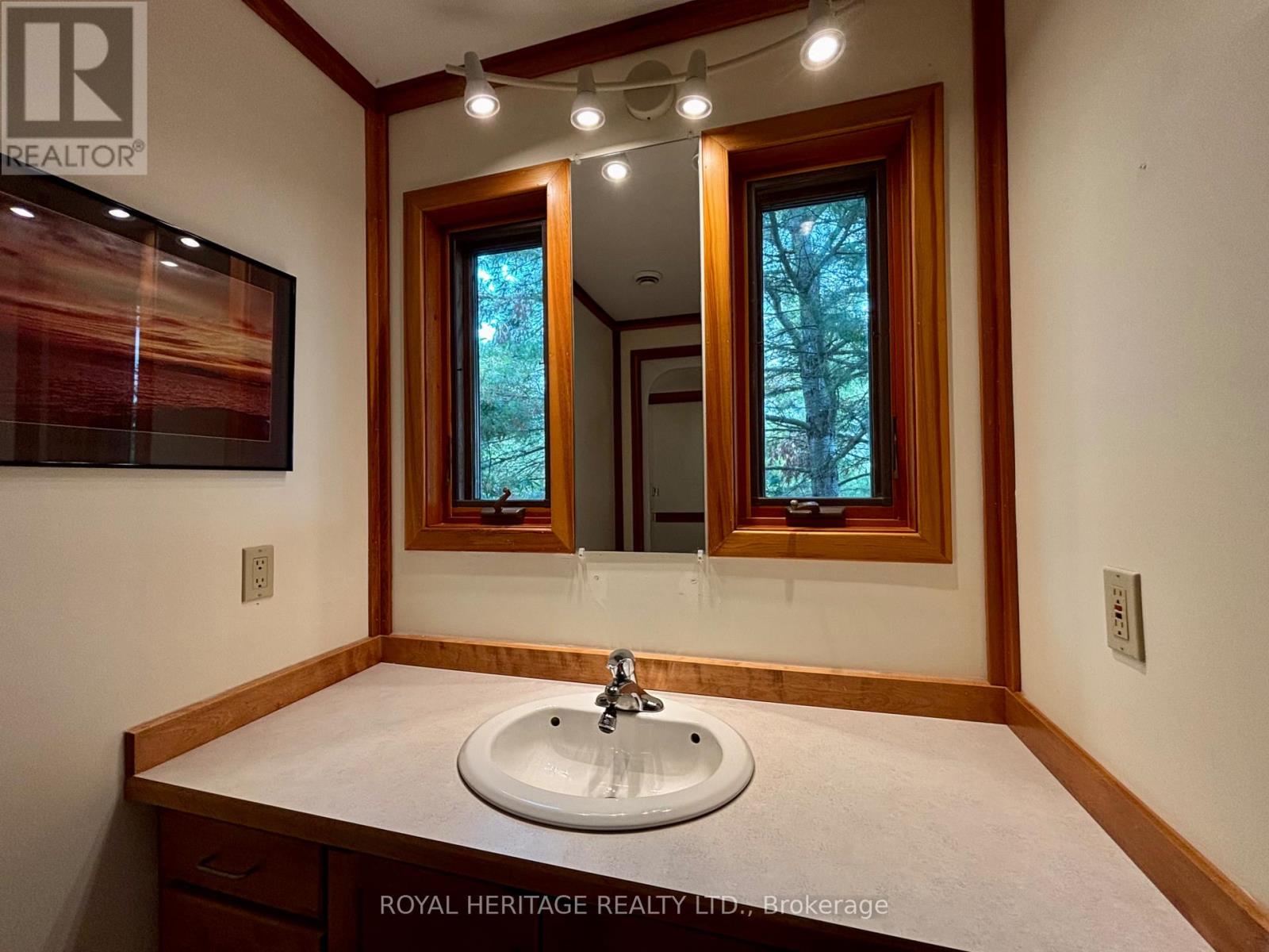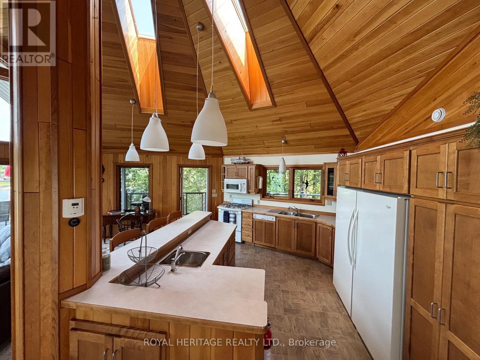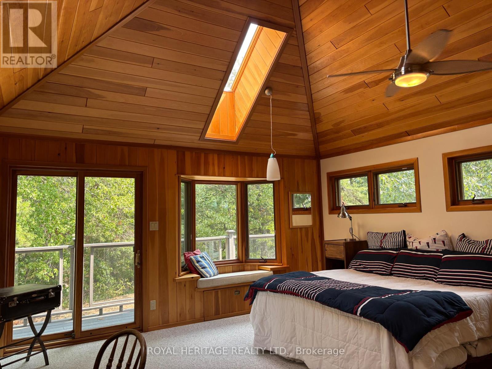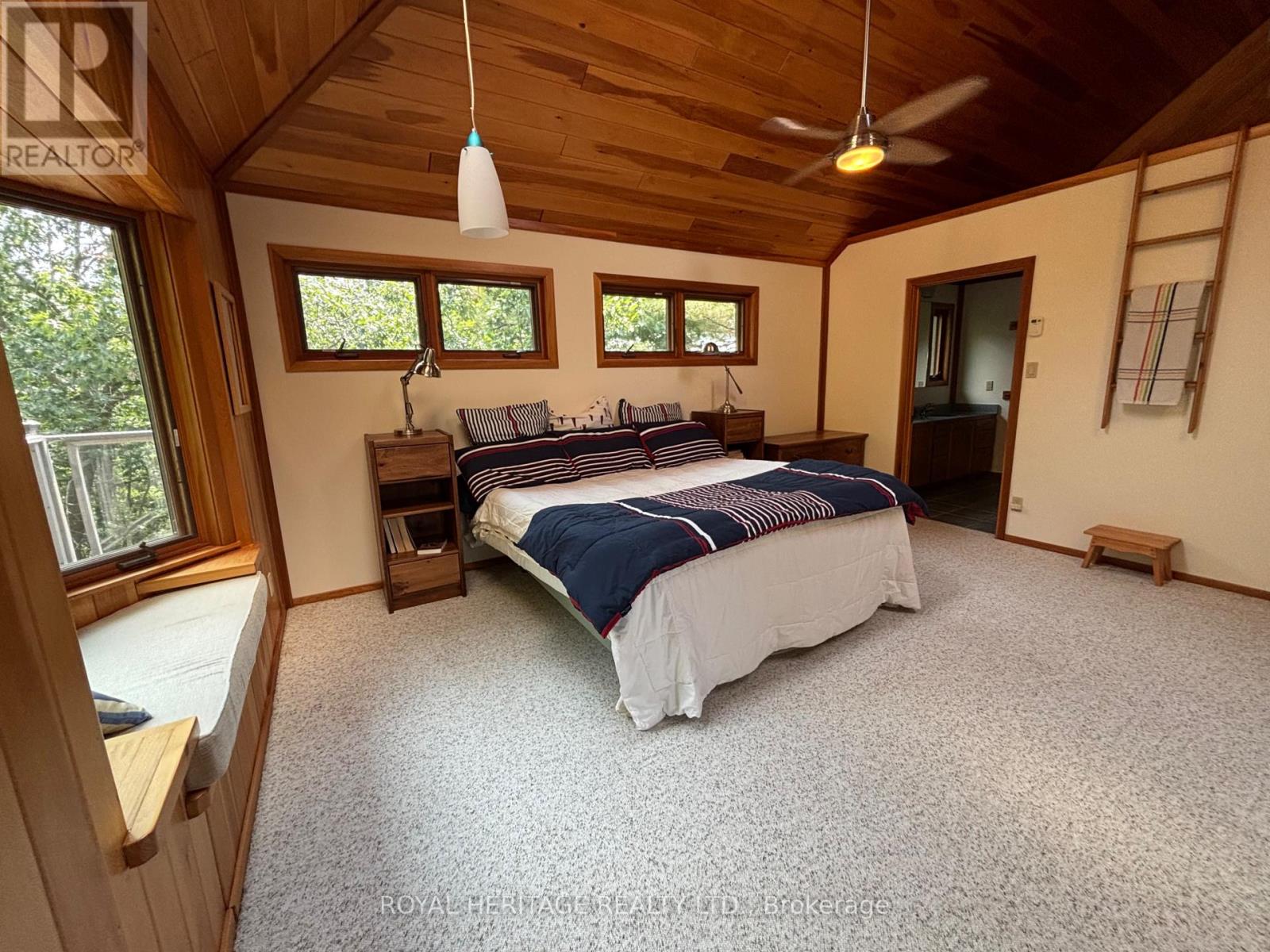 Welcome to the top of Roberts Island!10 reasons this island paradise will capture your heart. Unique design with breathtaking panoramic views.Three spacious bedrooms, all with ensuite bathrooms and walk outs, complete in-house water filtration system, 360 Wrap-around, composite decking for seamless outdoor access, in-floor heating system, two screened-in porches for bug-free enjoyment, six skylights flooding the rooms with natural light,12 acres of "National Park" - like island bliss and abundant wildlife, thousands of feet of lake shore on two sides of Roberts Island.A fully functional woodworking shop for your hobbies.Create unforgettable family memories at this one-of-a-kind island retreat, complete with an electric golf cart and an on-shore dry boat house and bunkie. The property sale also includes the opportunity to purchase the existing membership at The Honey Harbour Boat Club Marina, to ensure long term access by water. (id:64974)
